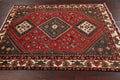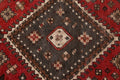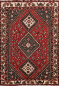 A Beautiful Genuine Persia ( Persia ) Shiraz rug is Hand Knotted by skillful weavers in Persia ( Persia ) with 100% Wool Material. This rug is in Good (Evenly Low Pile) condition. dimensions are 6' 3'' X 4' 9'' in foot and 191 X 145 in centimeter. the primary color is Red.