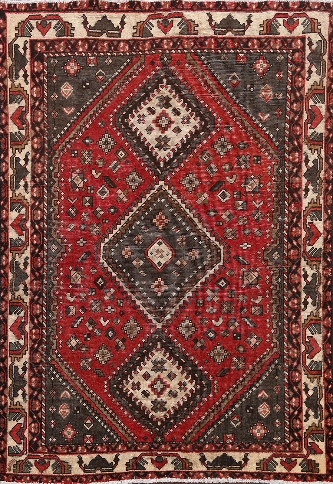 Antique Geometric Shiraz Persian Area Rug 5x6