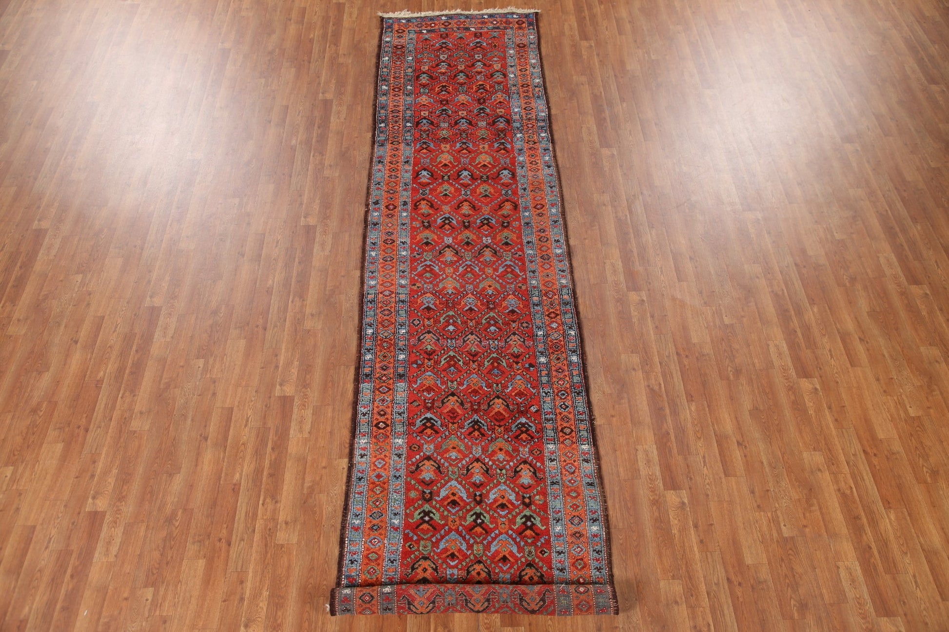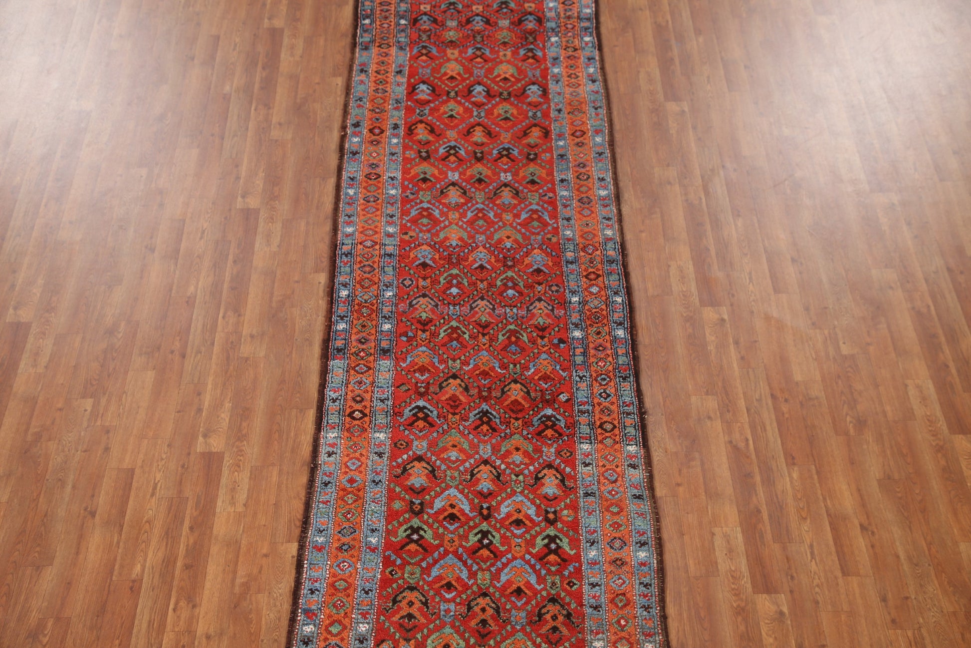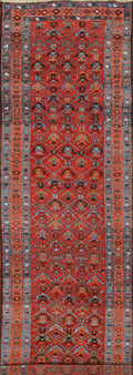 A Beautiful Genuine Persia ( Persia ) Heriz (Bakhshayesh) rug is Hand Knotted by skillful weavers in Persia ( Persia ) with 100% Wool Material. This rug is in Very Good condition. dimensions are 13' 10'' X 3' 4'' in foot and 422 X 102 in centimeter. the primary color is Red.