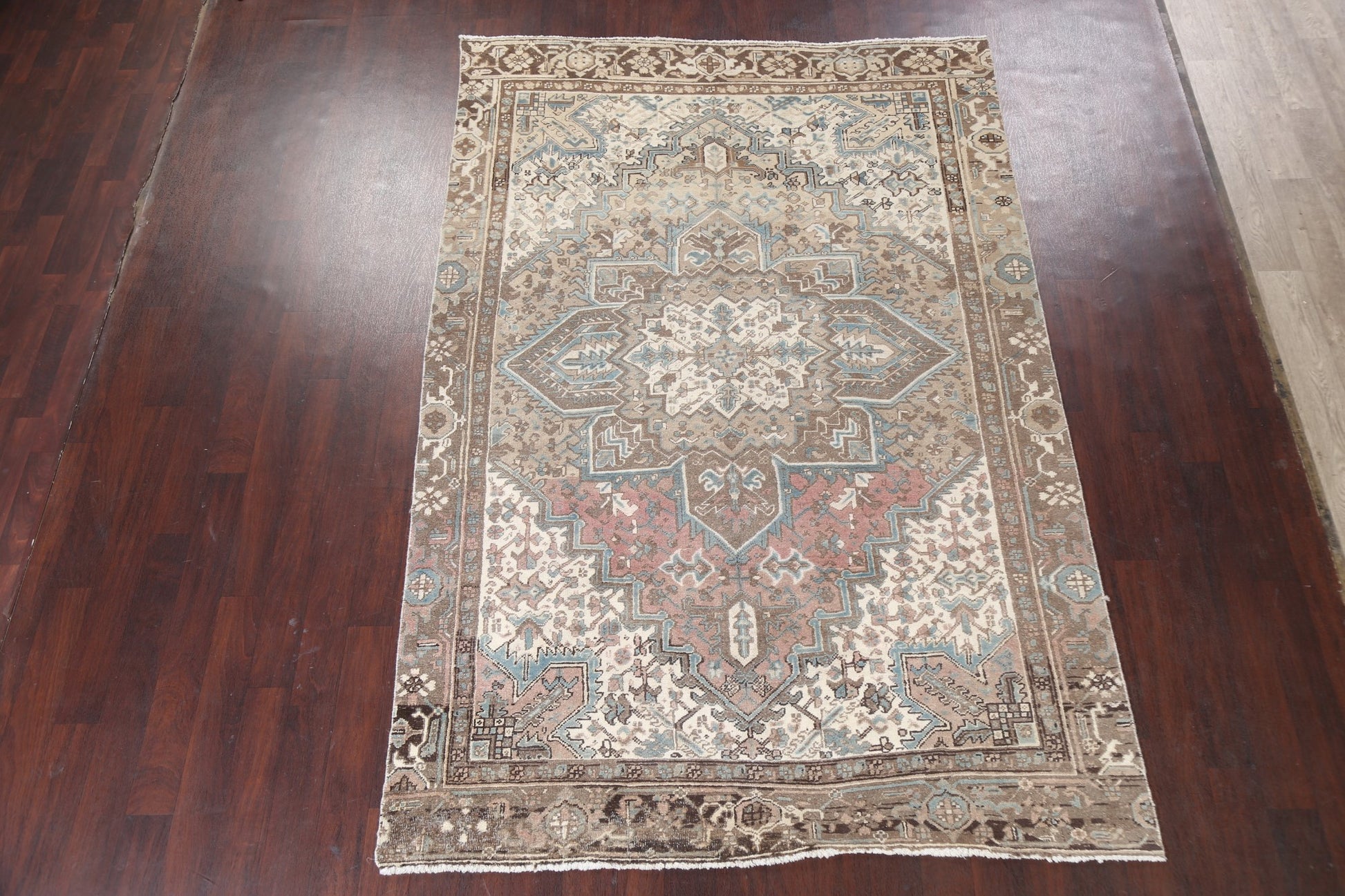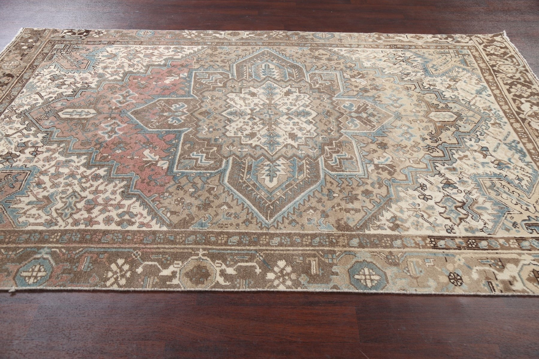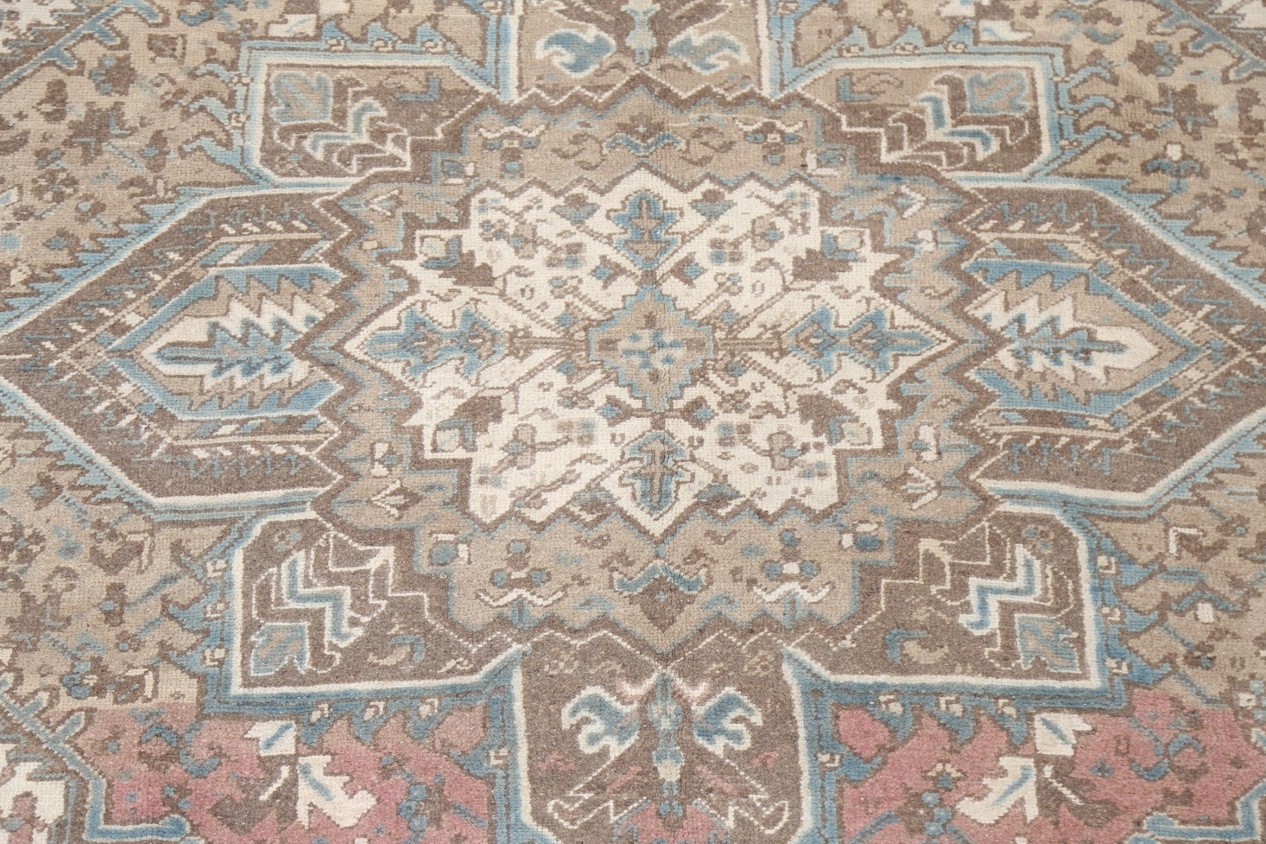 A Beautiful Genuine Persia ( Persia ) Heriz rug is Hand Knotted by skillful weavers in Persia ( Persia ) with 100% Wool Material. This rug is in Very Good (Low Pile-Abrash) condition. dimensions are 9' 8'' X 6' 5'' in foot and 295 X 196 in centimeter. the primary color is Multi-Colored.
