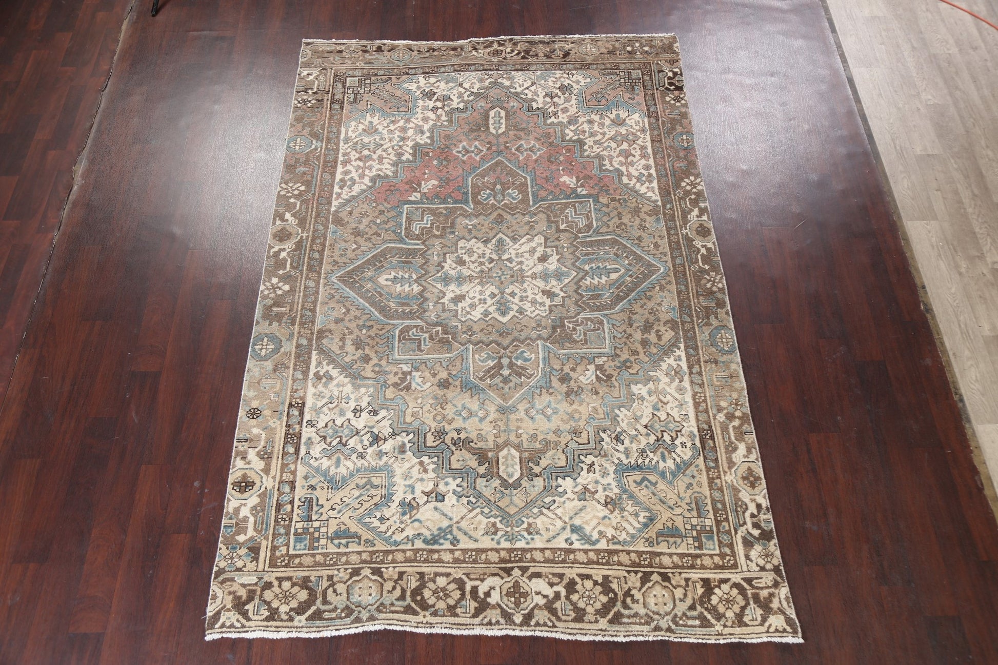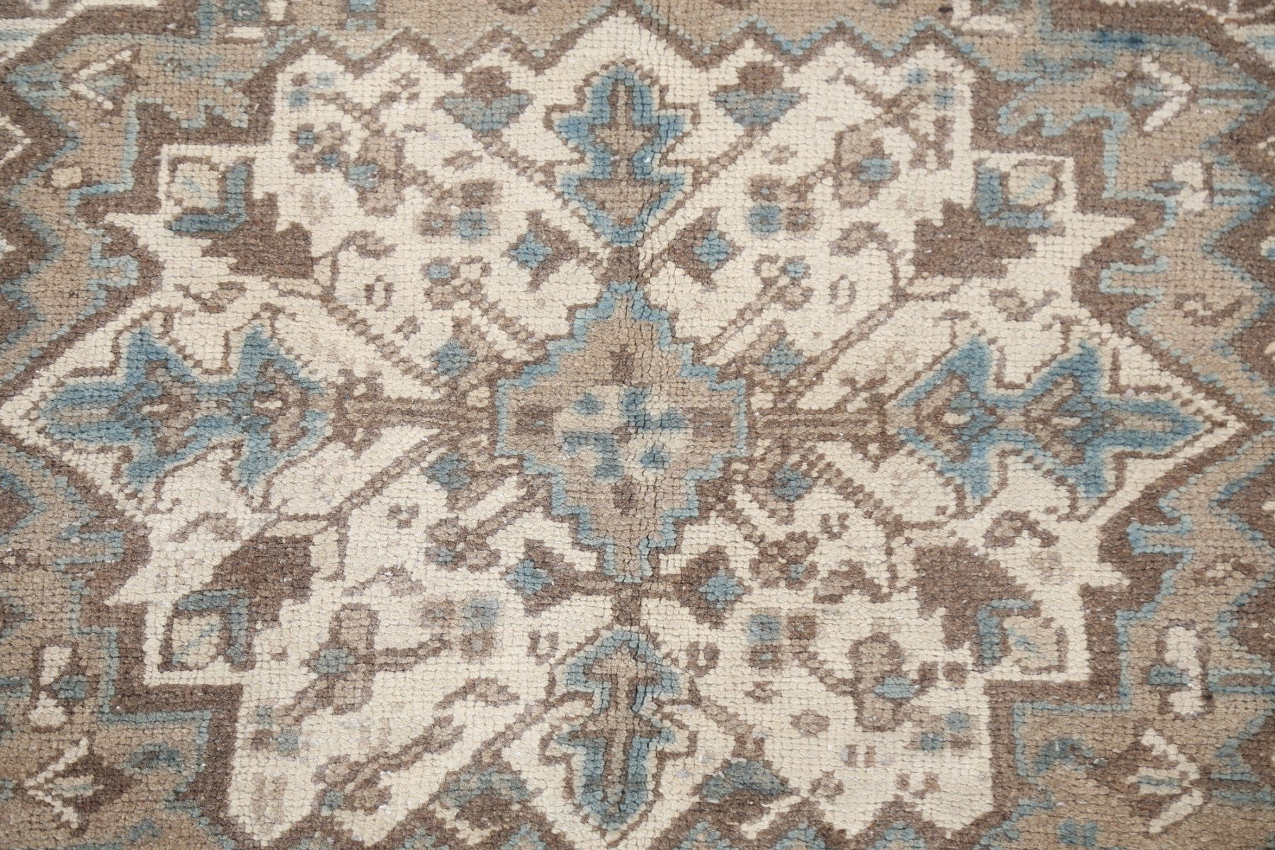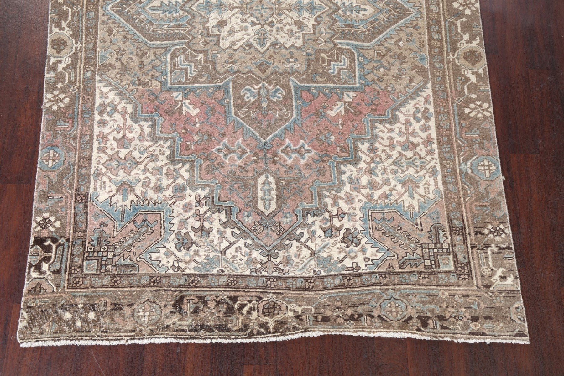 A Beautiful Genuine Persia ( Persia ) Heriz rug is Hand Knotted by skillful weavers in Persia ( Persia ) with 100% Wool Material. This rug is in Very Good (Low Pile-Abrash) condition. dimensions are 9' 8'' X 6' 5'' in foot and 295 X 196 in centimeter. the primary color is Multi-Colored.