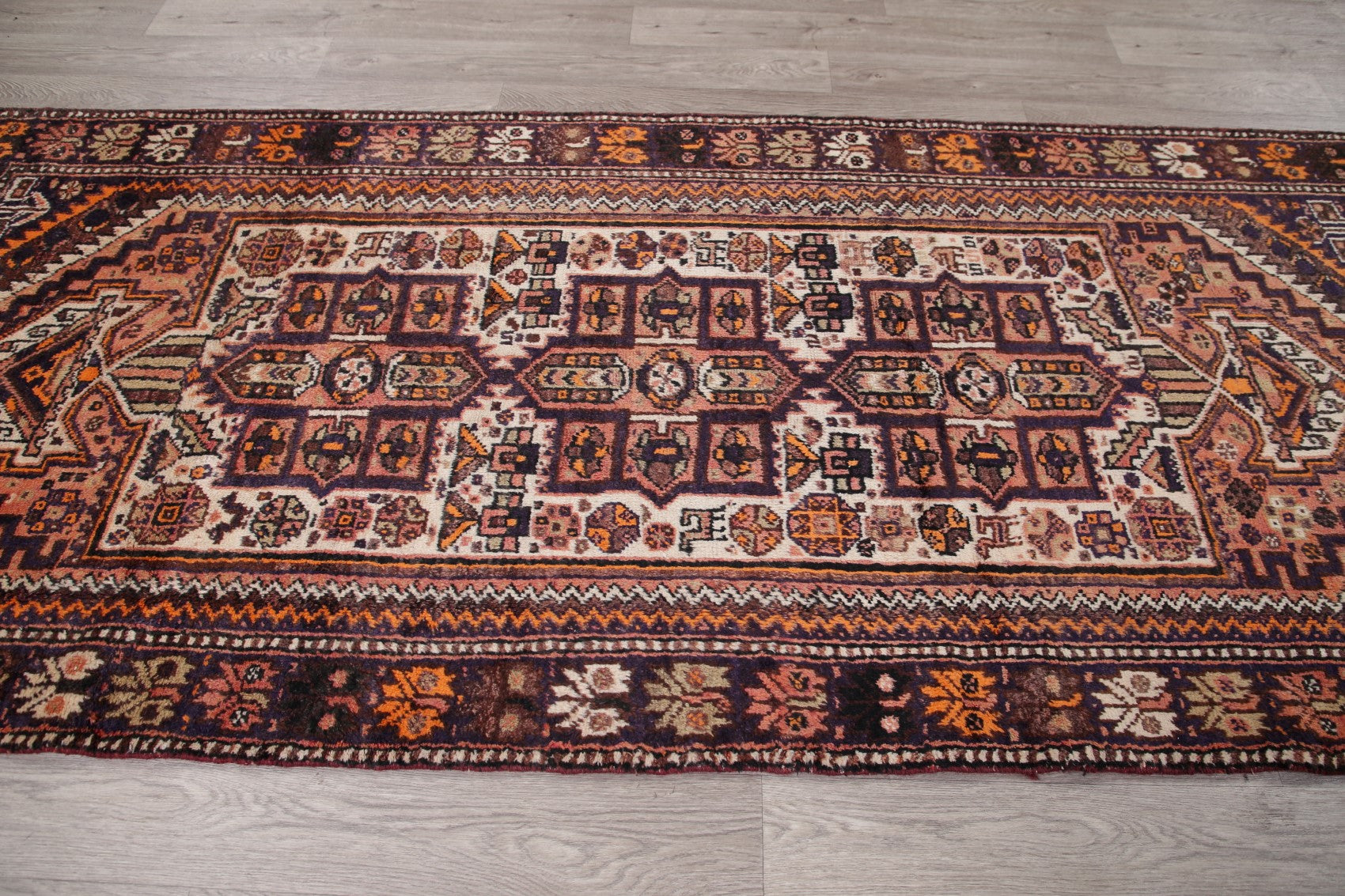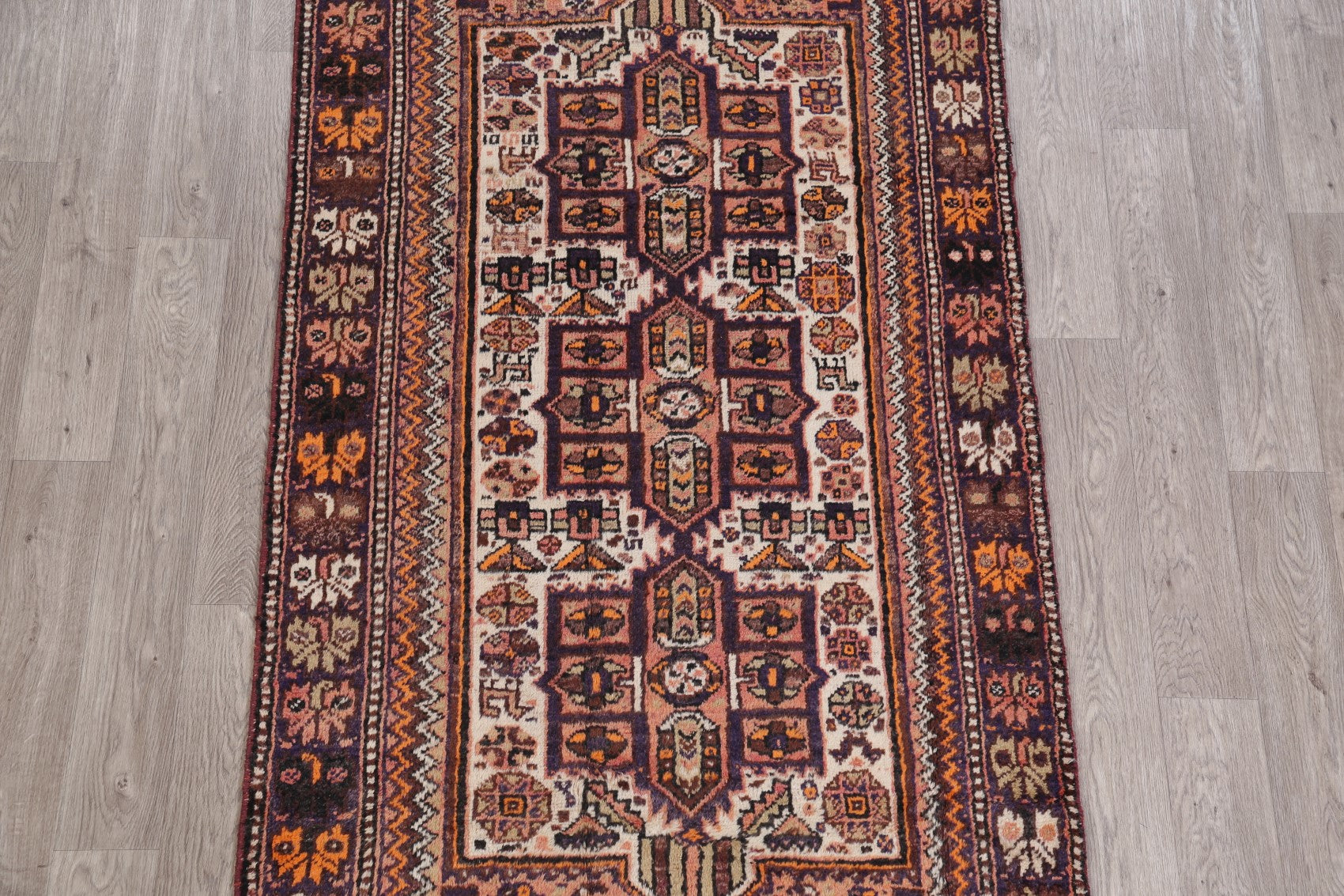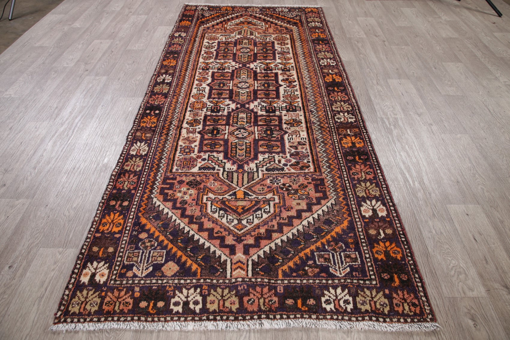 Antique Ivory Shiraz Persian Runner Rug 4x9