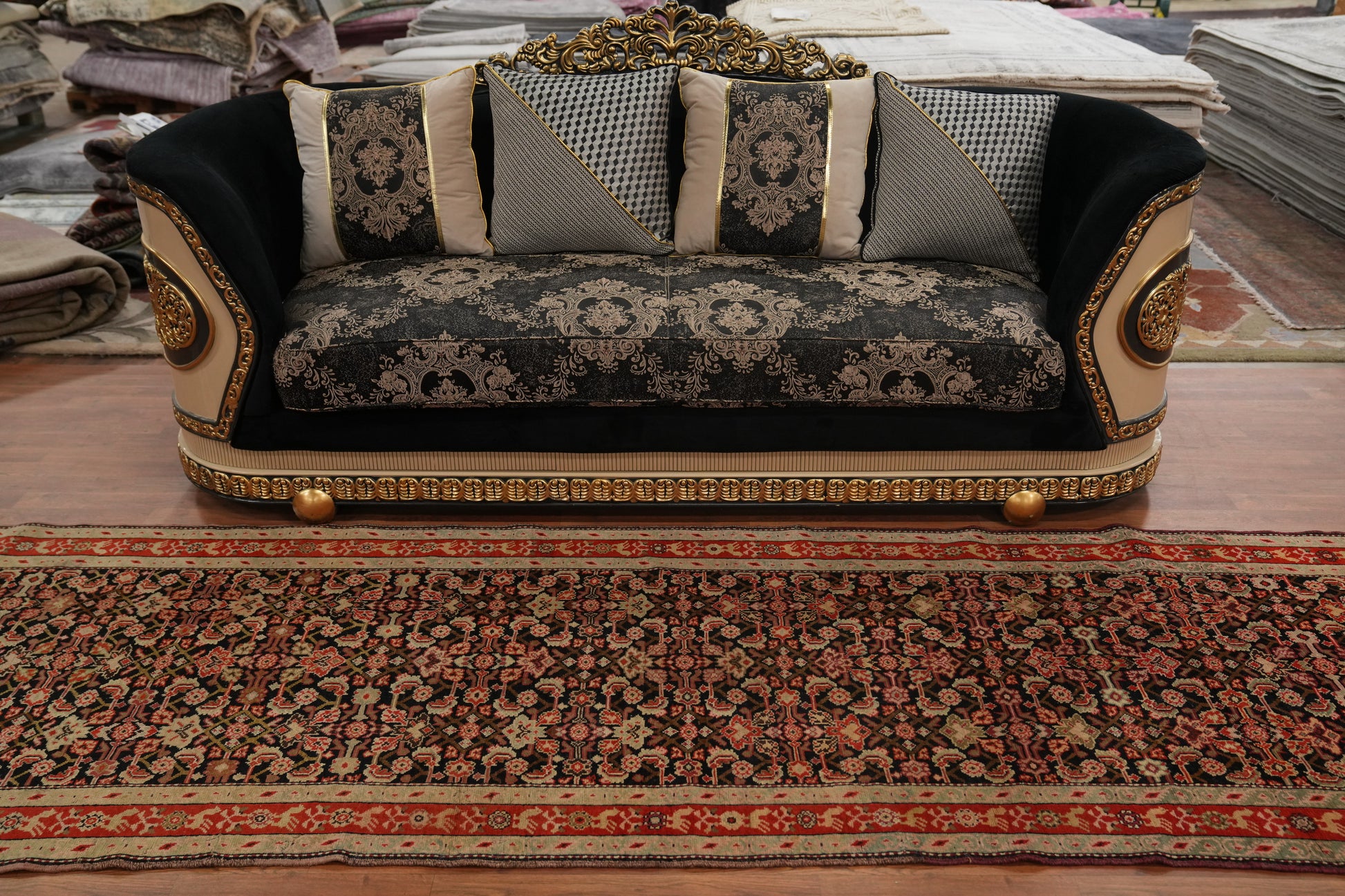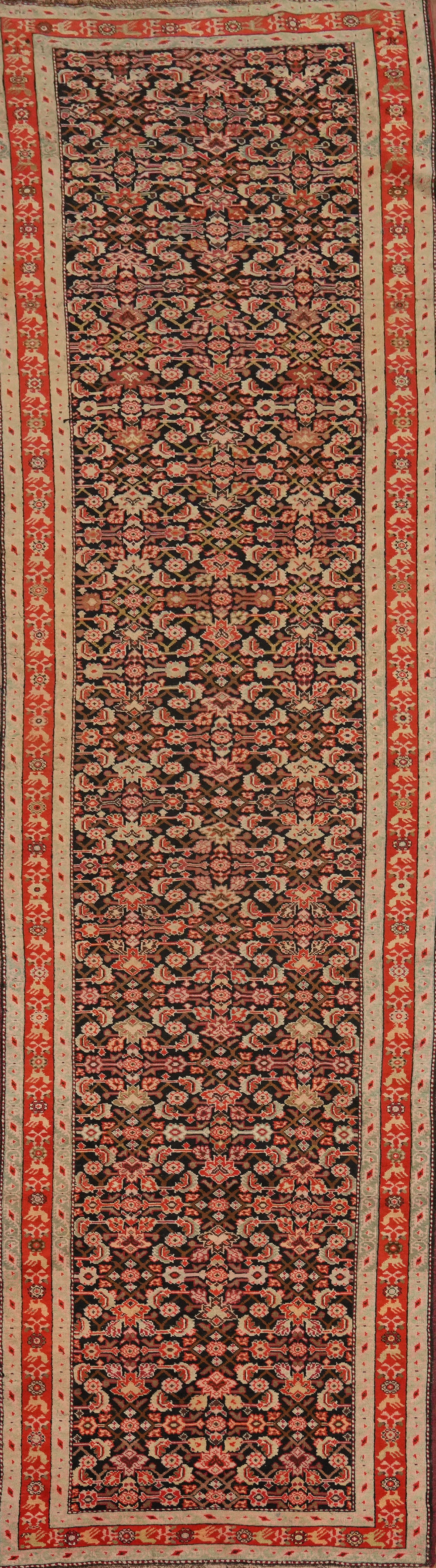 A Beautiful Genuine Russia Karabagh rug is Hand Knotted by skillful weavers in Russia with 100% Wool Material. This rug is in Very Good condition. dimensions are 15' 11'' X 3' 6'' in foot and 485 X 107 in centimeter. the primary color is Black.
