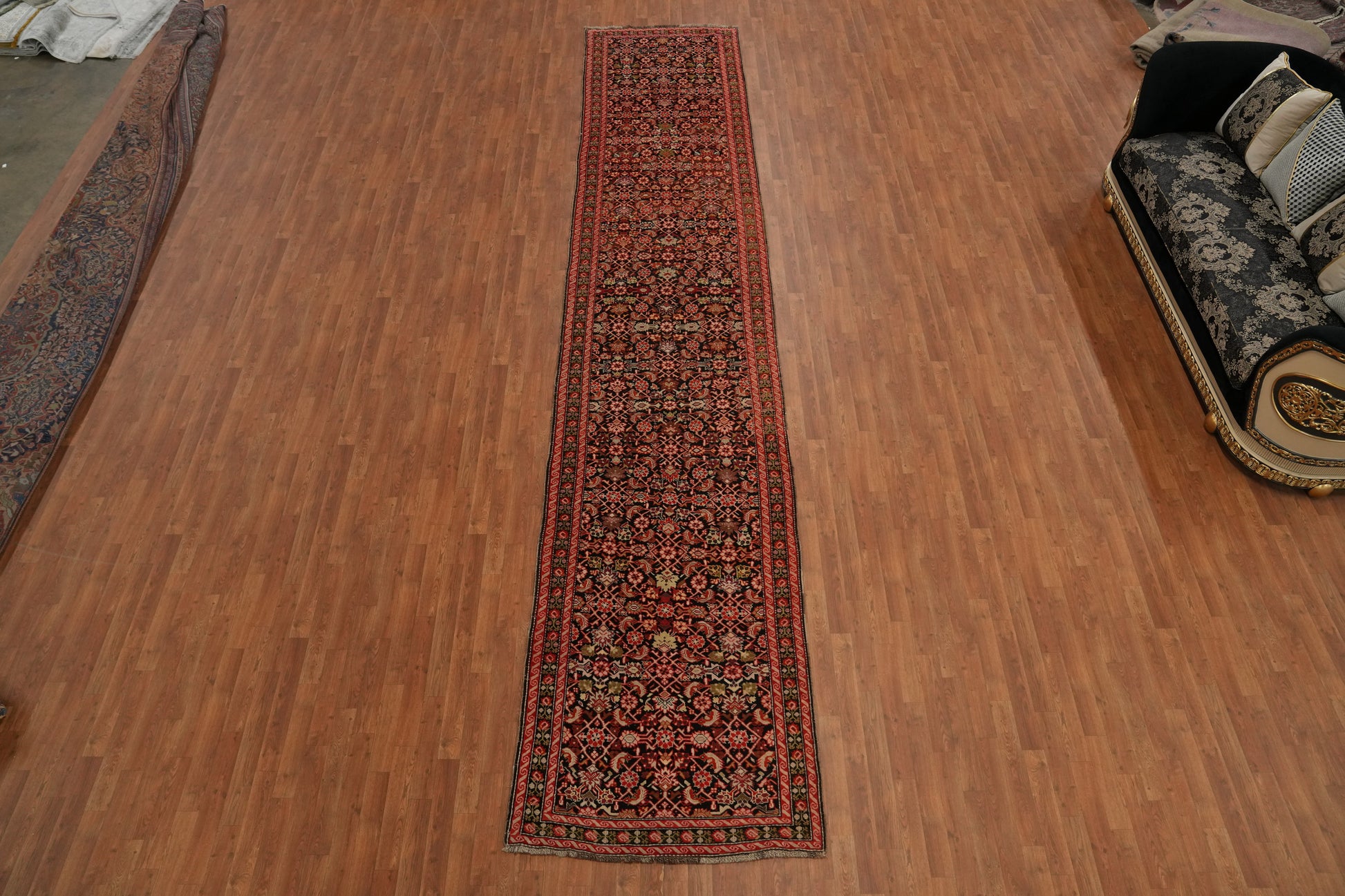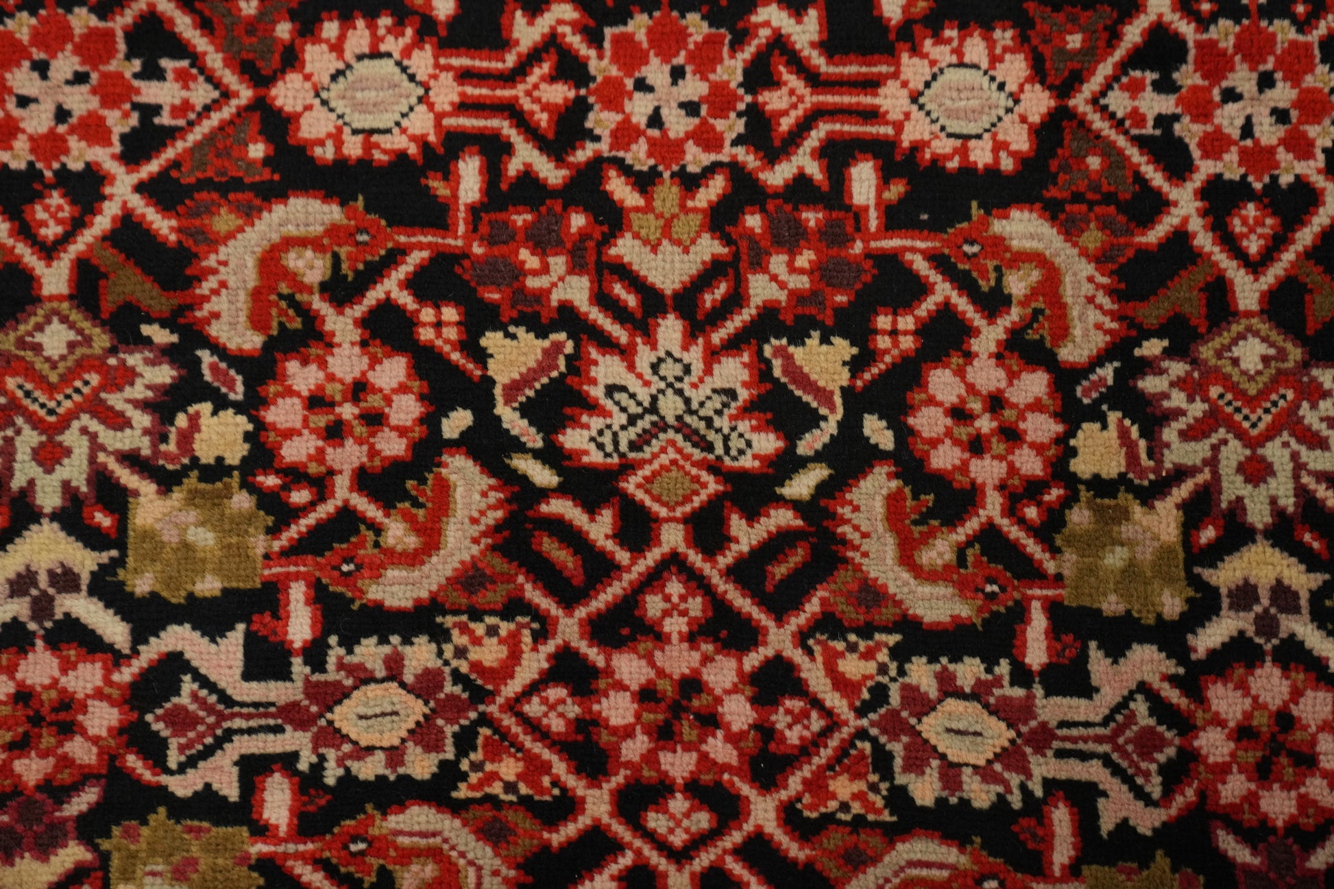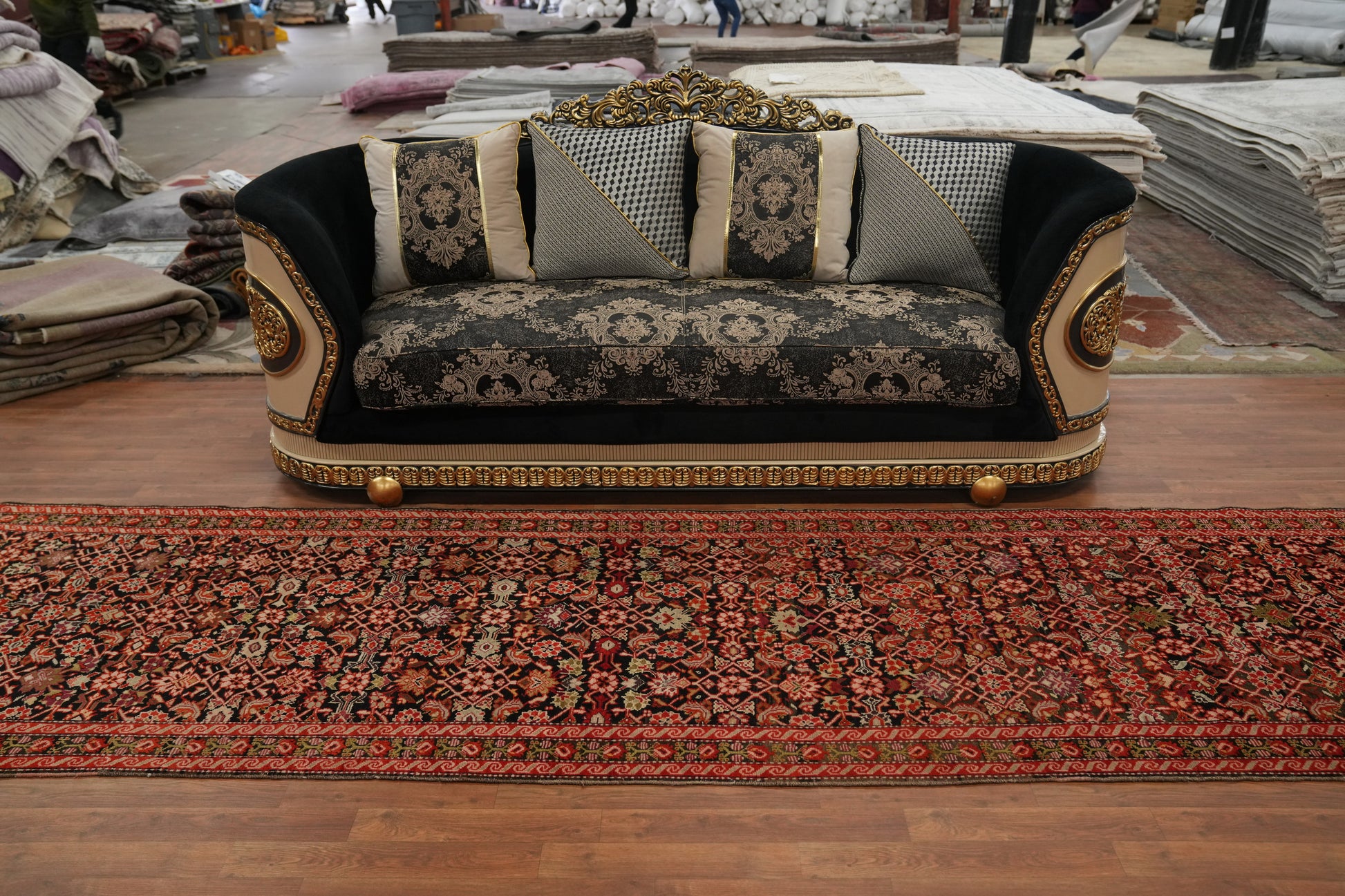 A Beautiful Genuine Russia Karabagh rug is Hand Knotted by skillful weavers in Russia with 100% Wool Material. This rug is in Very Good condition. dimensions are 18' 8'' X 3' 7'' in foot and 569 X 109 in centimeter. the primary color is Black.