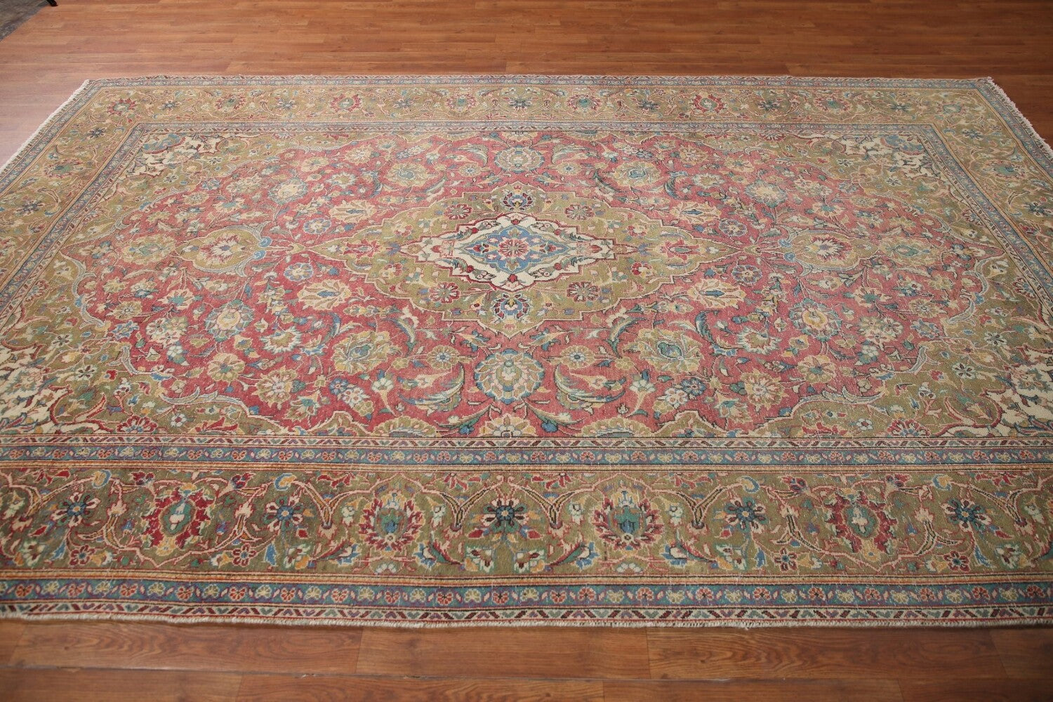 A Beautiful Genuine Persia ( Persia ) Kashan rug is Hand Knotted by skillful weavers in Persia ( Persia ) with 100% Wool Material. This rug is in Very Good (Evenly Low Pile) condition. dimensions are 10' 5'' X 6' 5'' in foot and 318 X 196 in centimeter. the primary color is Pink.