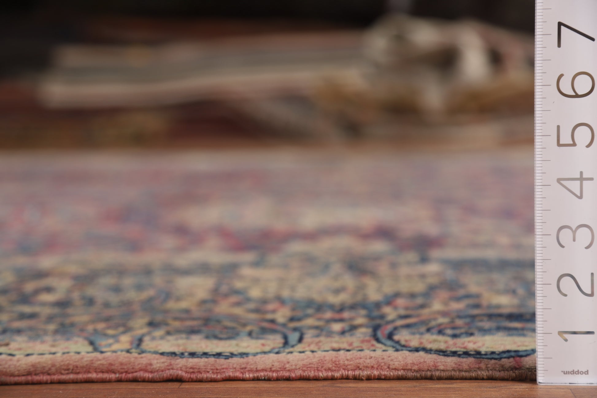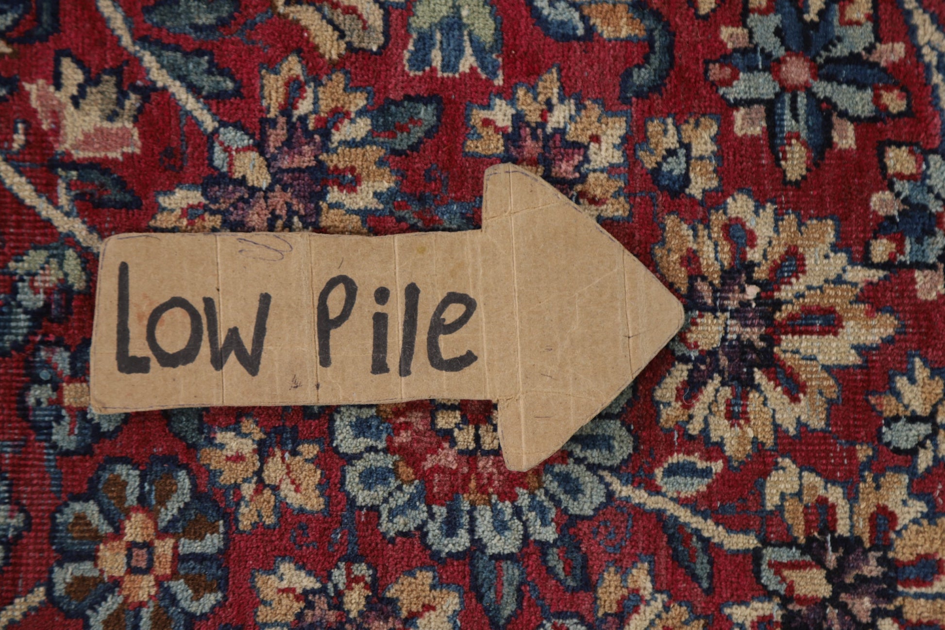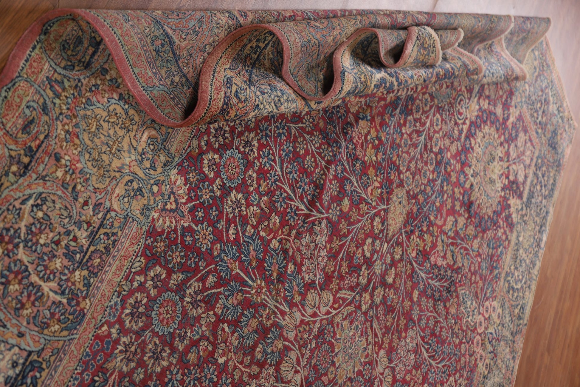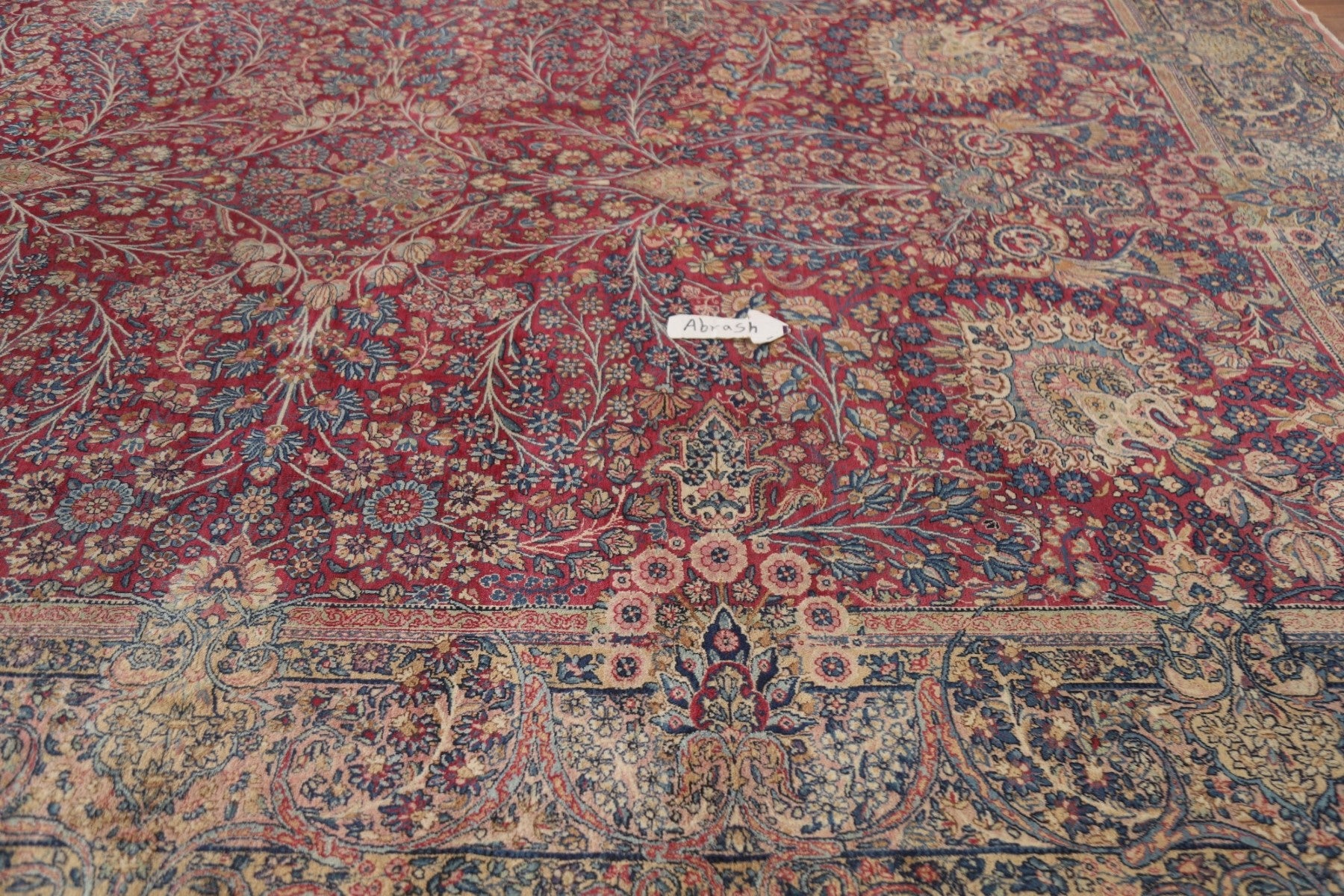 A Beautiful Genuine Persia ( Persia ) Kerman (Lavar) rug is Hand Knotted by skillful weavers in Persia ( Persia ) with 100% Wool Material. This rug is in Very Good ( Abrash- Low Pile ) condition. dimensions are 13' 9'' X 9' 7'' in foot and 419 X 292 in centimeter. the primary color is Red.