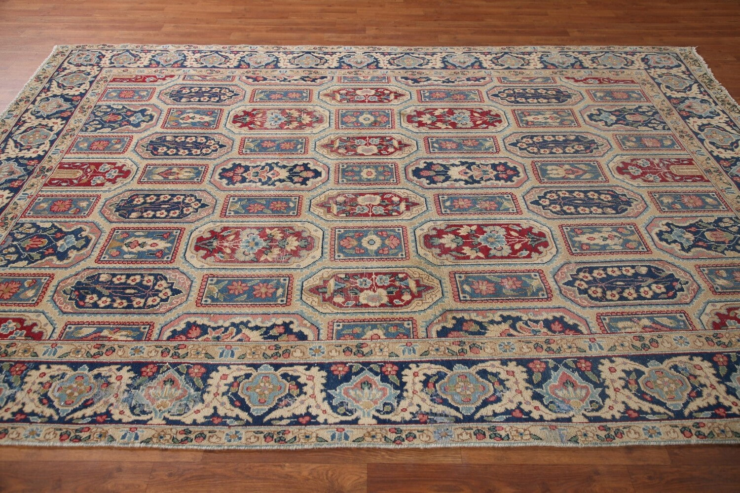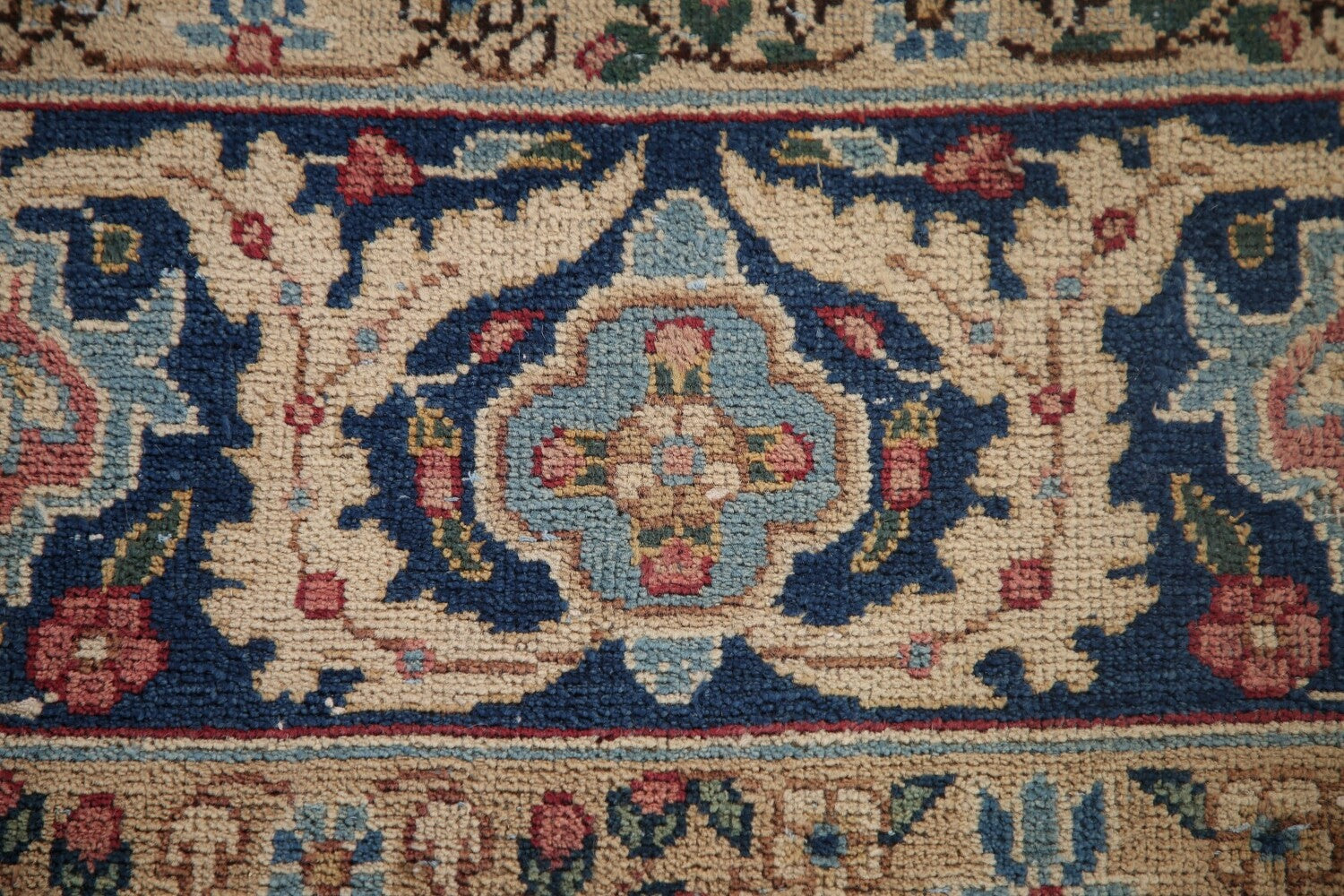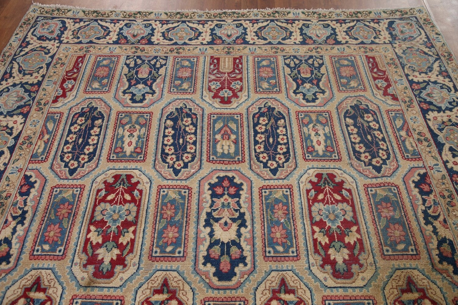A Beautiful Genuine Persia ( Persia ) Kerman rug is Hand Knotted by skillful weavers in Persia ( Persia ) with 100% Wool Material. This rug is in Very Good (Low Pile) condition. dimensions are 9' 6'' X 6' 6'' in foot and 290 X 198 in centimeter. the primary color is Beige & Ivories.