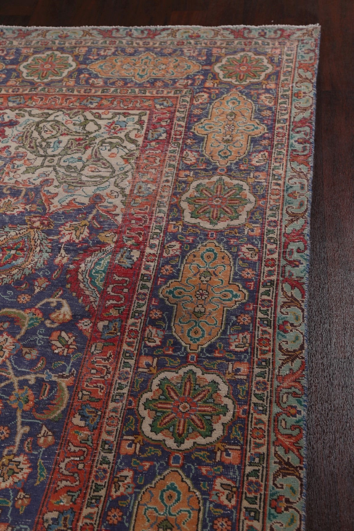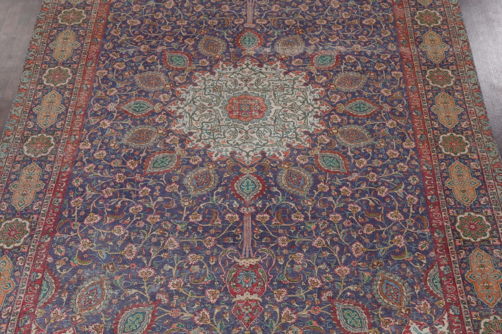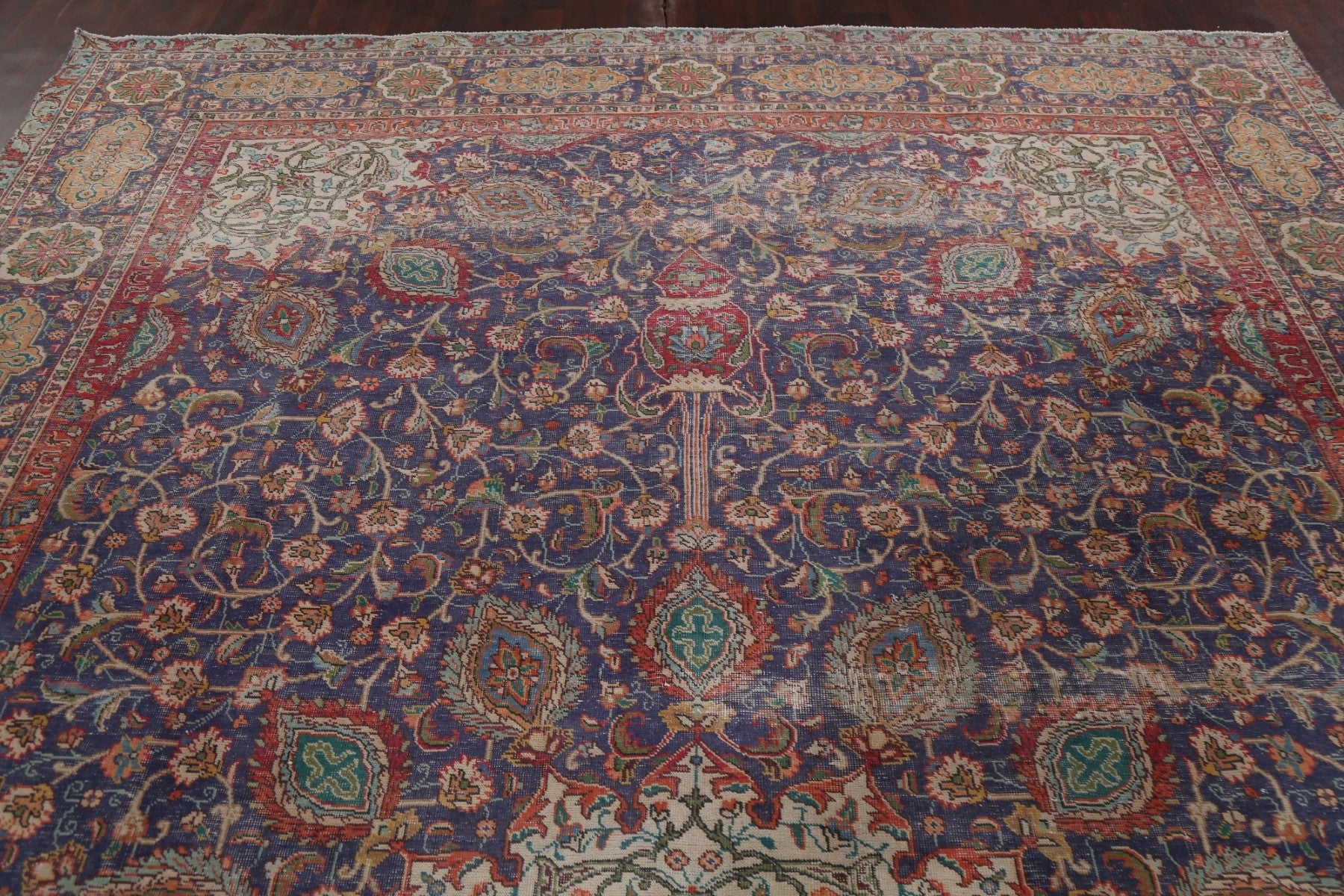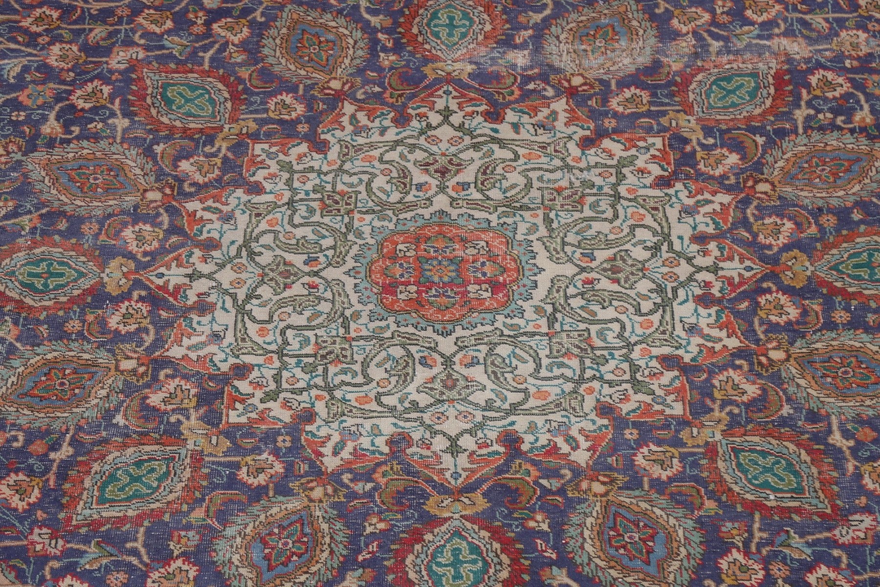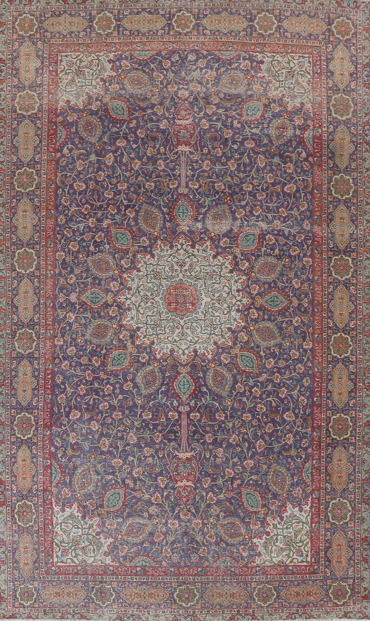 A Beautiful Genuine Persia ( Persia ) Tabriz rug is Hand Knotted by skillful weavers in Persia ( Persia ) with 100% Wool Material. This rug is in Very Good (Evenly Low Pile) condition. dimensions are 15' 7'' X 9' 9'' in foot and 475 X 297 in centimeter. the primary color is Navy Blue & Blues.