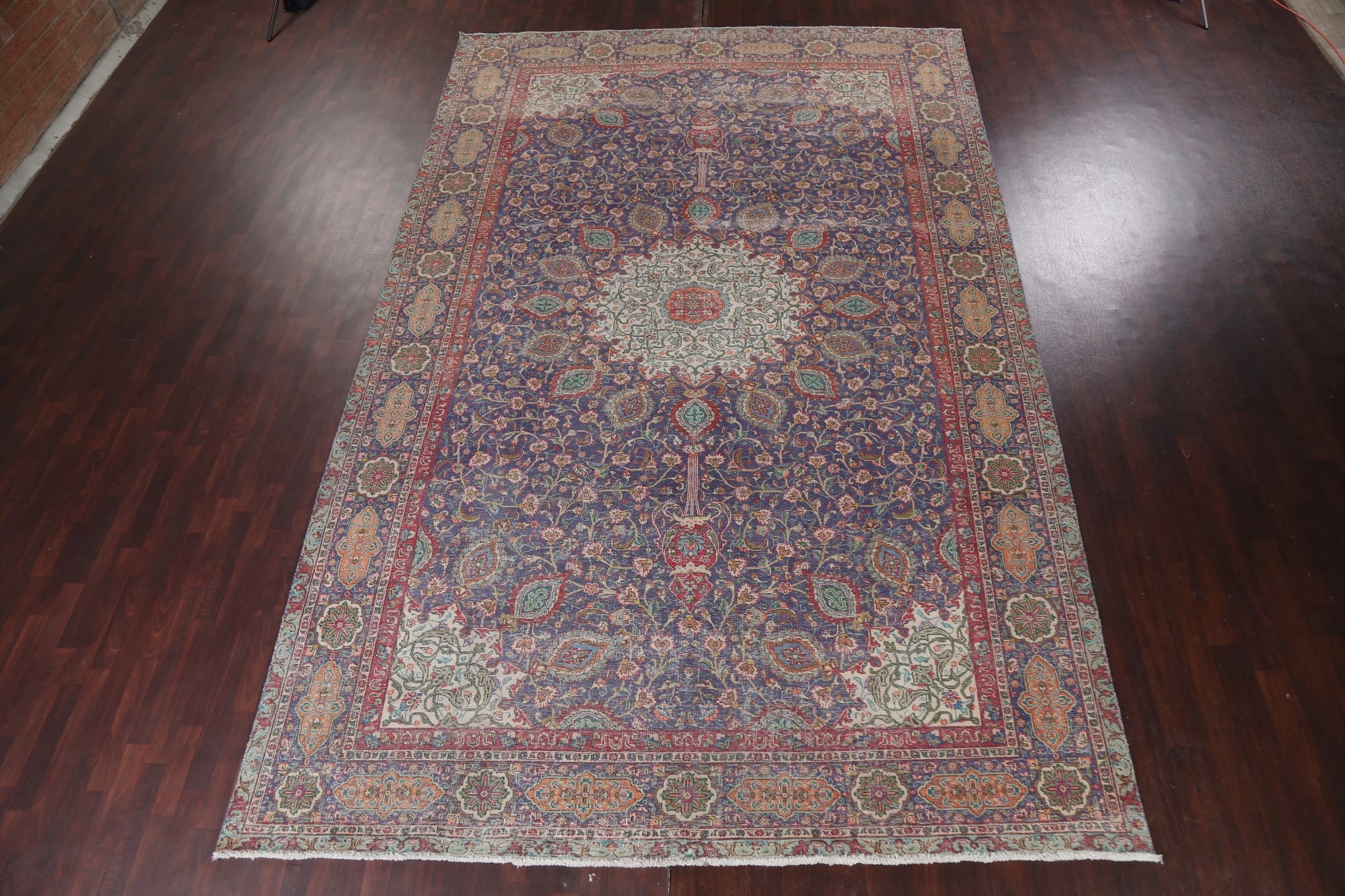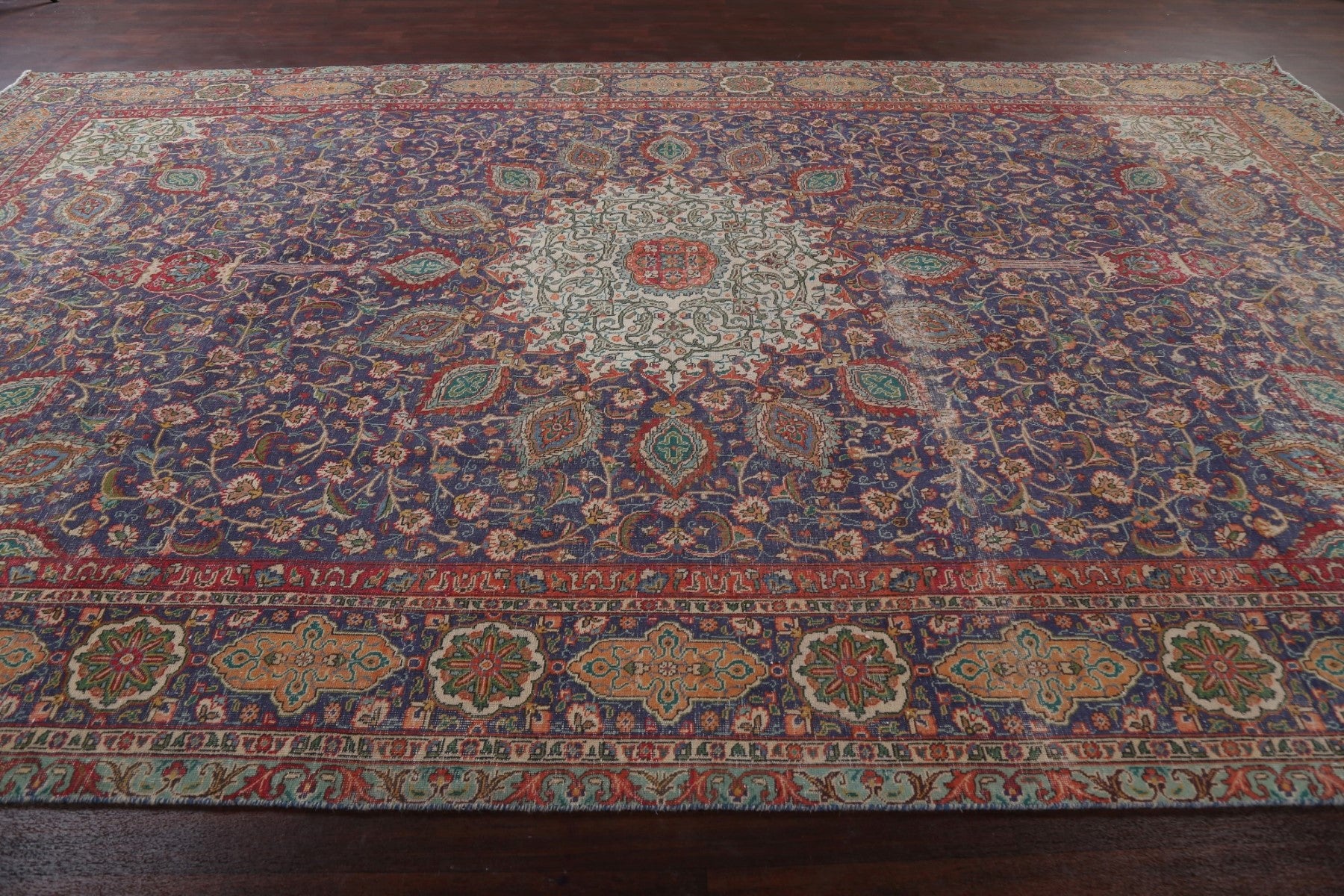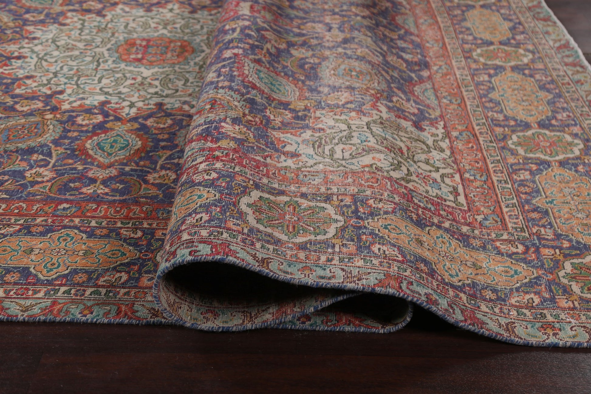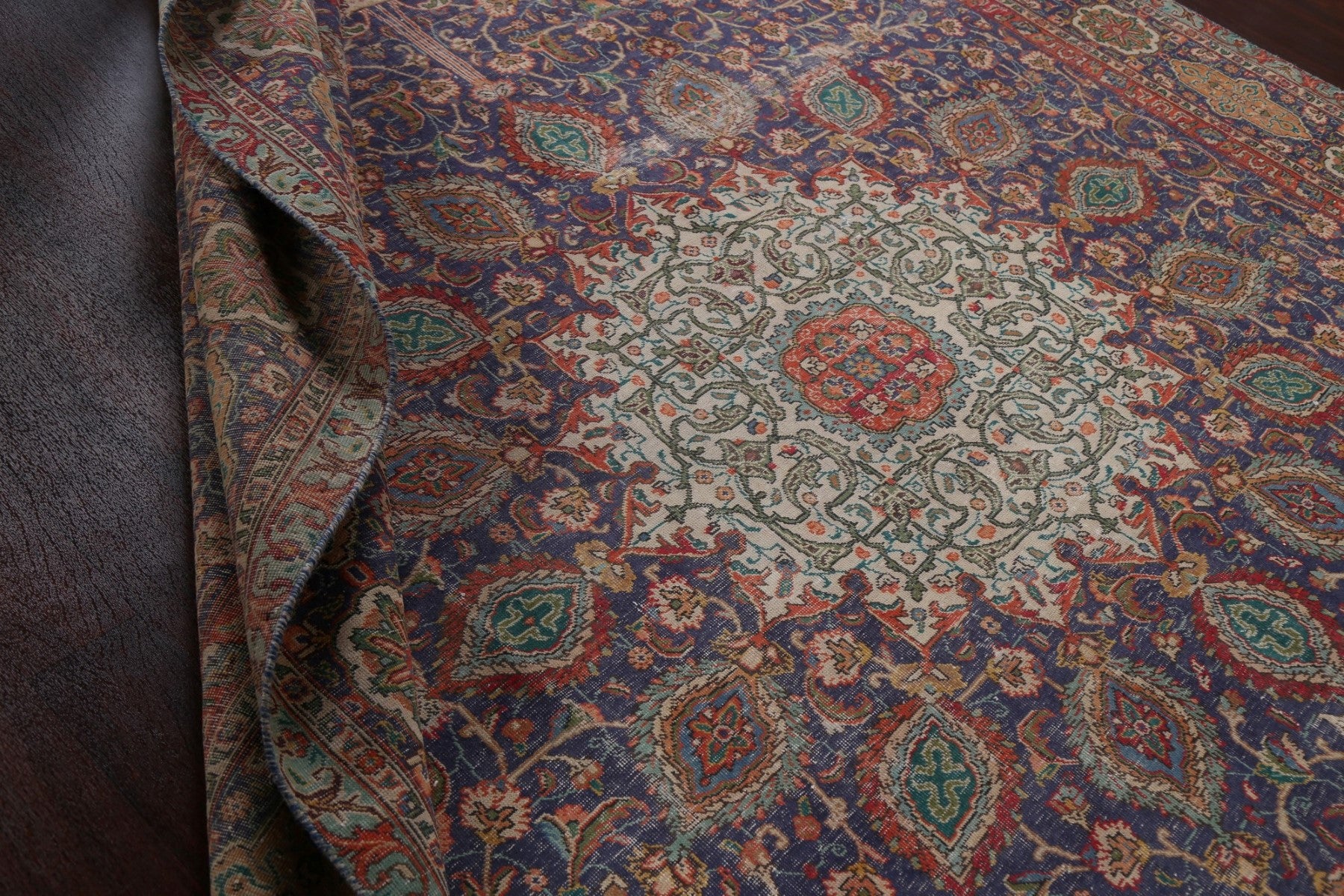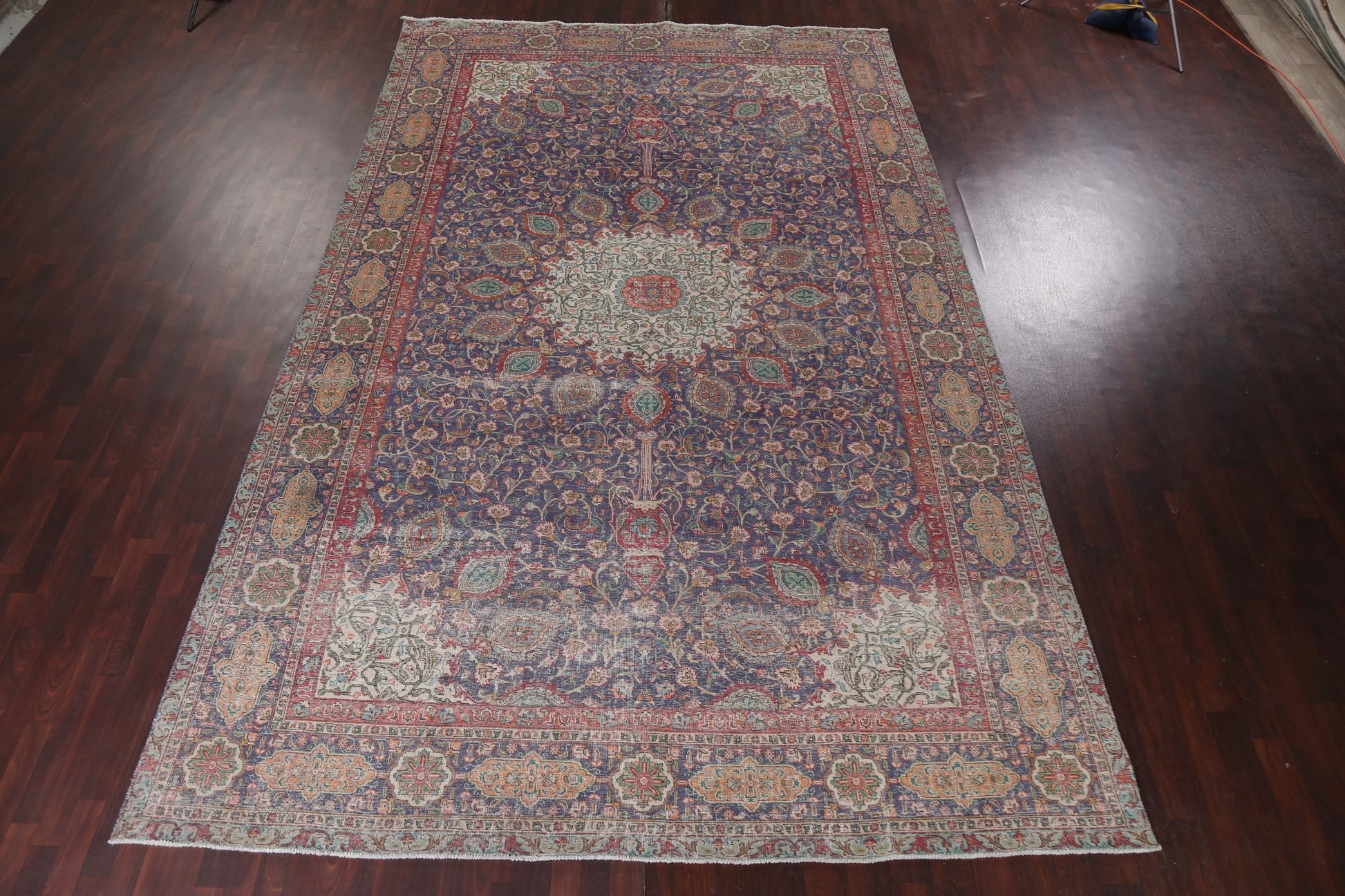 A Beautiful Genuine Persia ( Persia ) Tabriz rug is Hand Knotted by skillful weavers in Persia ( Persia ) with 100% Wool Material. This rug is in Very Good (Evenly Low Pile) condition. dimensions are 15' 7'' X 9' 9'' in foot and 475 X 297 in centimeter. the primary color is Navy Blue & Blues.