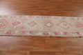A Beautiful Genuine Turkey Oushak rug is Hand Knotted by skillful weavers in Turkey with 100% Wool Material. This rug is in Very Good condition. dimensions are 11' 3'' X 2' 8'' in foot and 343 X 81 in centimeter. the primary color is Beige & Ivories.