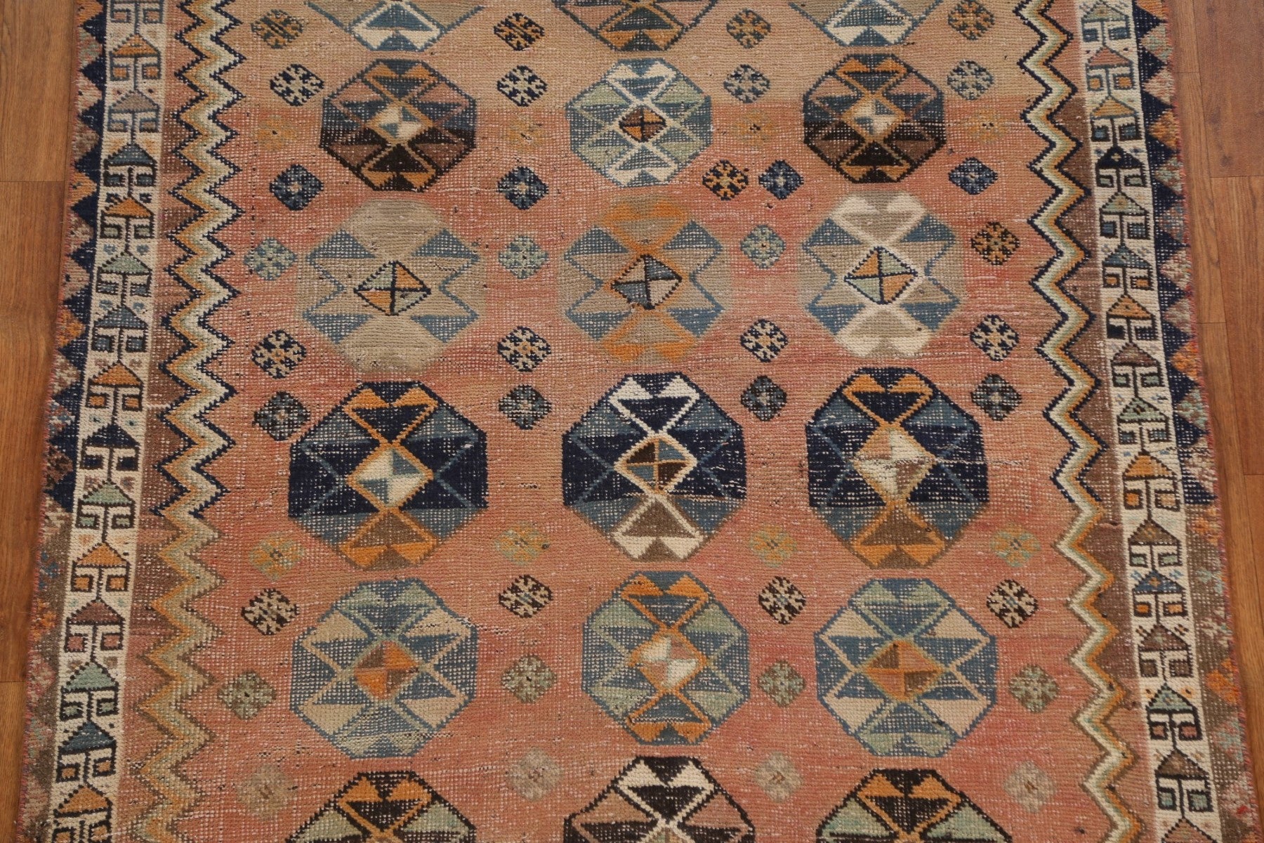 A Beautiful Genuine Persia ( Persia ) Lori rug is Hand Knotted by skillful weavers in Persia ( Persia ) with 100% Wool Material. This rug is in Very Good (Evenly Low Pile-Repair) condition. dimensions are 9' 0'' X 4' 5'' in foot and 274 X 135 in centimeter. the primary color is Peach.