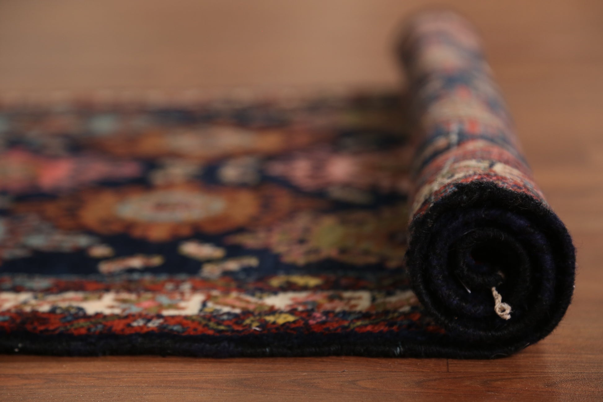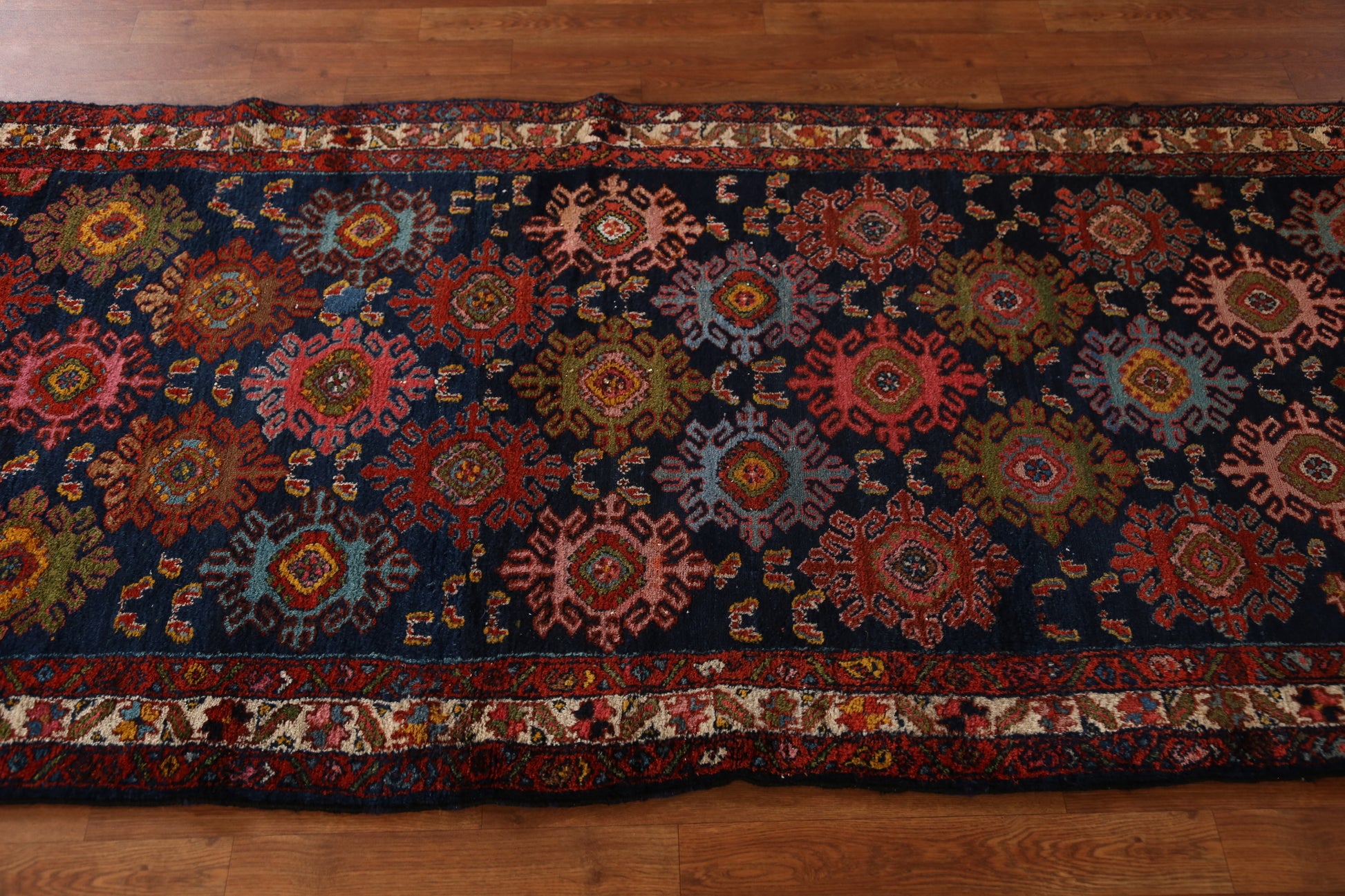 A Beautiful Genuine Persia ( Persia ) Malayer rug is Hand Knotted by skillful weavers in Persia ( Persia ) with 100% Wool Material. This rug is in Very Good condition. dimensions are 16' 7'' X 3' 4'' in foot and 505 X 102 in centimeter. the primary color is Navy Blue & Blues.