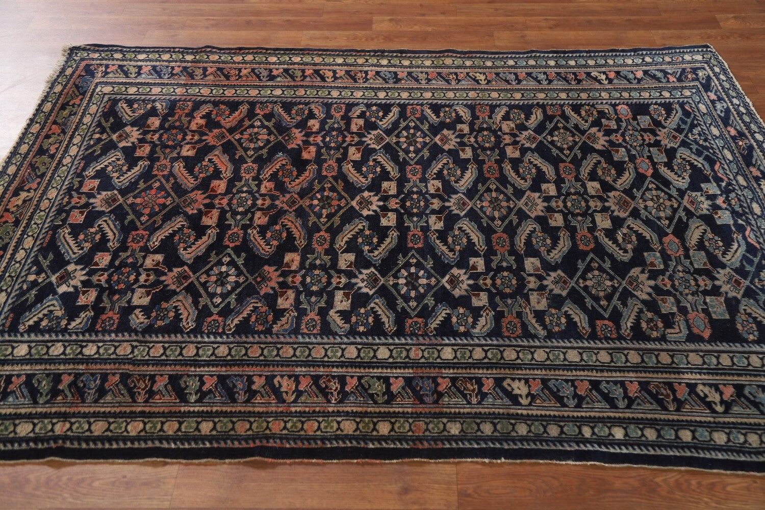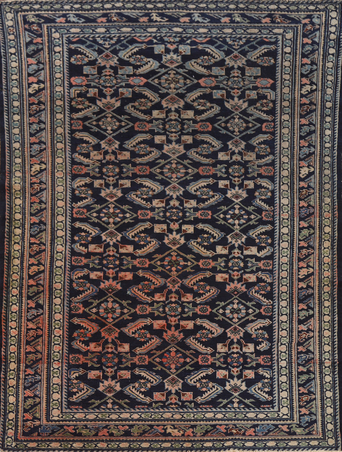Antique Navy Blue Kazak Vegetable Dye Rug 4x6
