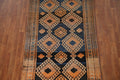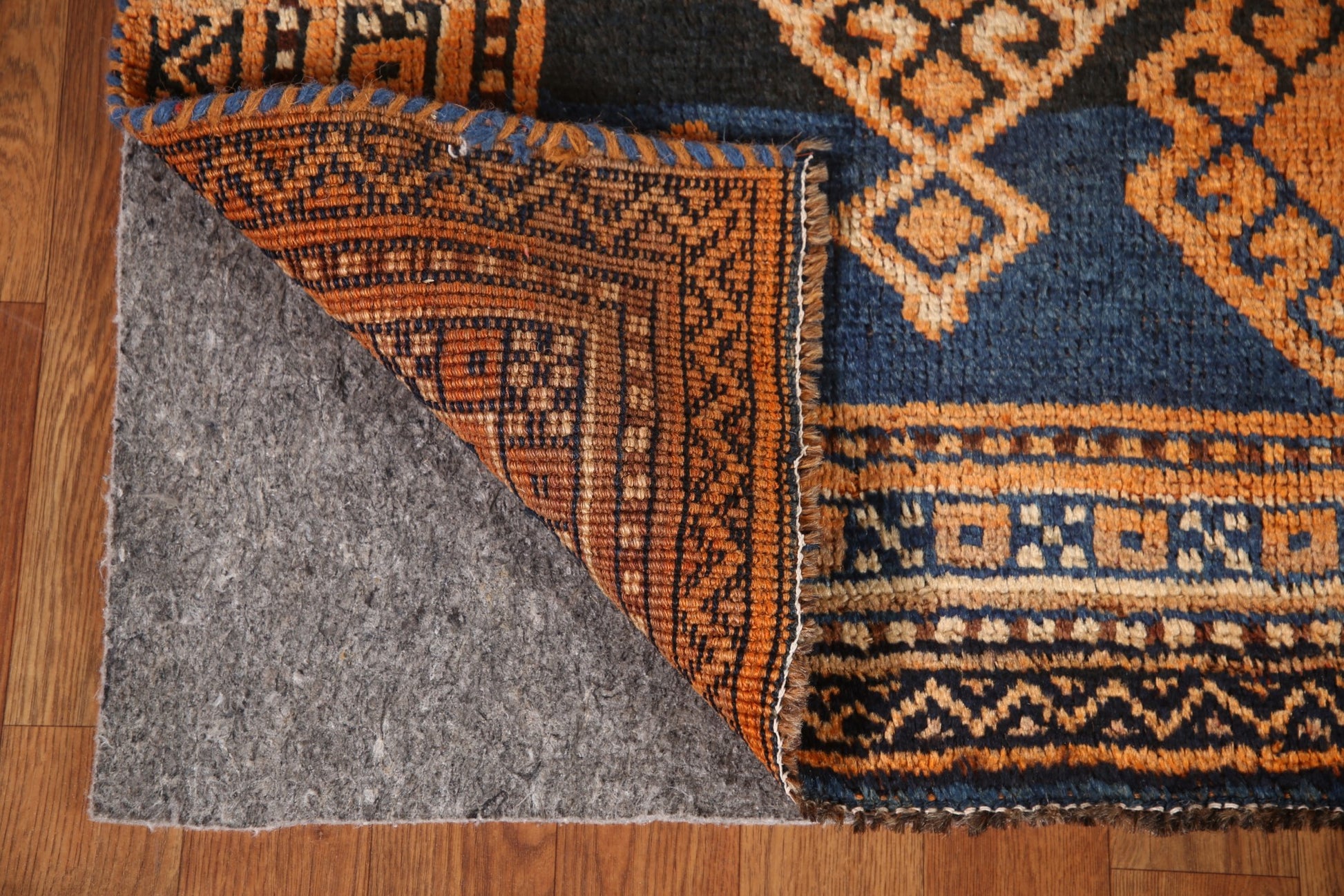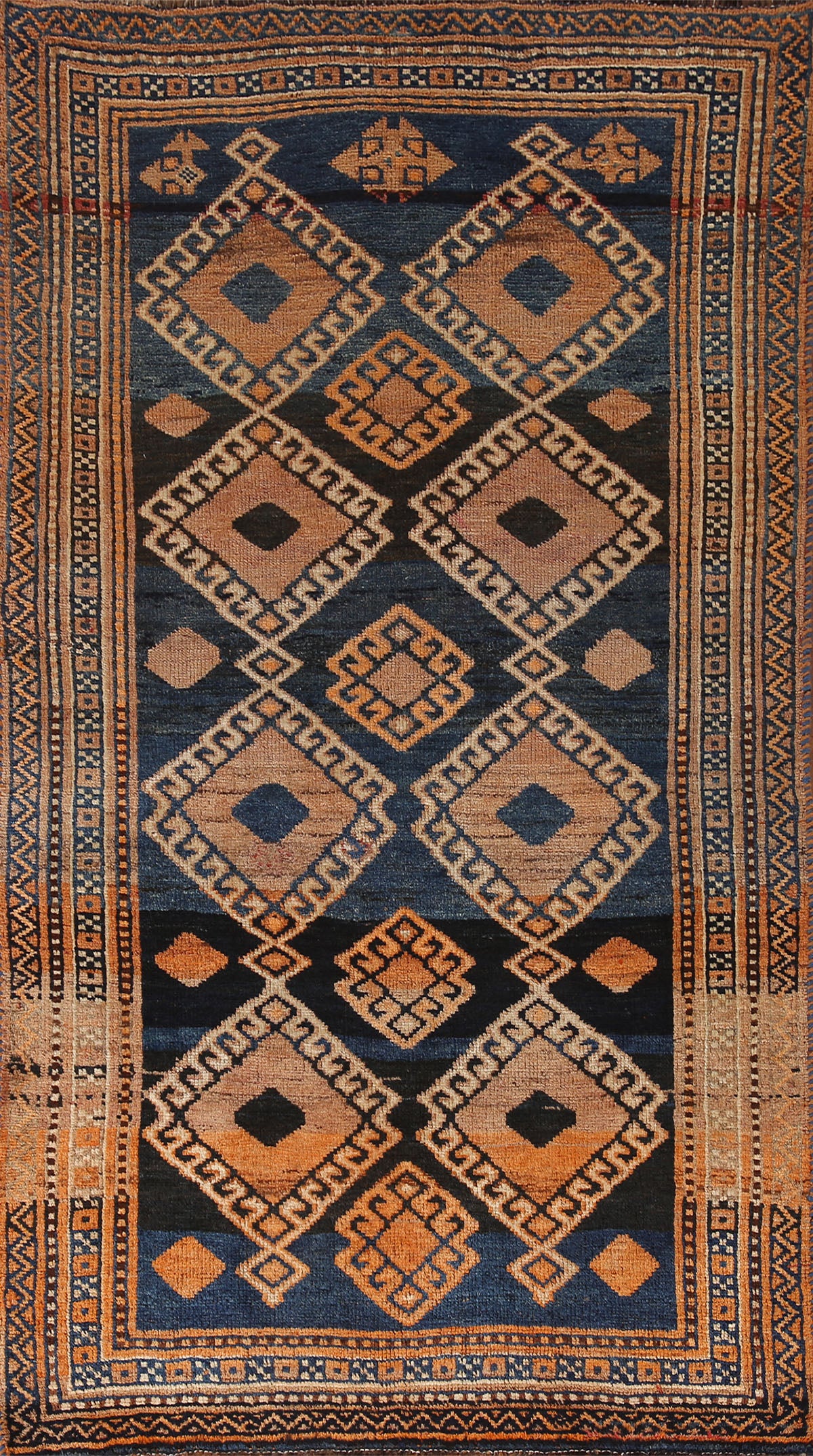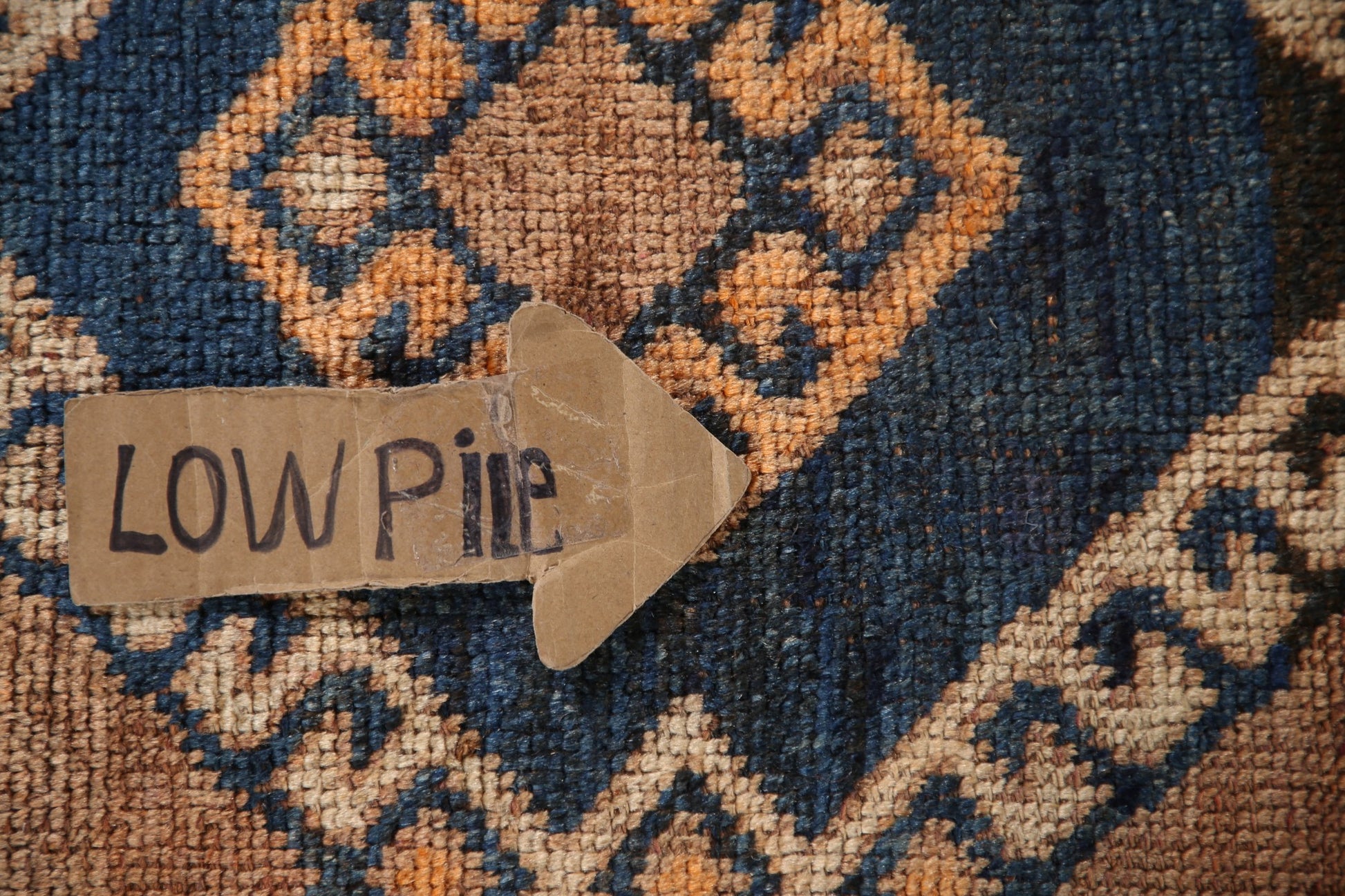 A Beautiful Genuine Persia ( Persia ) Qashqai rug is Hand Knotted by skillful weavers in Persia ( Persia ) with 100% Wool Material. This rug is in Very Good (Low Pile-Abrash) condition. dimensions are 7' 6'' X 3' 11'' in foot and 229 X 119 in centimeter. the primary color is Navy Blue & Blues.