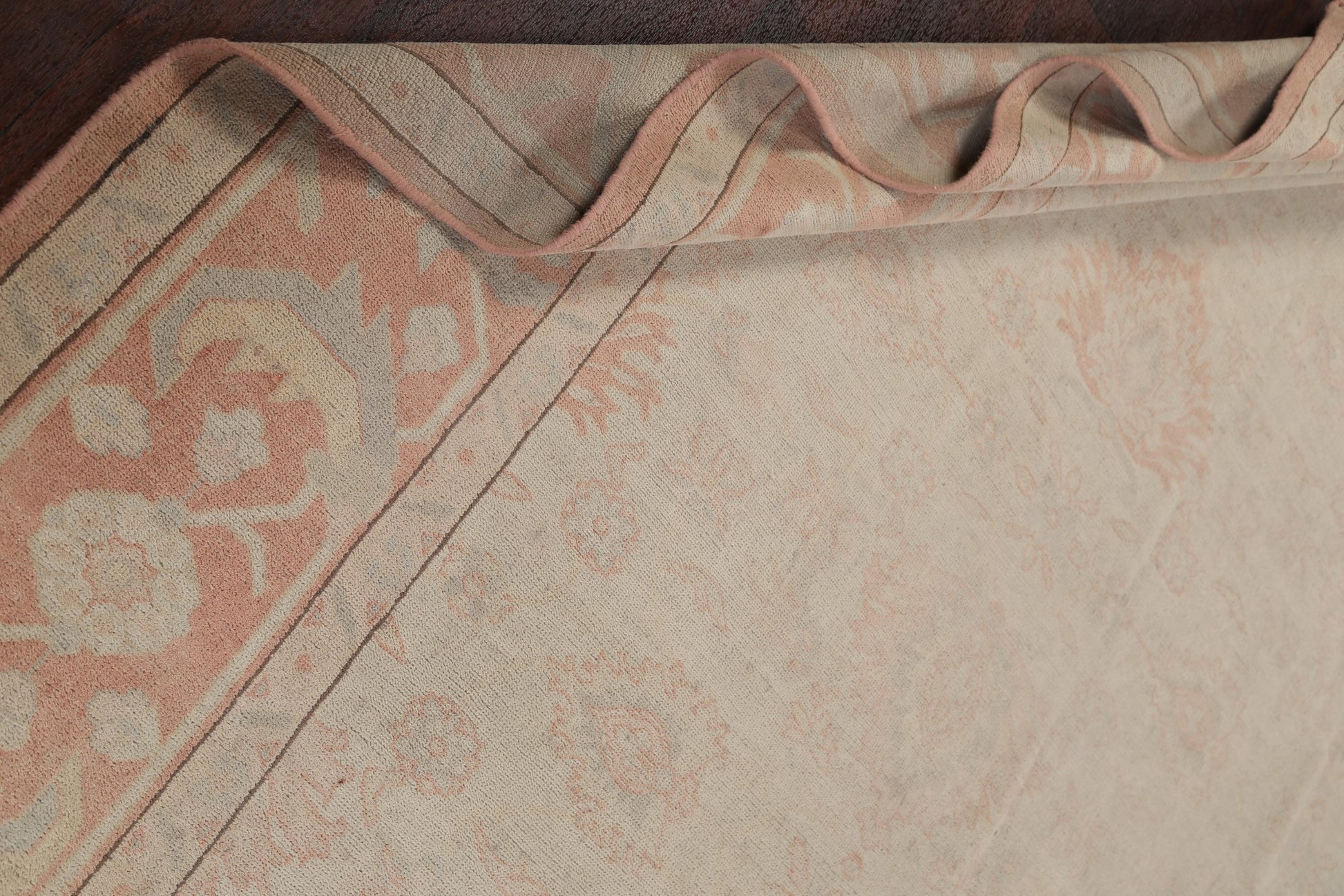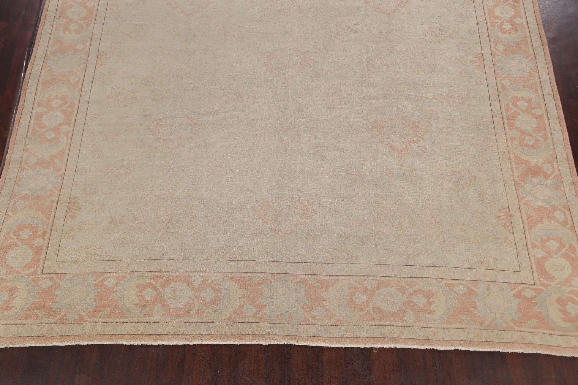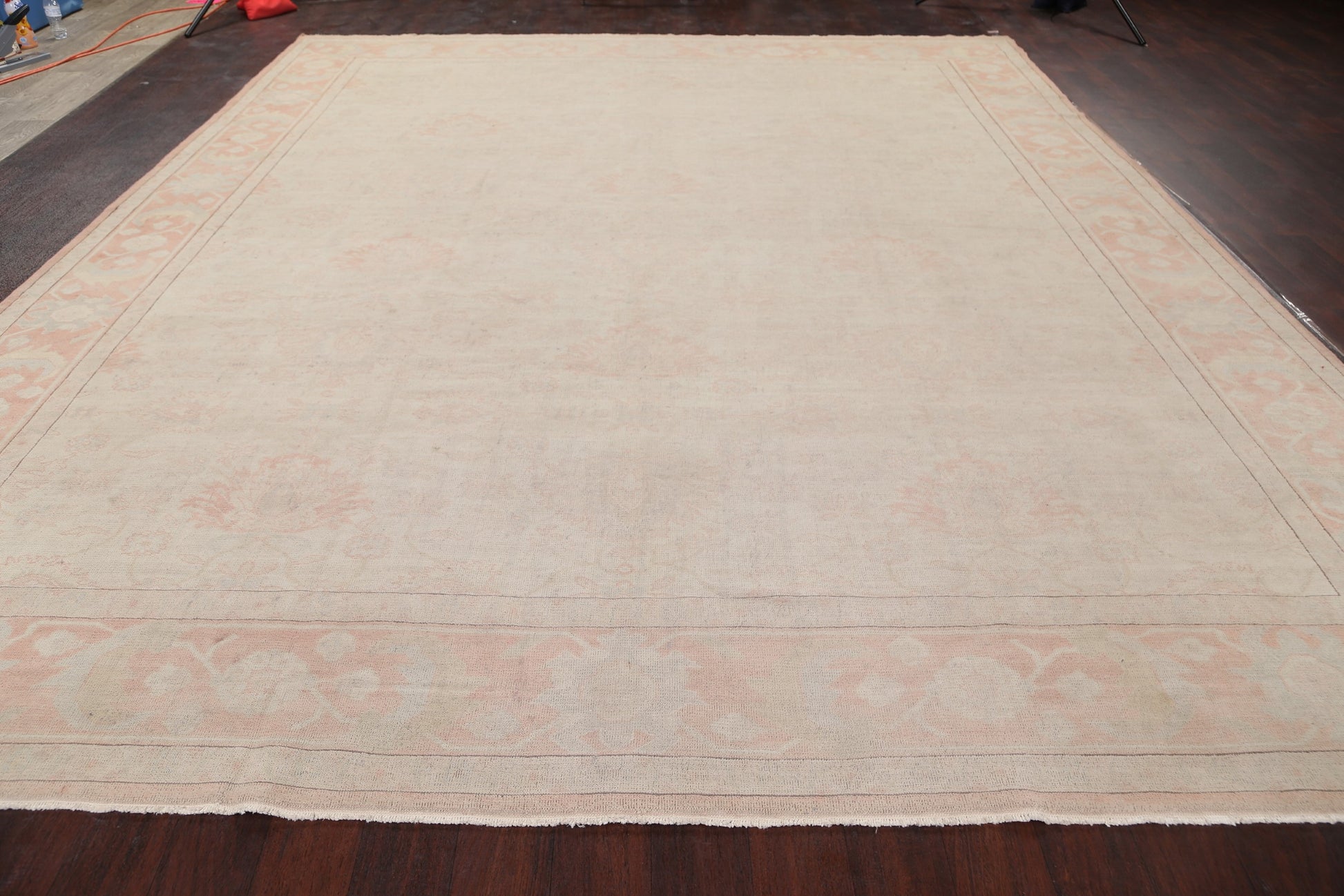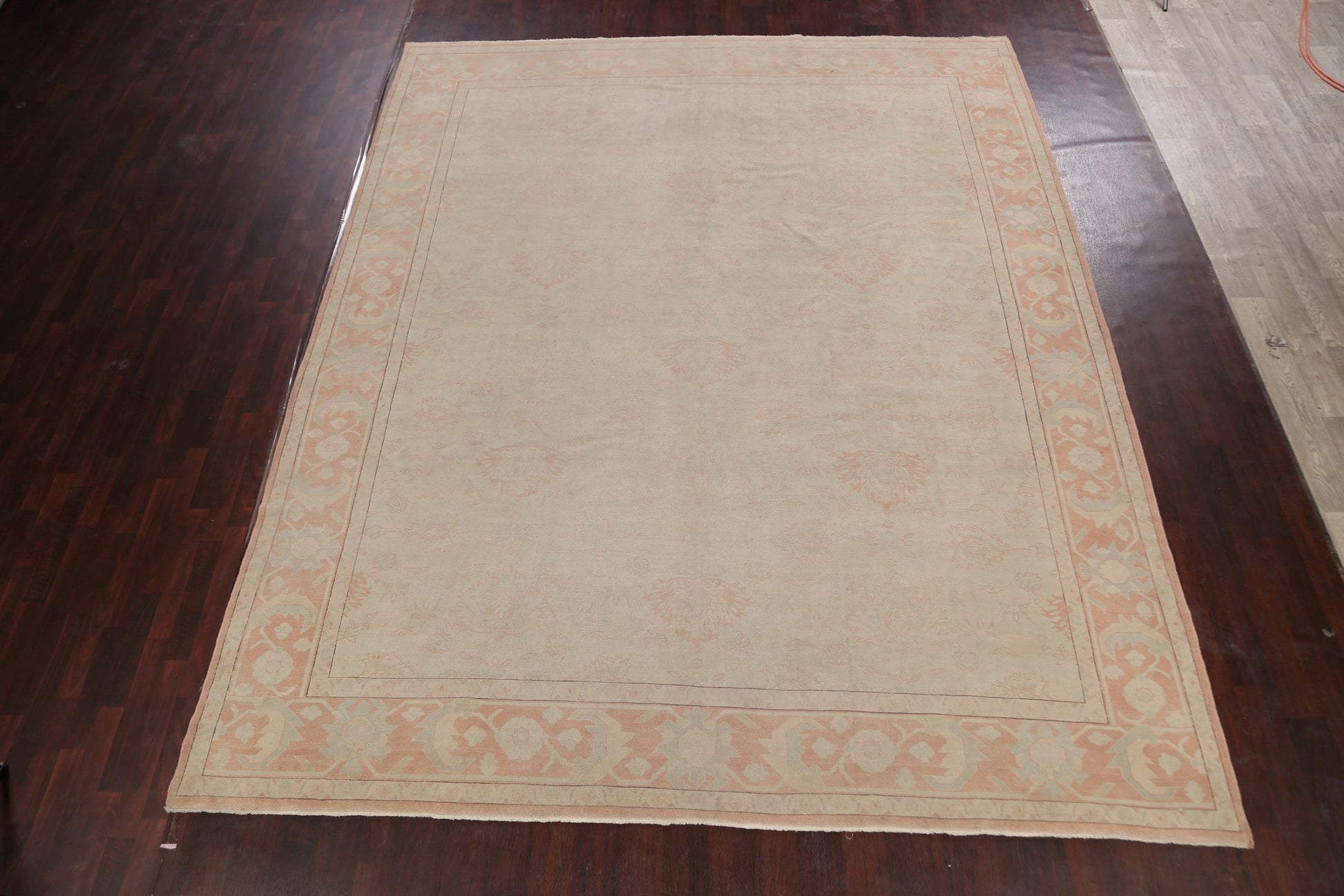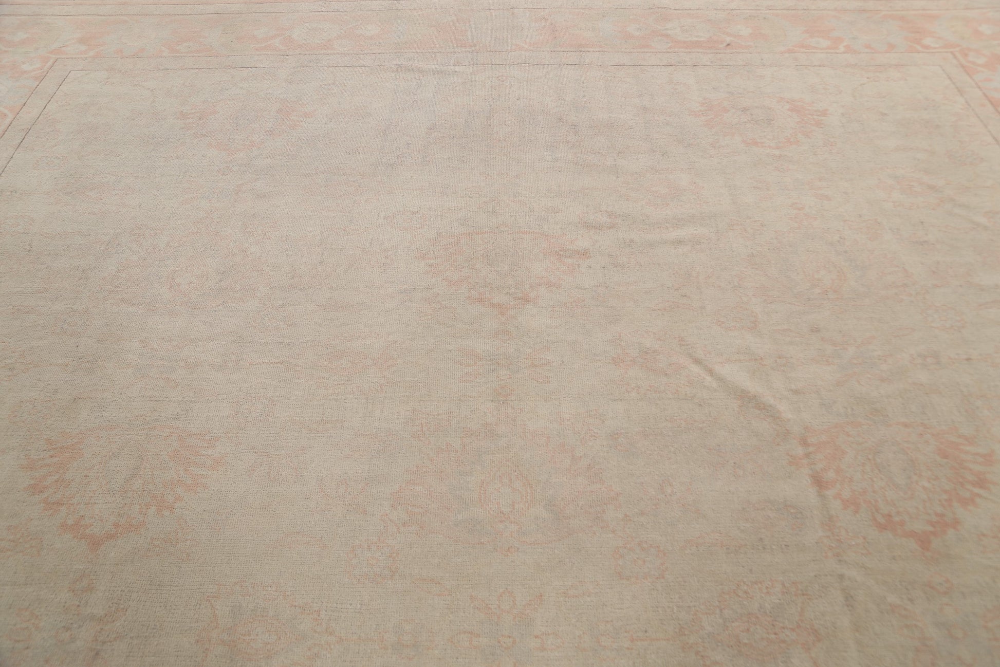 A Beautiful Genuine Egypt Oushak (100% Vegetable Dye) rug is Hand Knotted by skillful weavers in Egypt with 100% Wool Material. This rug is in Very Good (Evenly Low Pile) condition. dimensions are 12' 8'' X 10' 4'' in foot and 386 X 315 in centimeter. the primary color is Beige & Ivories.