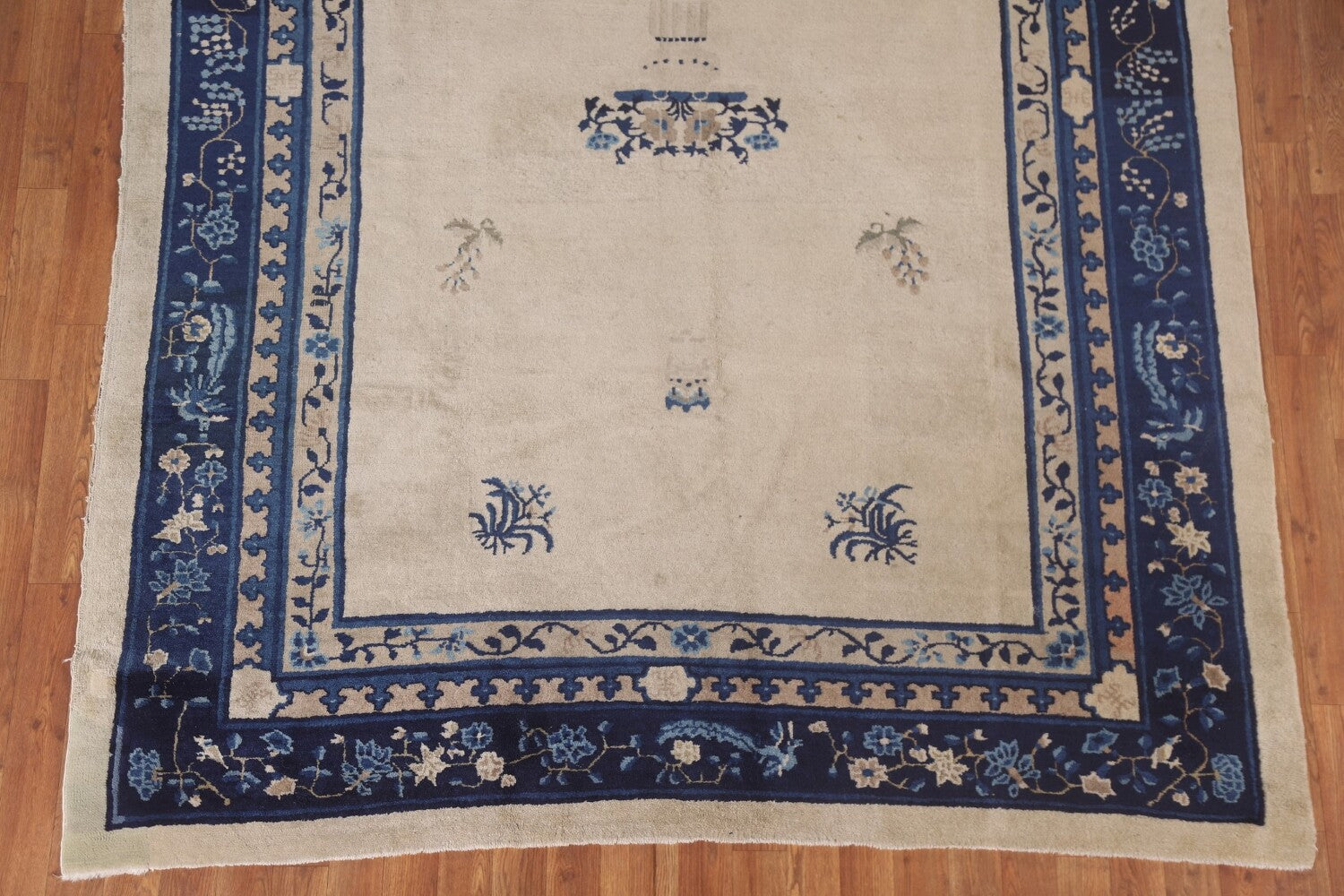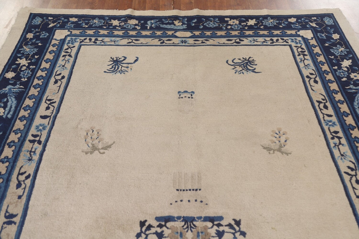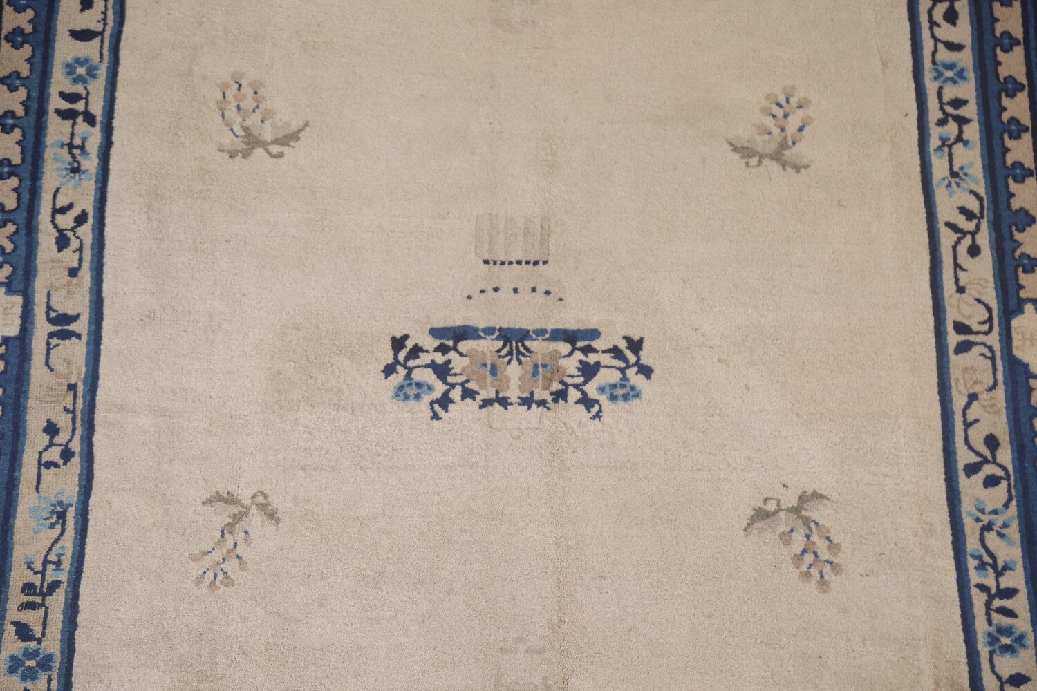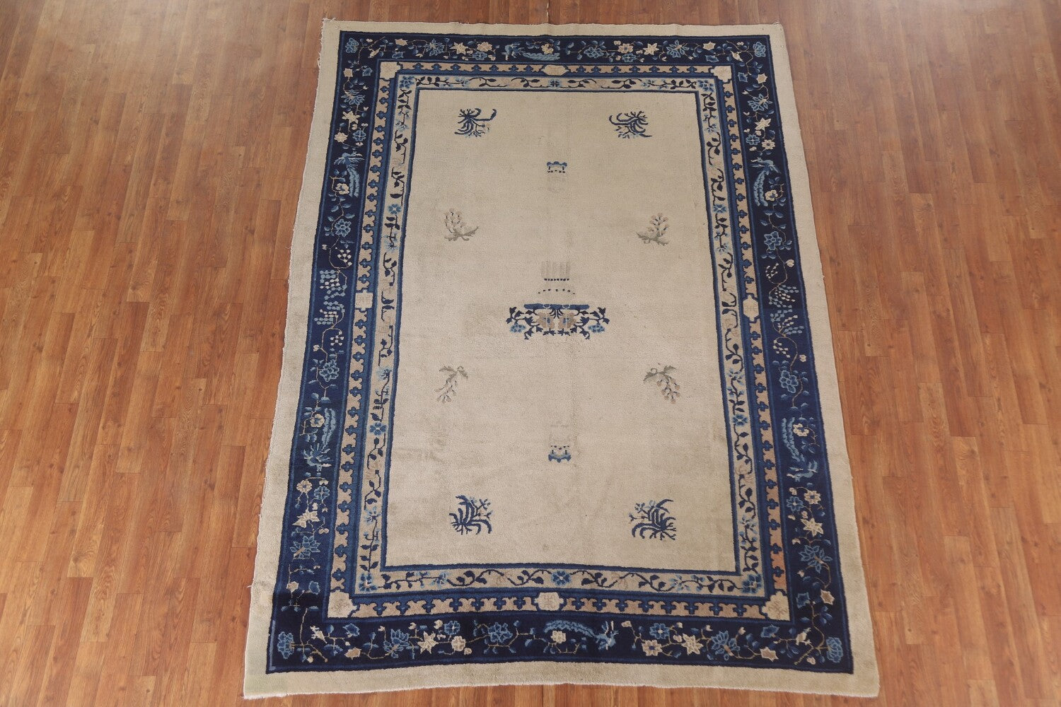 A Beautiful Genuine China Peking rug is Hand Knotted by skillful weavers in China with 100% Wool Material. This rug is in Very Good (Low Pile-Abrash) condition. dimensions are 8' 8'' X 6' 4'' in foot and 264 X 193 in centimeter. the primary color is Beige & Ivories.