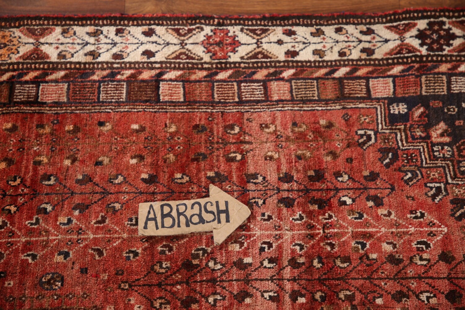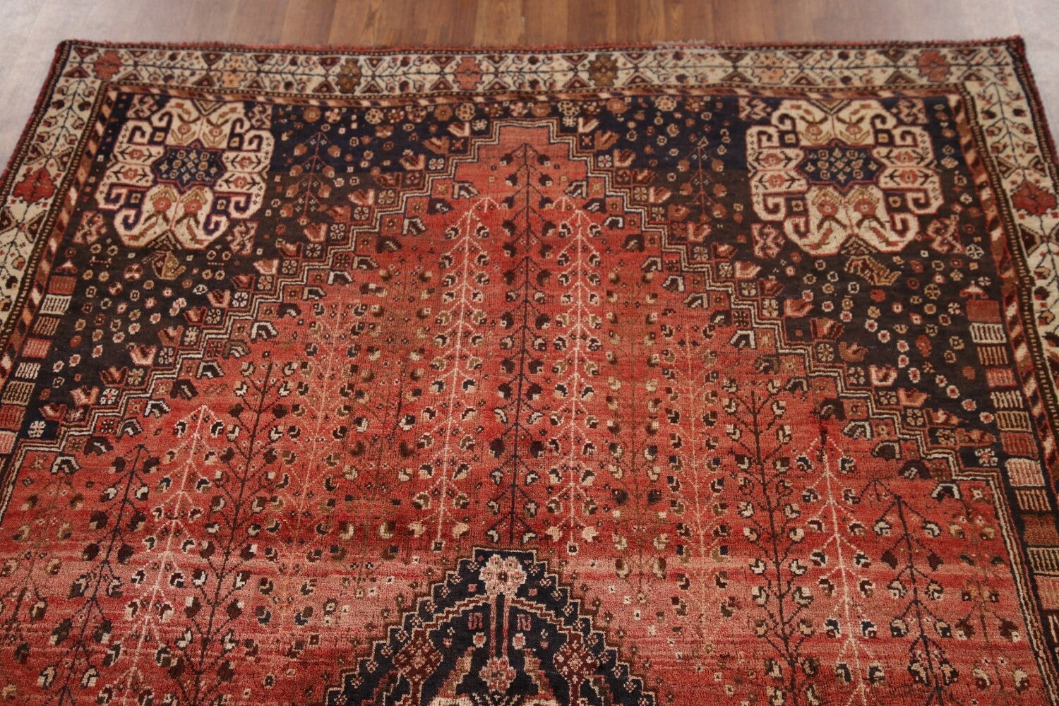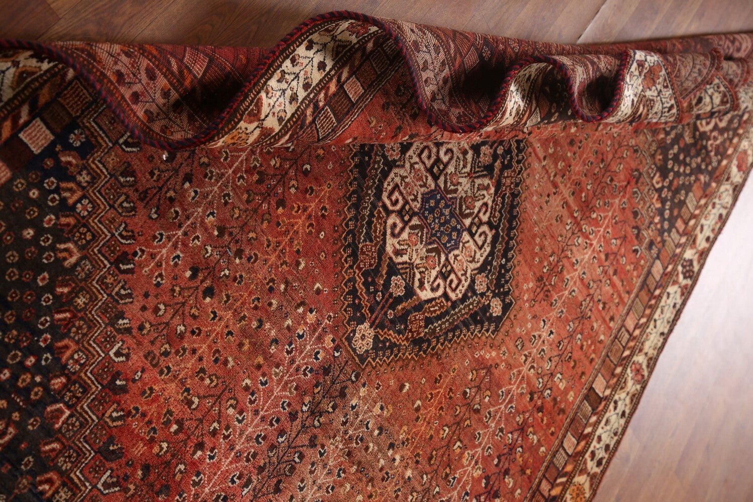 A Beautiful Genuine Persia ( Persia ) Qashqai rug is Hand Knotted by skillful weavers in Persia ( Persia ) with 100% Wool Material. This rug is in Very Good (Evenly Low Pile-Abrash) condition. dimensions are 8' 5'' X 5' 2'' in foot and 257 X 157 in centimeter. the primary color is Red.