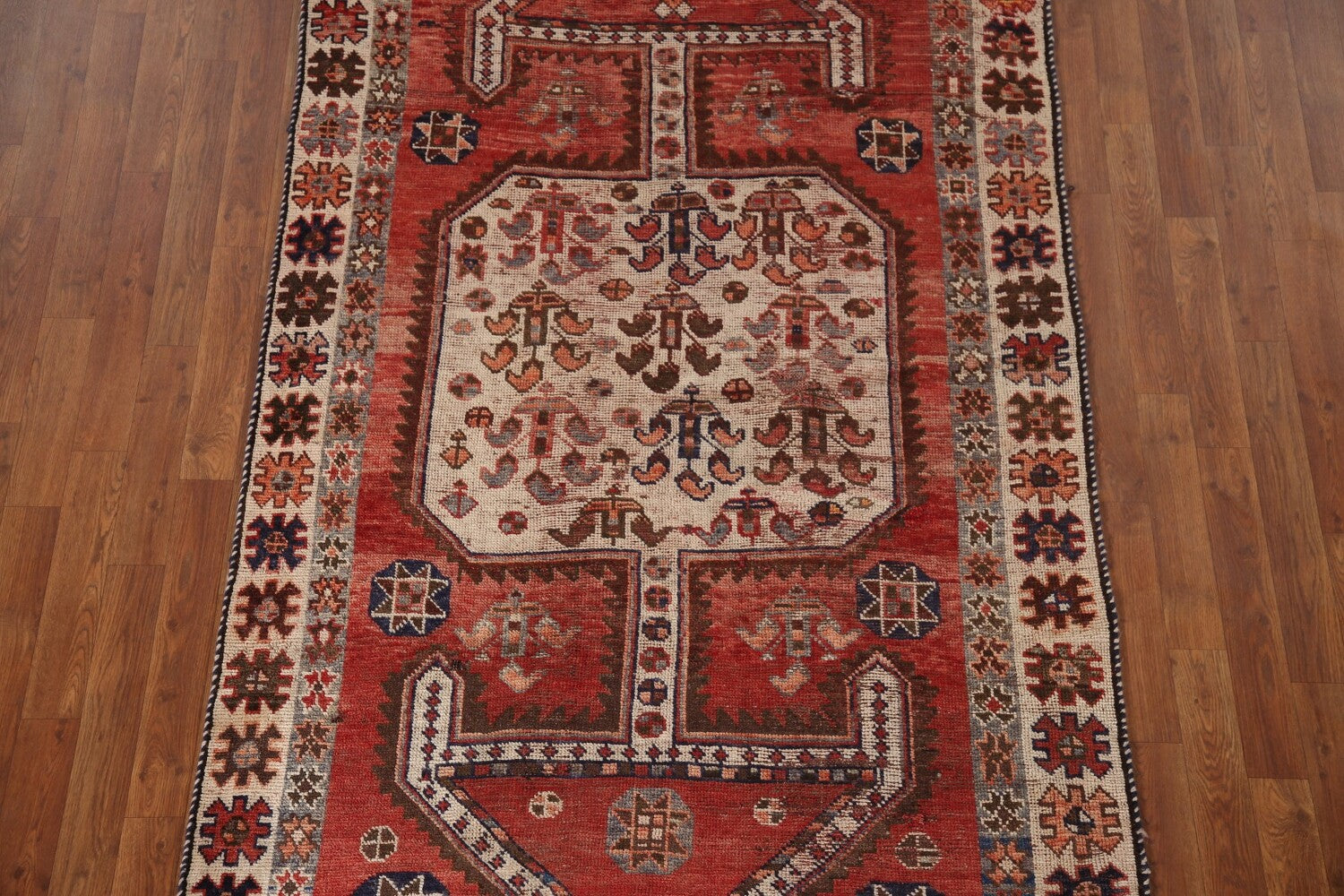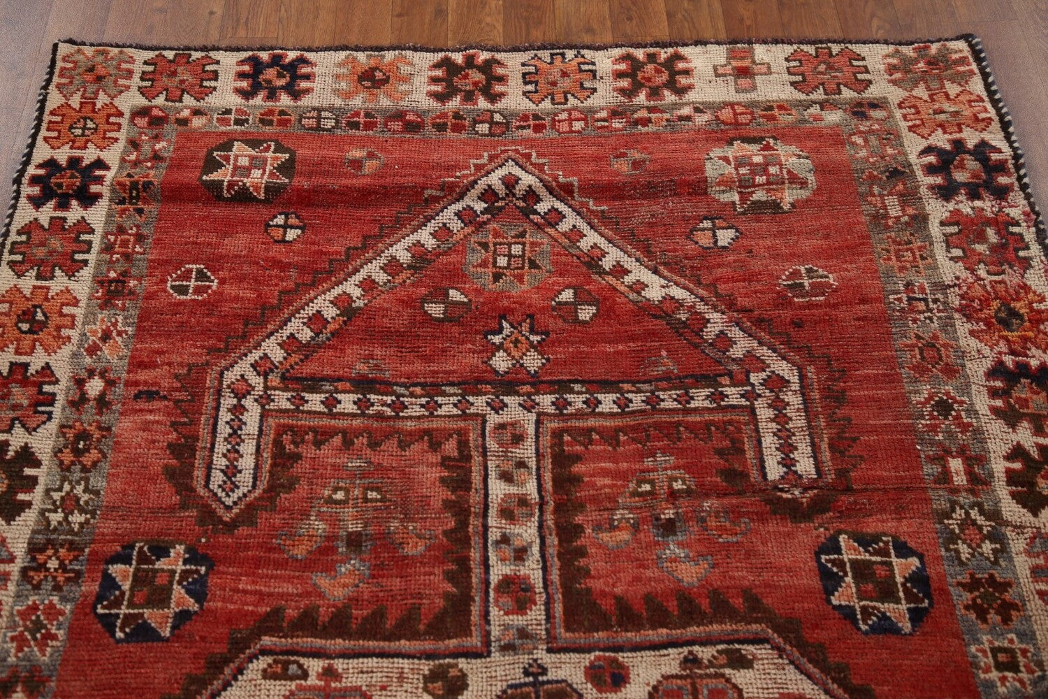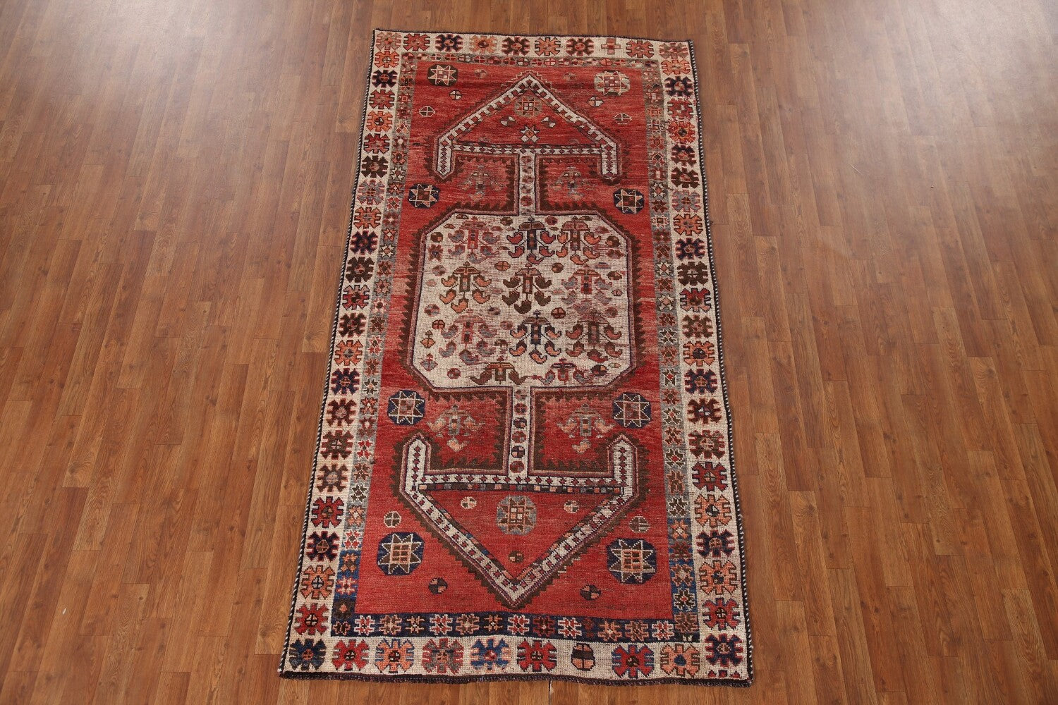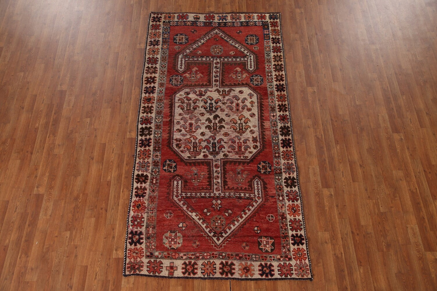 A Beautiful Genuine Persia ( Persia ) Qashqai rug is Hand Knotted by skillful weavers in Persia ( Persia ) with 100% Wool Material. This rug is in Very Good(Evenly Low Pile) condition. dimensions are 8' 5'' X 4' 4'' in foot and 257 X 132 in centimeter. the primary color is Red.