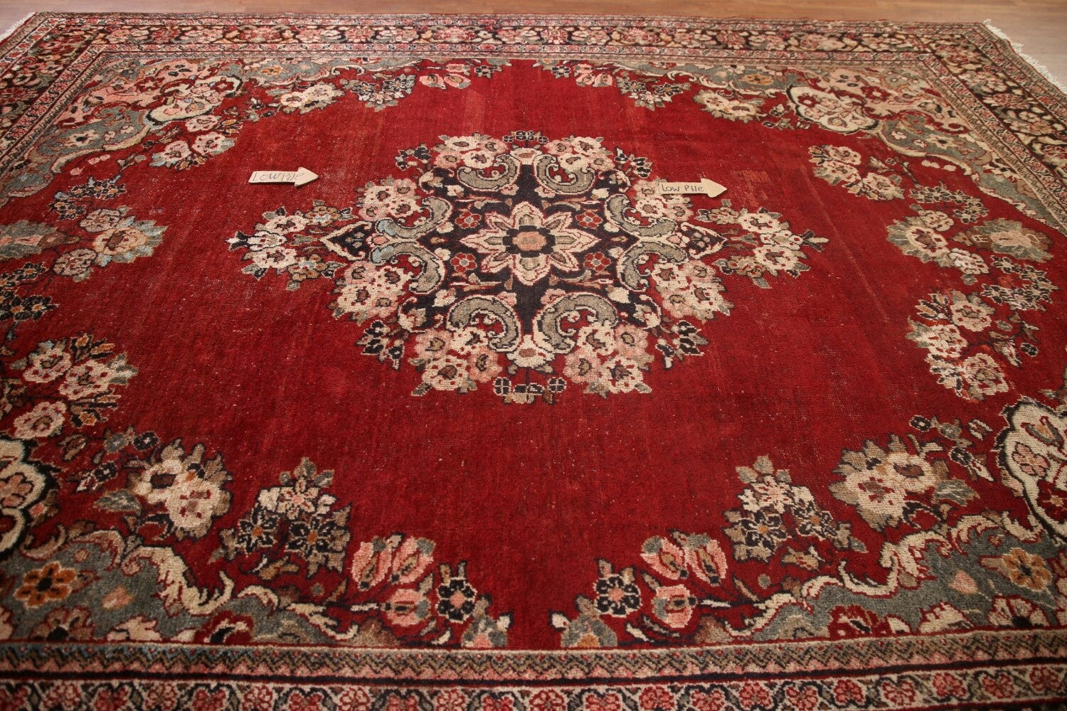 A Beautiful Genuine Persia ( Persia ) Mahal rug is Hand Knotted by skillful weavers in Persia ( Persia ) with 100% Wool Material. This rug is in Very Good (Low Pile) condition. dimensions are 12' 7'' X 9' 7'' in foot and 384 X 292 in centimeter. the primary color is Red.