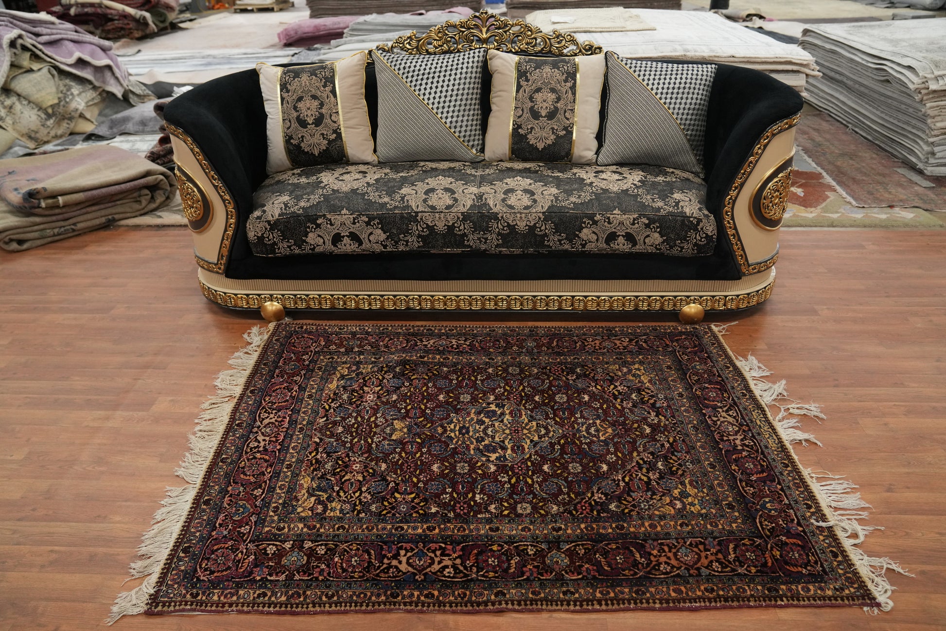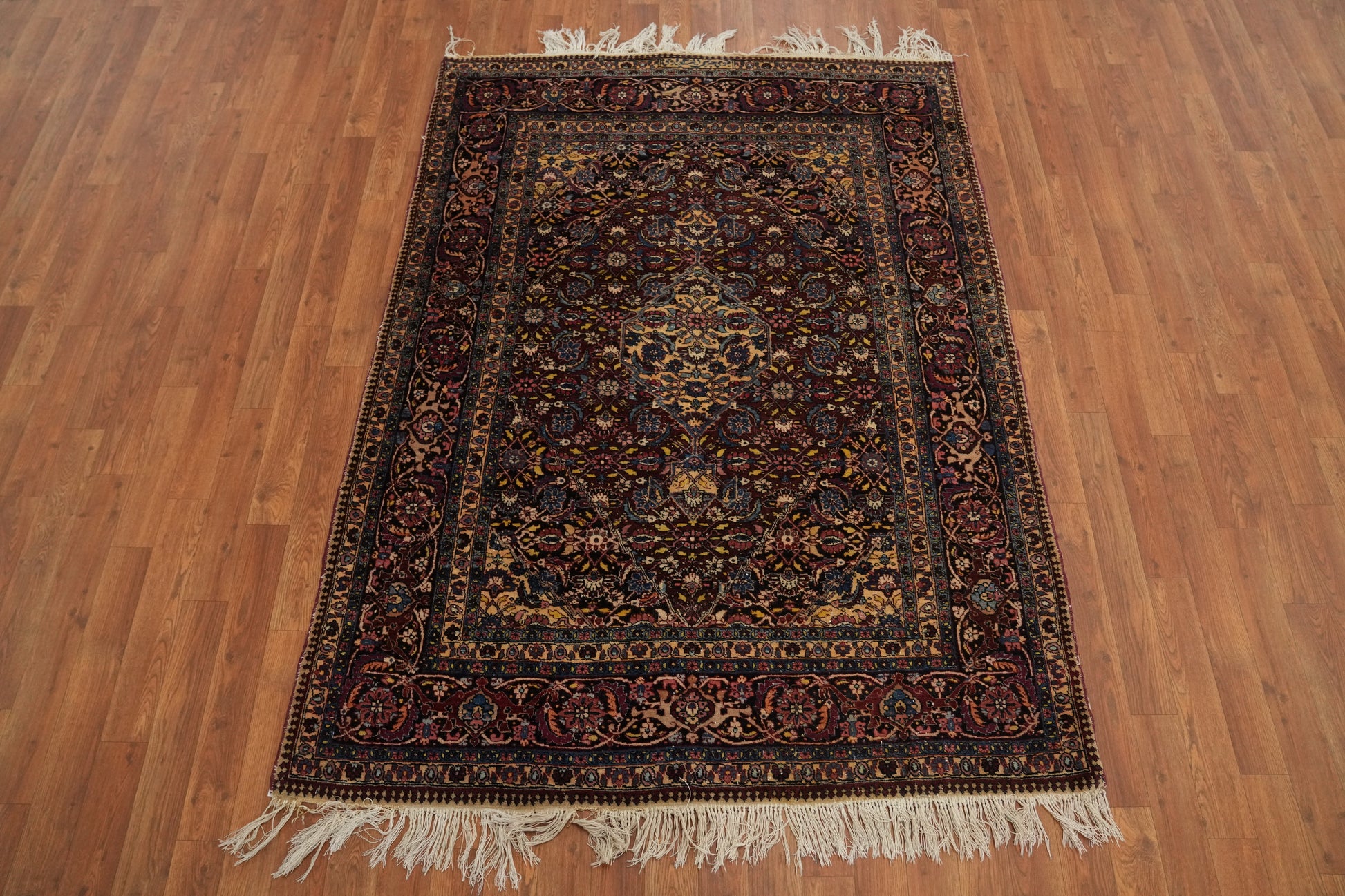 Antique Signed Mashad Vegetable Dye Persian Rug 4x6