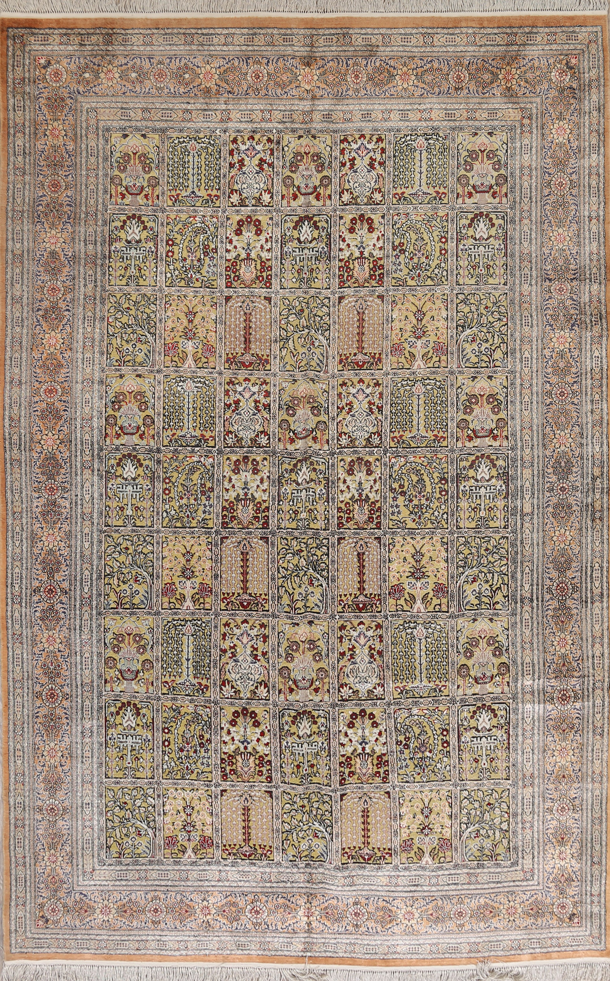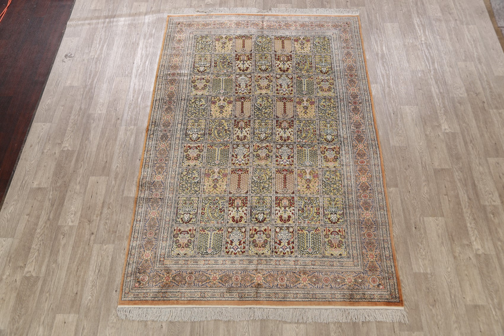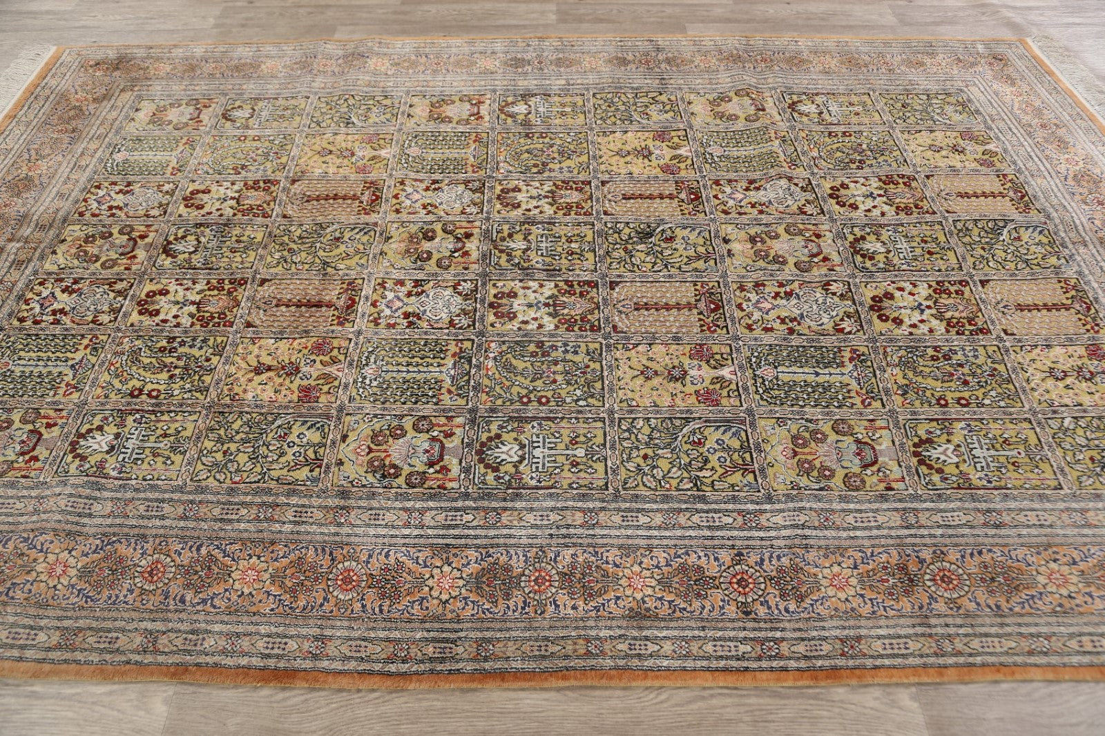 Antique Silk Garden Design Qum Persian Area Rug 6x9