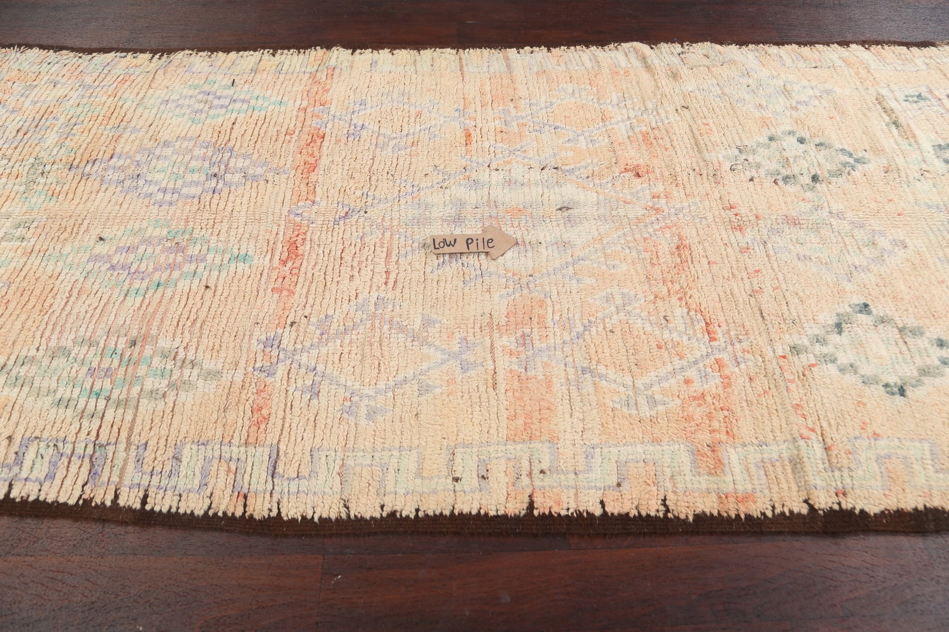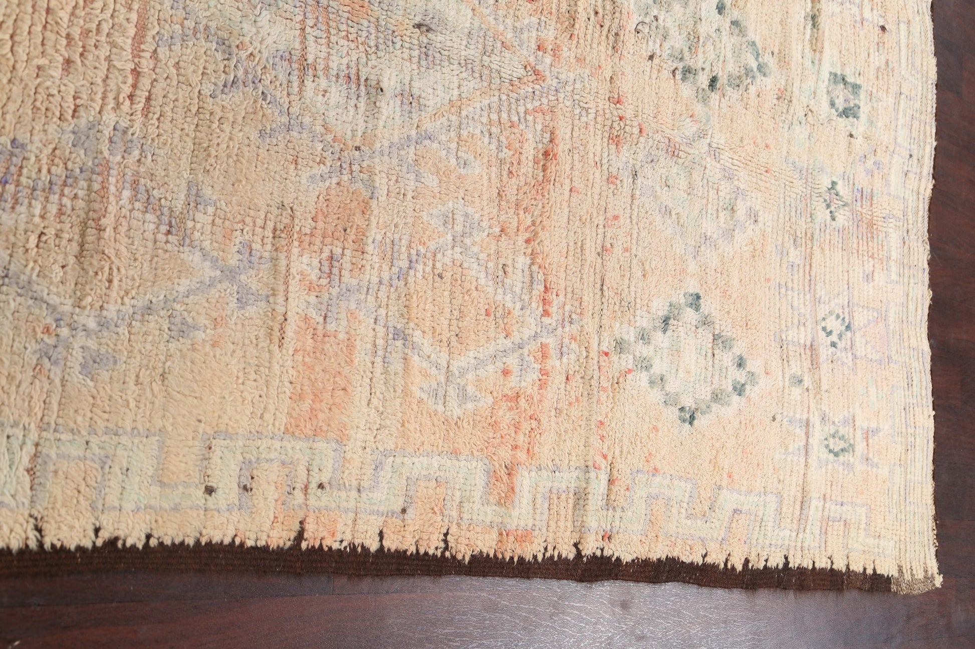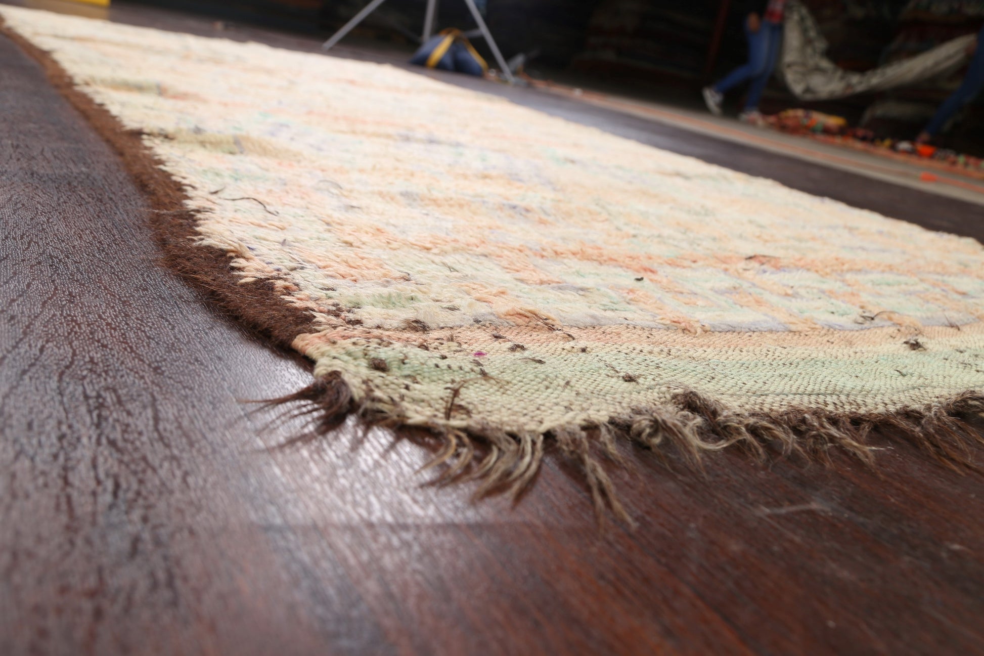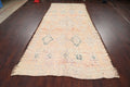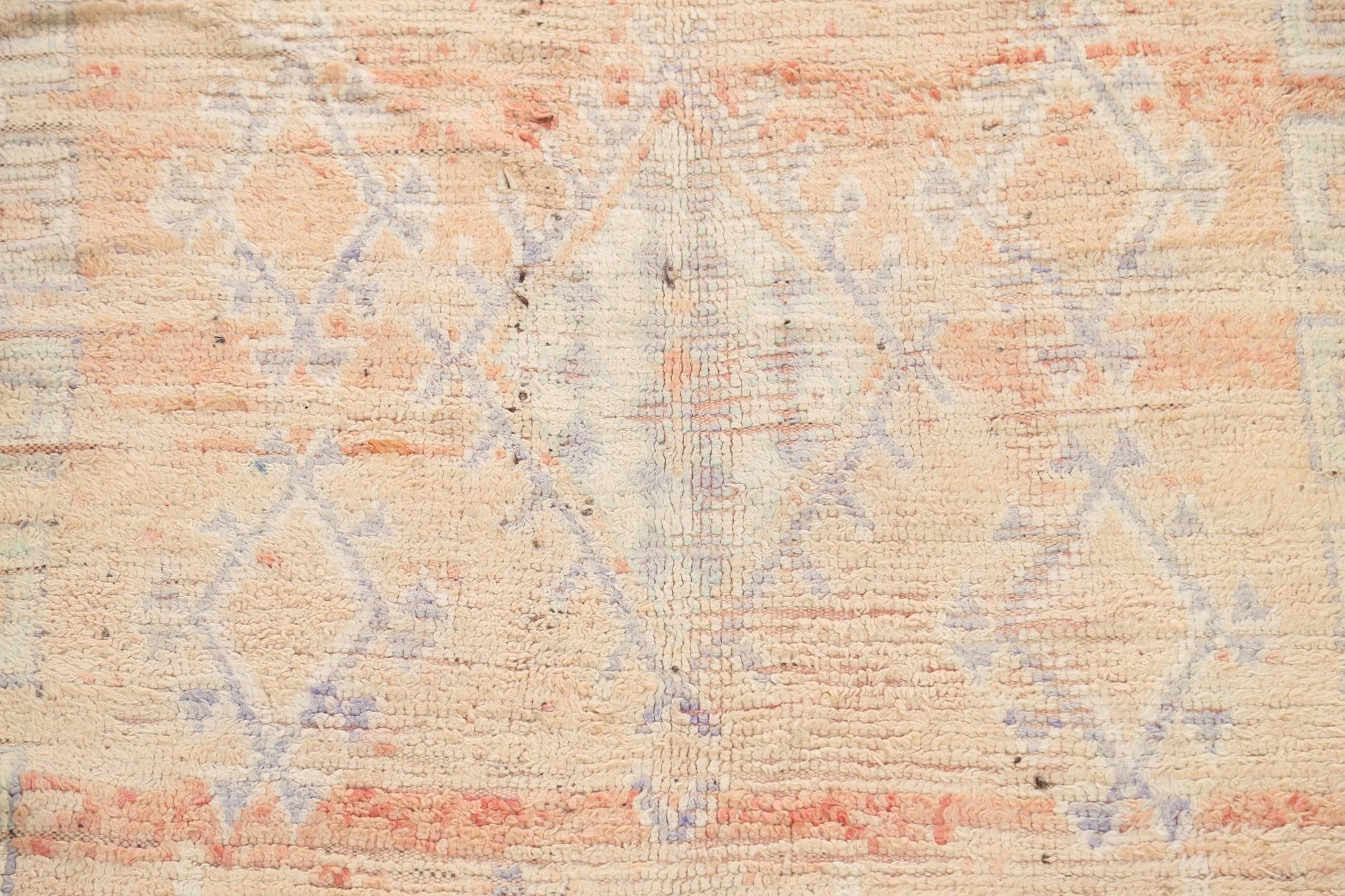 A Beautiful Genuine Morocco Moroccan rug is Hand Knotted by skillful weavers in Morocco with 100% Wool Material. This rug is in Very Good (Low Pile) condition. dimensions are 10' 9'' X 4' 9'' in foot and 328 X 145 in centimeter. the primary color is Peach.