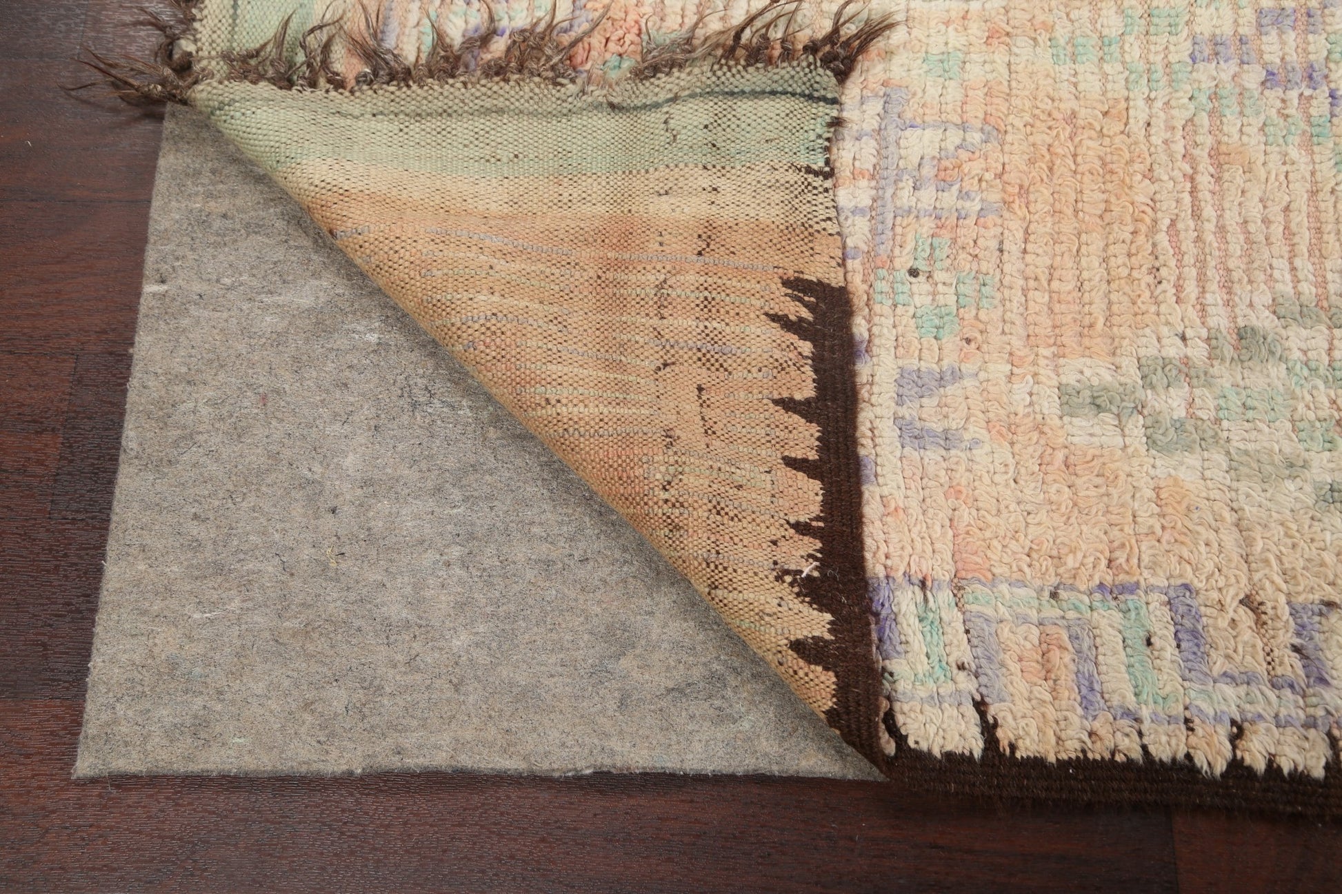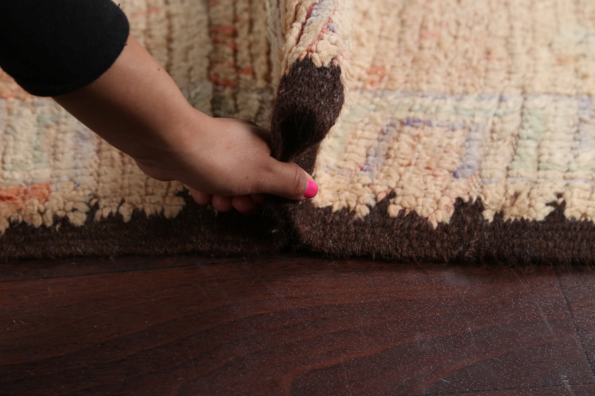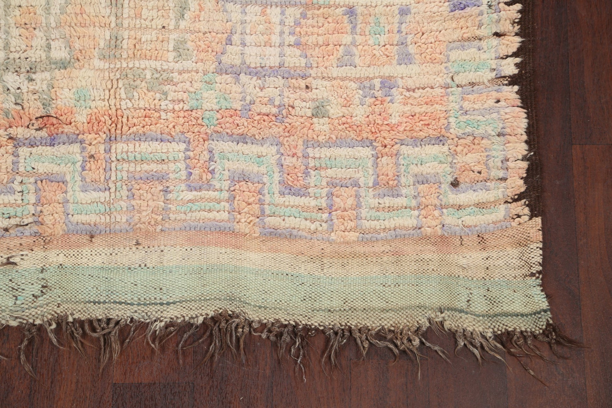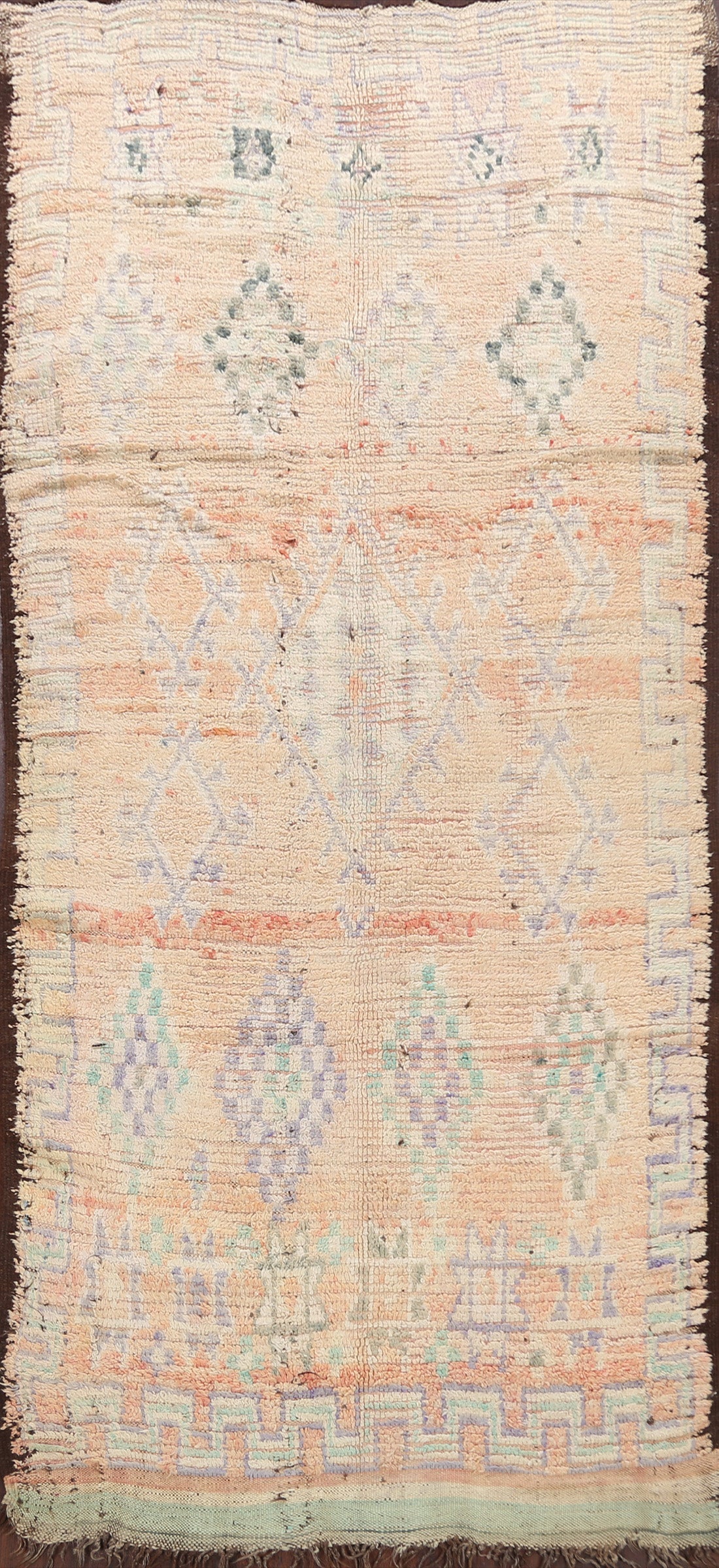 A Beautiful Genuine Morocco Moroccan rug is Hand Knotted by skillful weavers in Morocco with 100% Wool Material. This rug is in Very Good (Low Pile) condition. dimensions are 10' 9'' X 4' 9'' in foot and 328 X 145 in centimeter. the primary color is Peach.