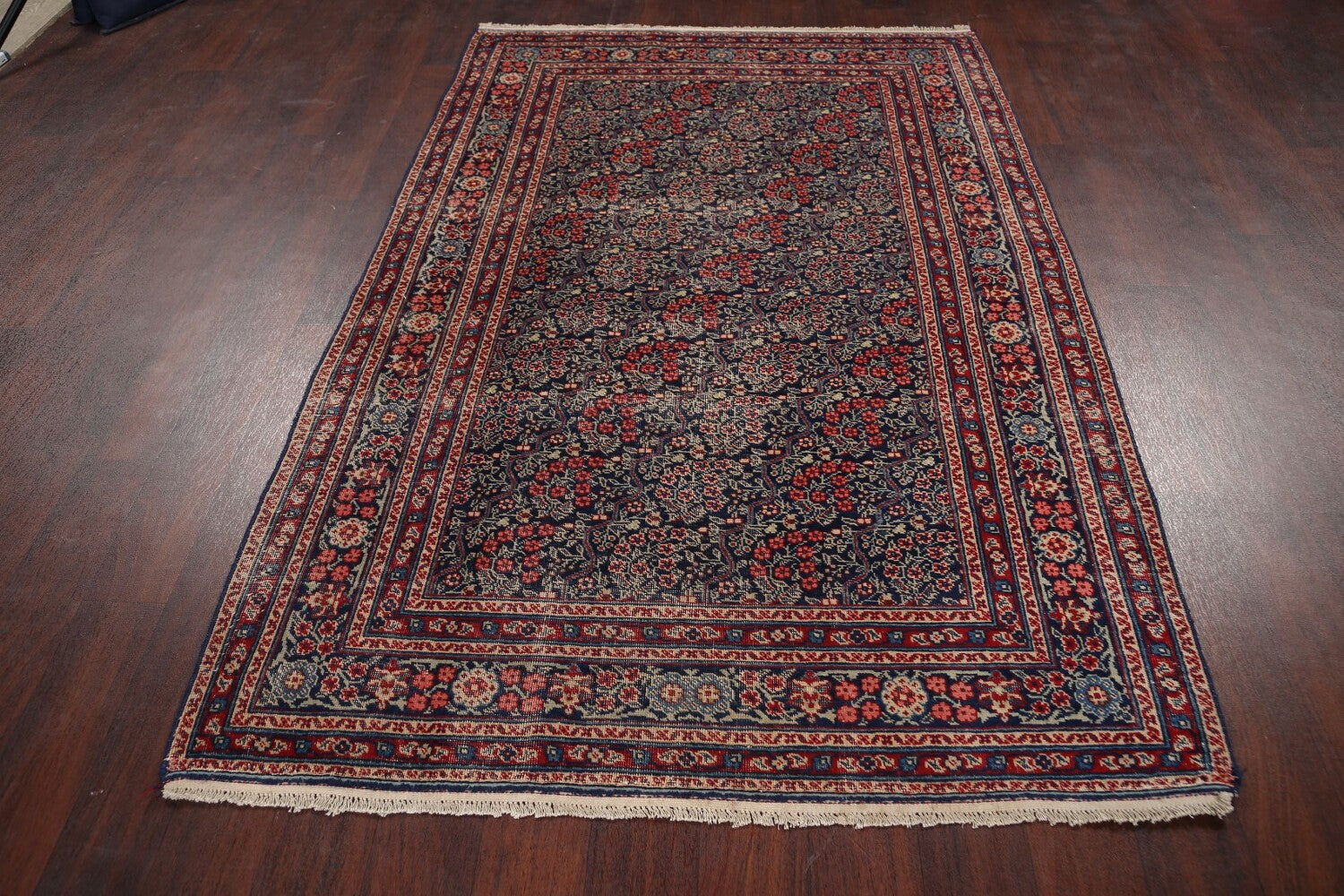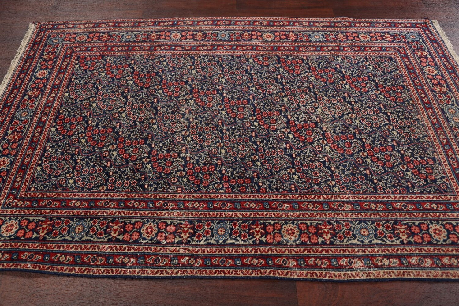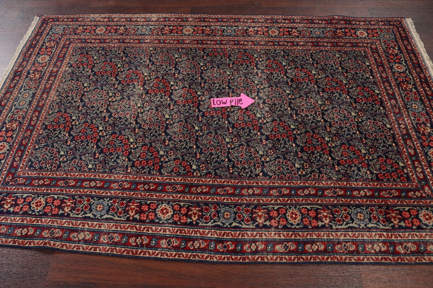 A Beautiful Genuine Persia ( Persia ) Tabriz rug is Hand Knotted by skillful weavers in Persia ( Persia ) with 100% Wool Material. This rug is in Very Good ( Low Pile ) condition. dimensions are 6' 7'' X 4' 4'' in foot and 201 X 132 in centimeter. the primary color is Navy Blue & Blues.