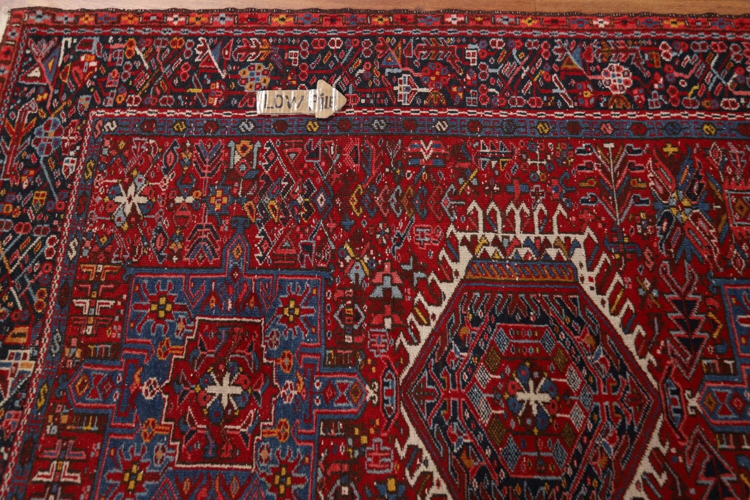 A Beautiful Genuine Persia ( Persia ) Gharajeh rug is Hand Knotted by skillful weavers in Persia ( Persia ) with 100% Wool Material. This rug is in Very Good ( Low Pile ) condition. dimensions are 6' 3'' X 5' 0'' in foot and 191 X 152 in centimeter. the primary color is Red.