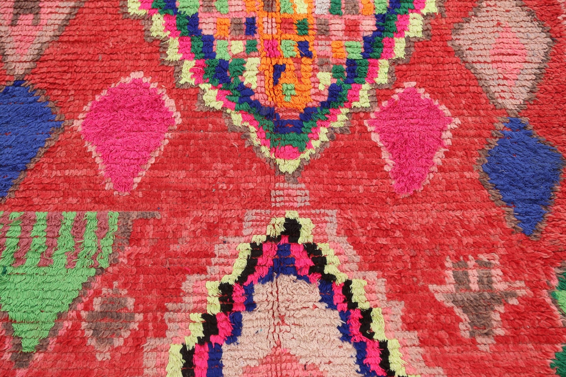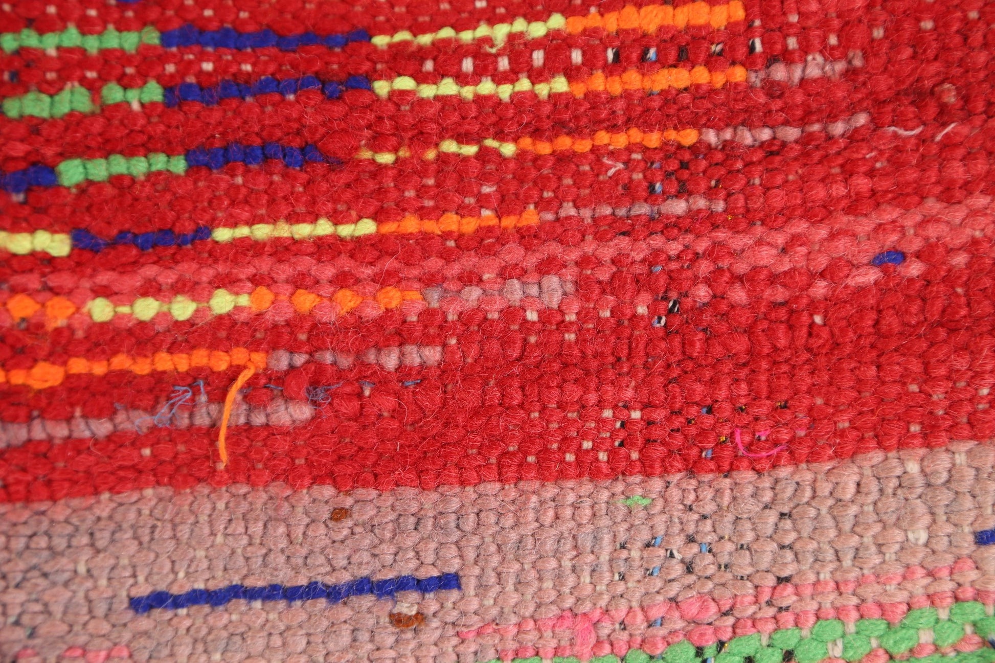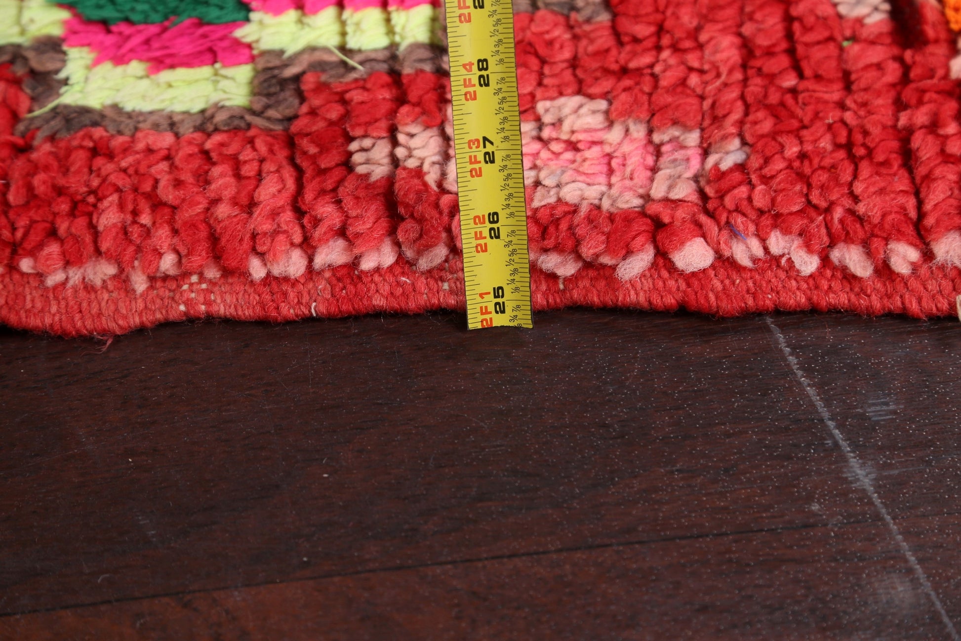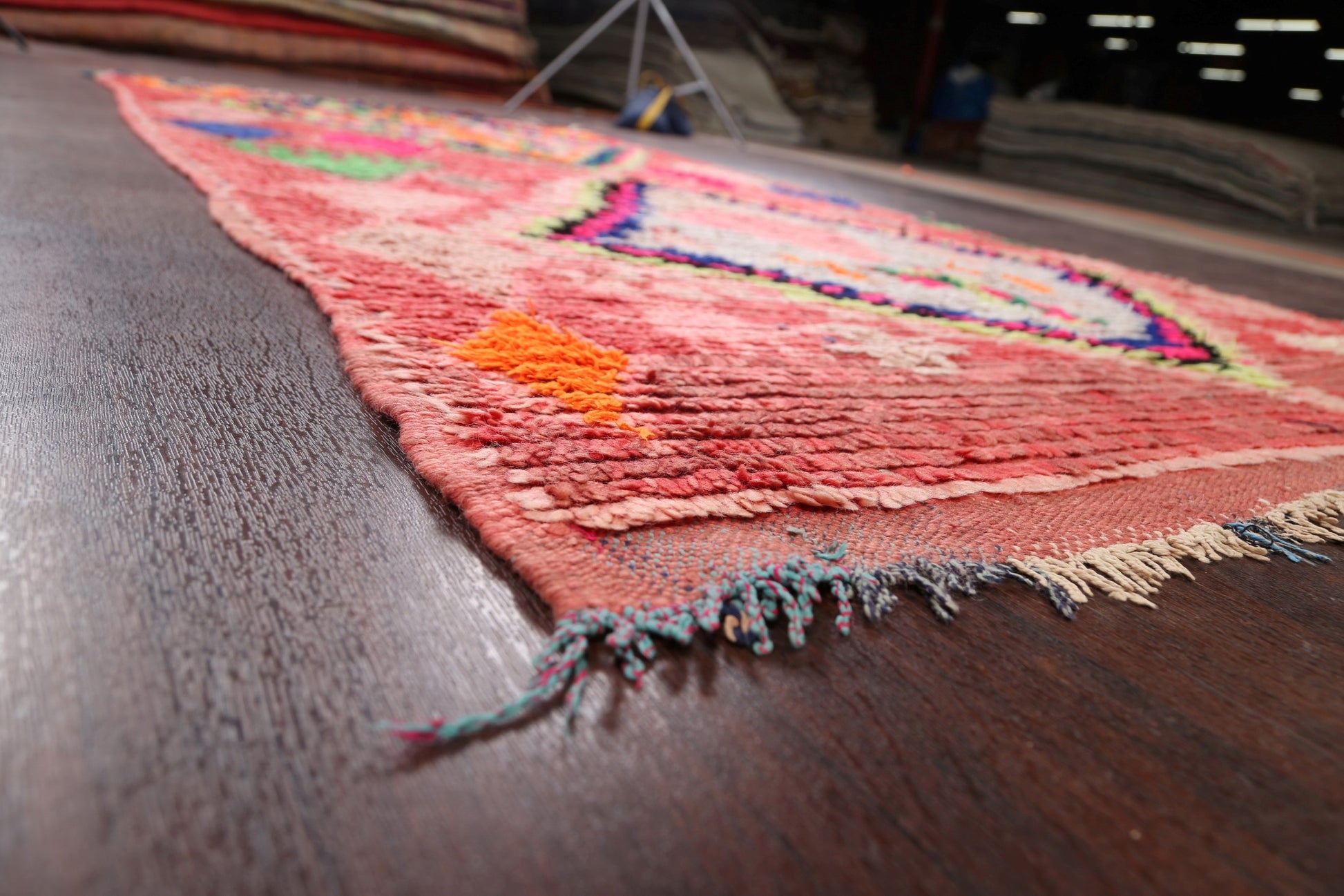 A Beautiful Genuine Morocco Moroccan rug is Hand Knotted by skillful weavers in Morocco with 100% Wool Material. This rug is in Very Good ( Low Pile ) condition. dimensions are 9' 6'' X 4' 7'' in foot and 290 X 140 in centimeter. the primary color is Coral.