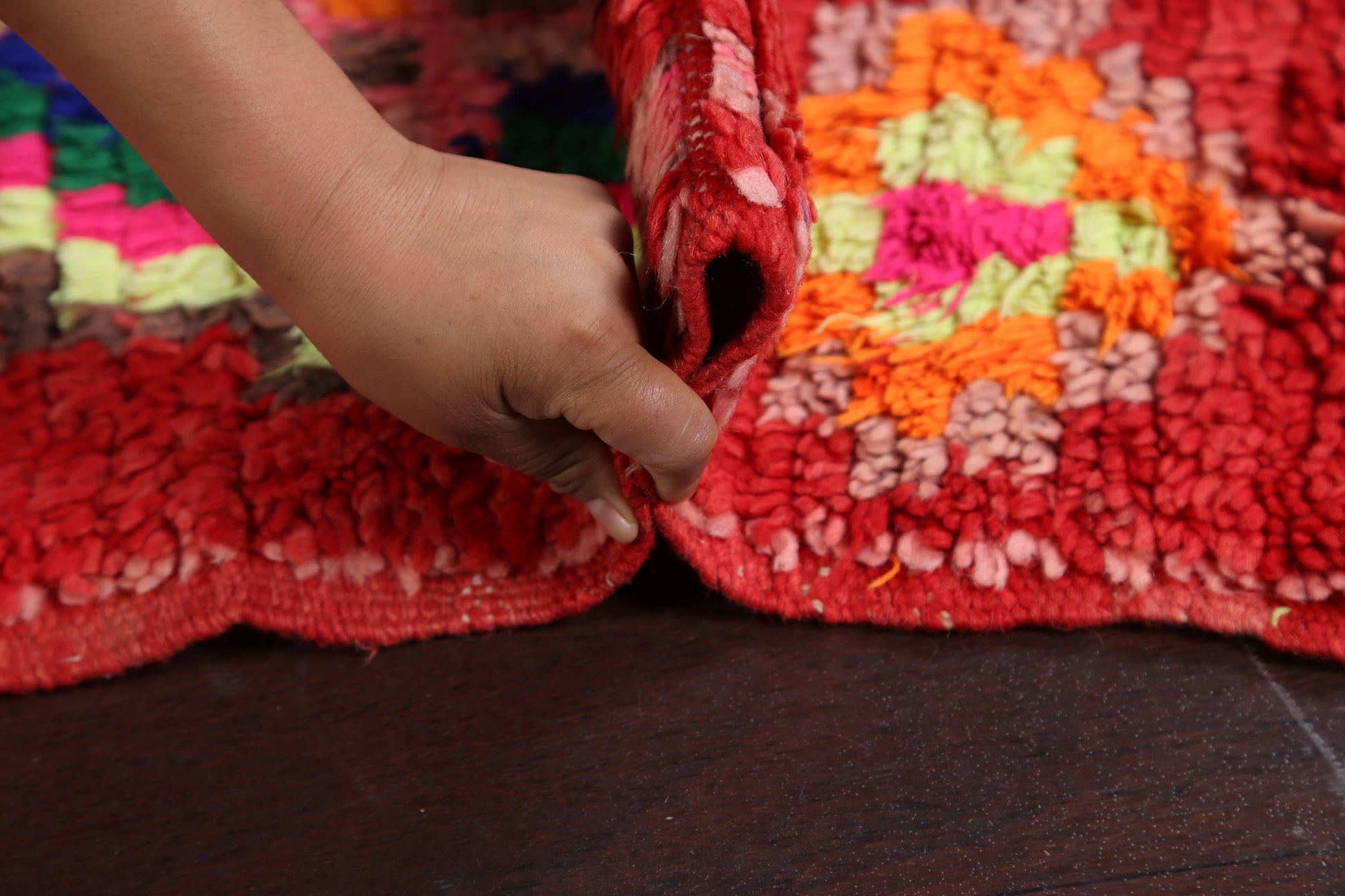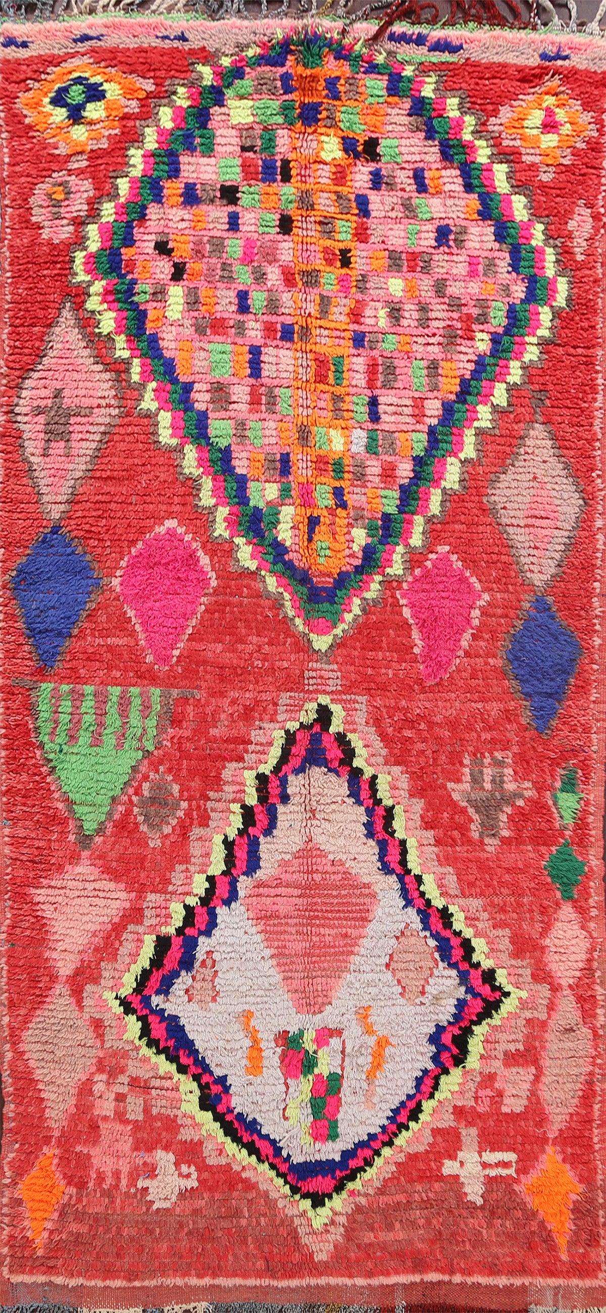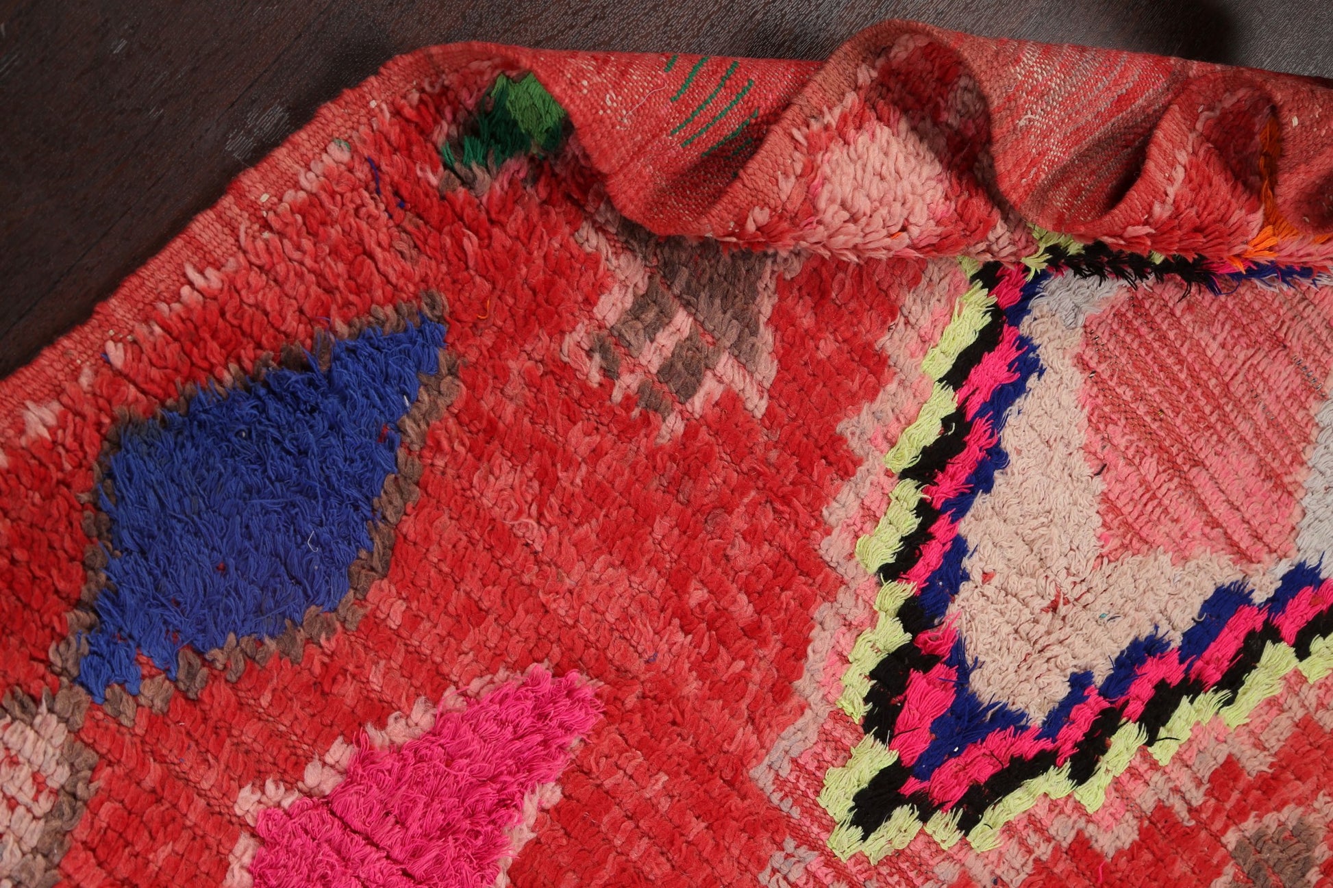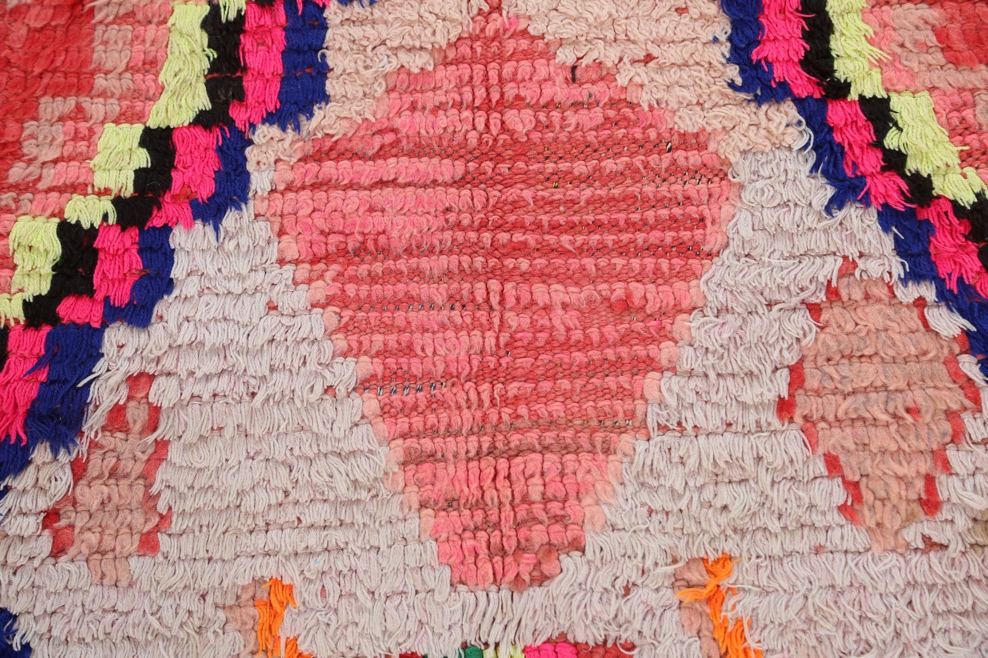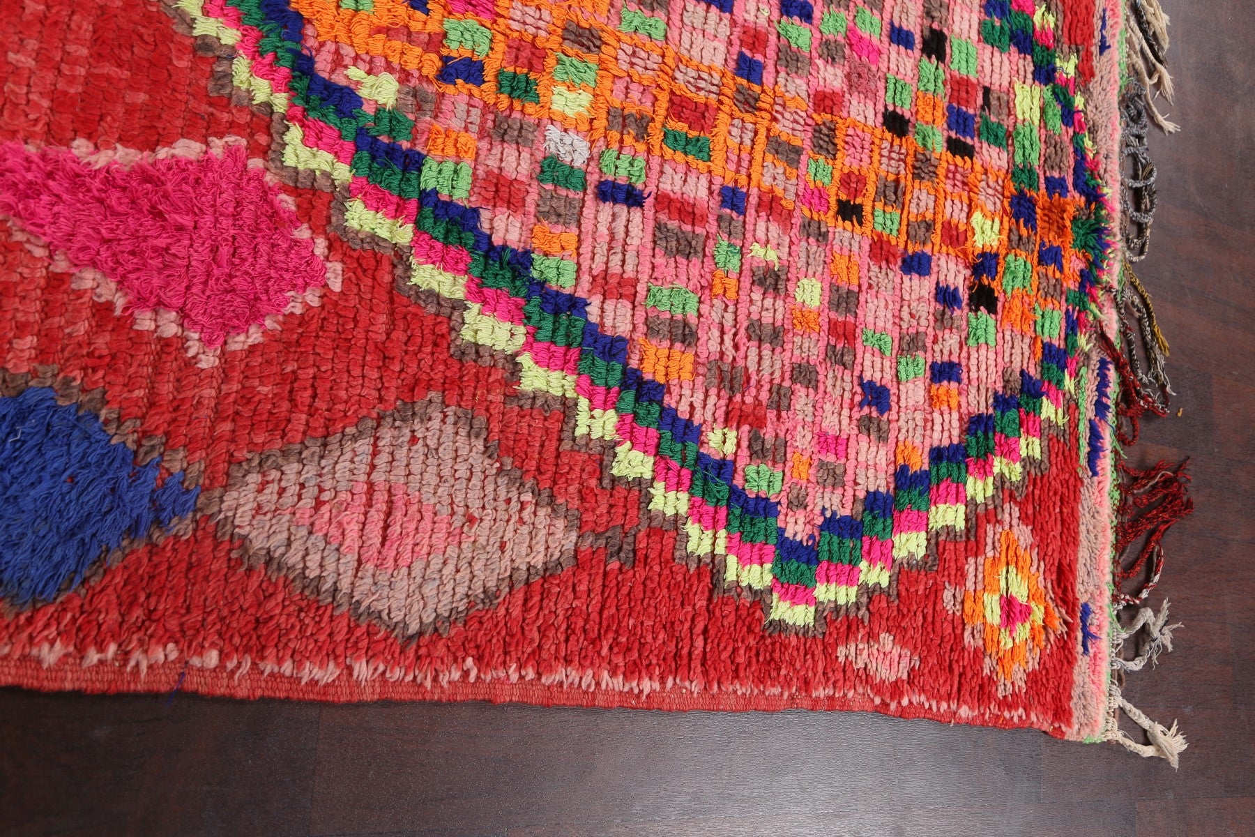 A Beautiful Genuine Morocco Moroccan rug is Hand Knotted by skillful weavers in Morocco with 100% Wool Material. This rug is in Very Good ( Low Pile ) condition. dimensions are 9' 6'' X 4' 7'' in foot and 290 X 140 in centimeter. the primary color is Coral.