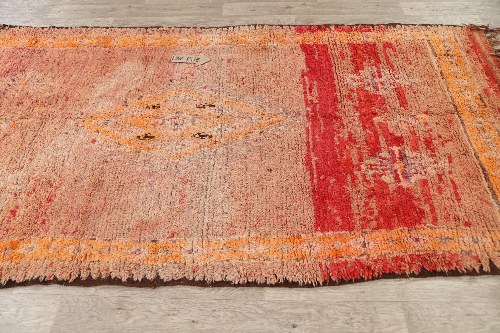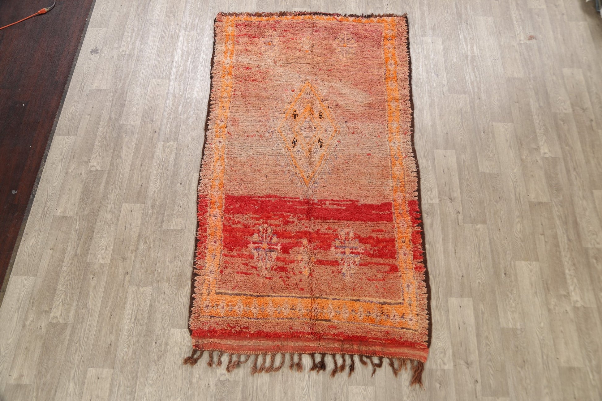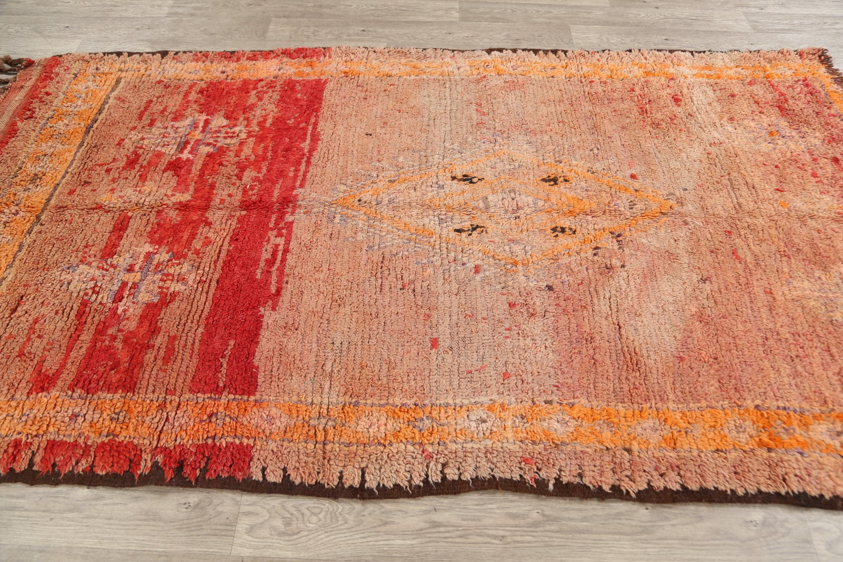 A Beautiful Genuine Morocco Moroccan rug is Hand Knotted by skillful weavers in Morocco with 100% Wool Material. This rug is in Very Good (Low Pile-Abrash) condition. dimensions are 8' 4'' X 4' 7'' in foot and 254 X 140 in centimeter. the primary color is Multi-Colored.
