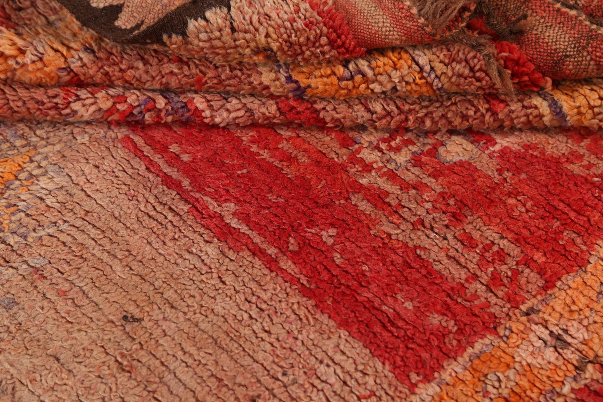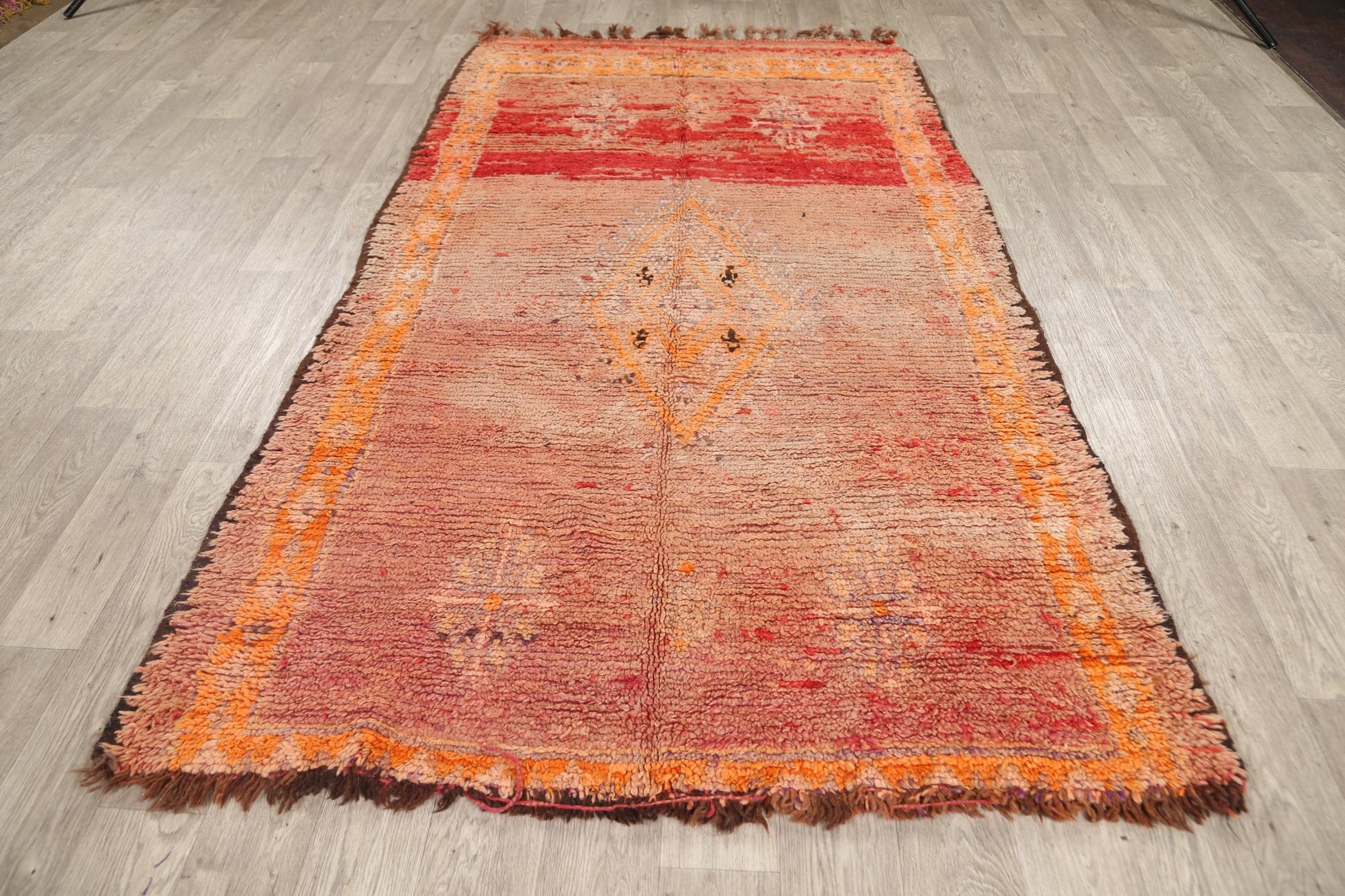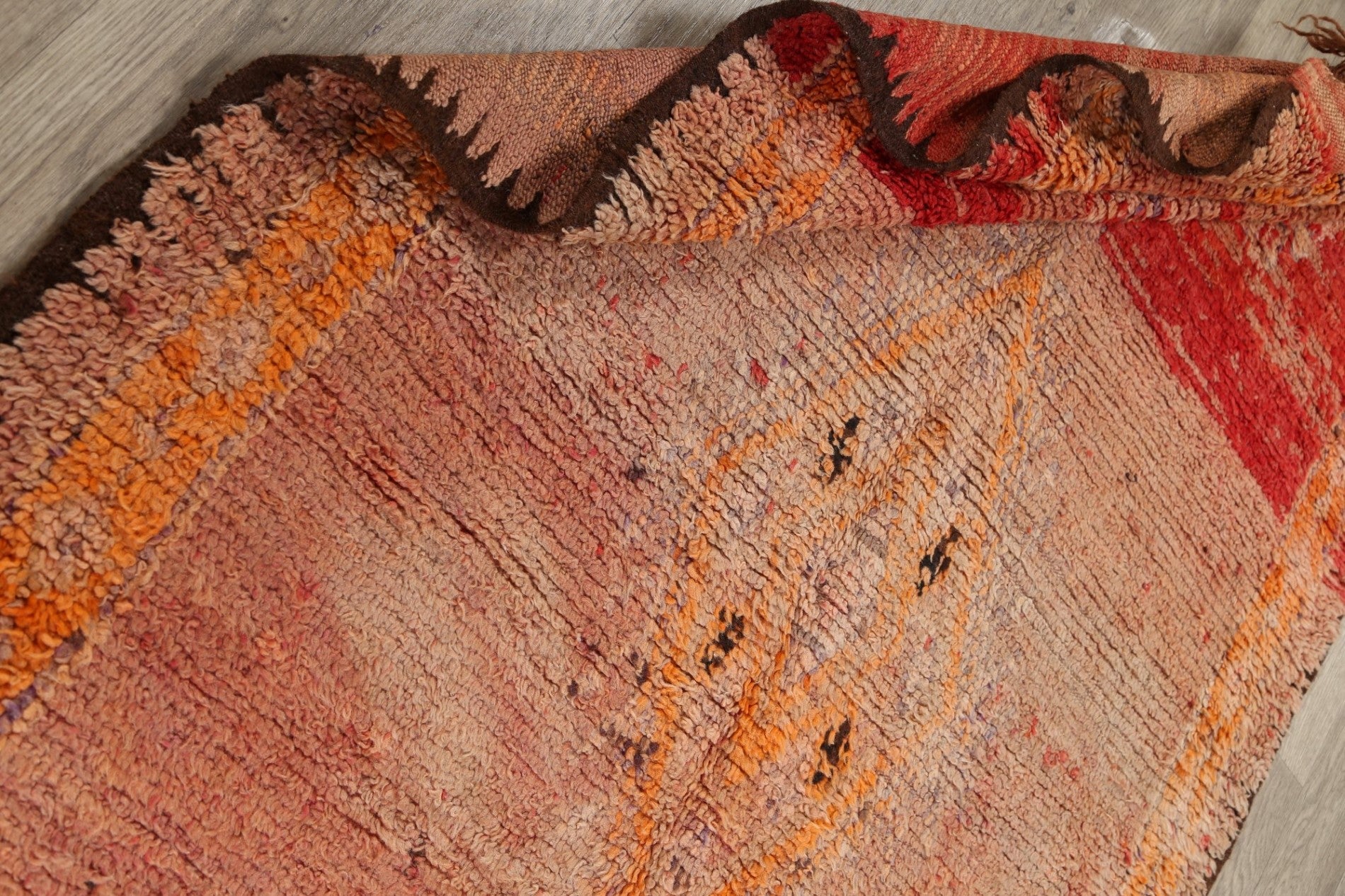 A Beautiful Genuine Morocco Moroccan rug is Hand Knotted by skillful weavers in Morocco with 100% Wool Material. This rug is in Very Good (Low Pile-Abrash) condition. dimensions are 8' 4'' X 4' 7'' in foot and 254 X 140 in centimeter. the primary color is Multi-Colored.