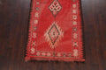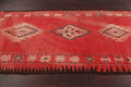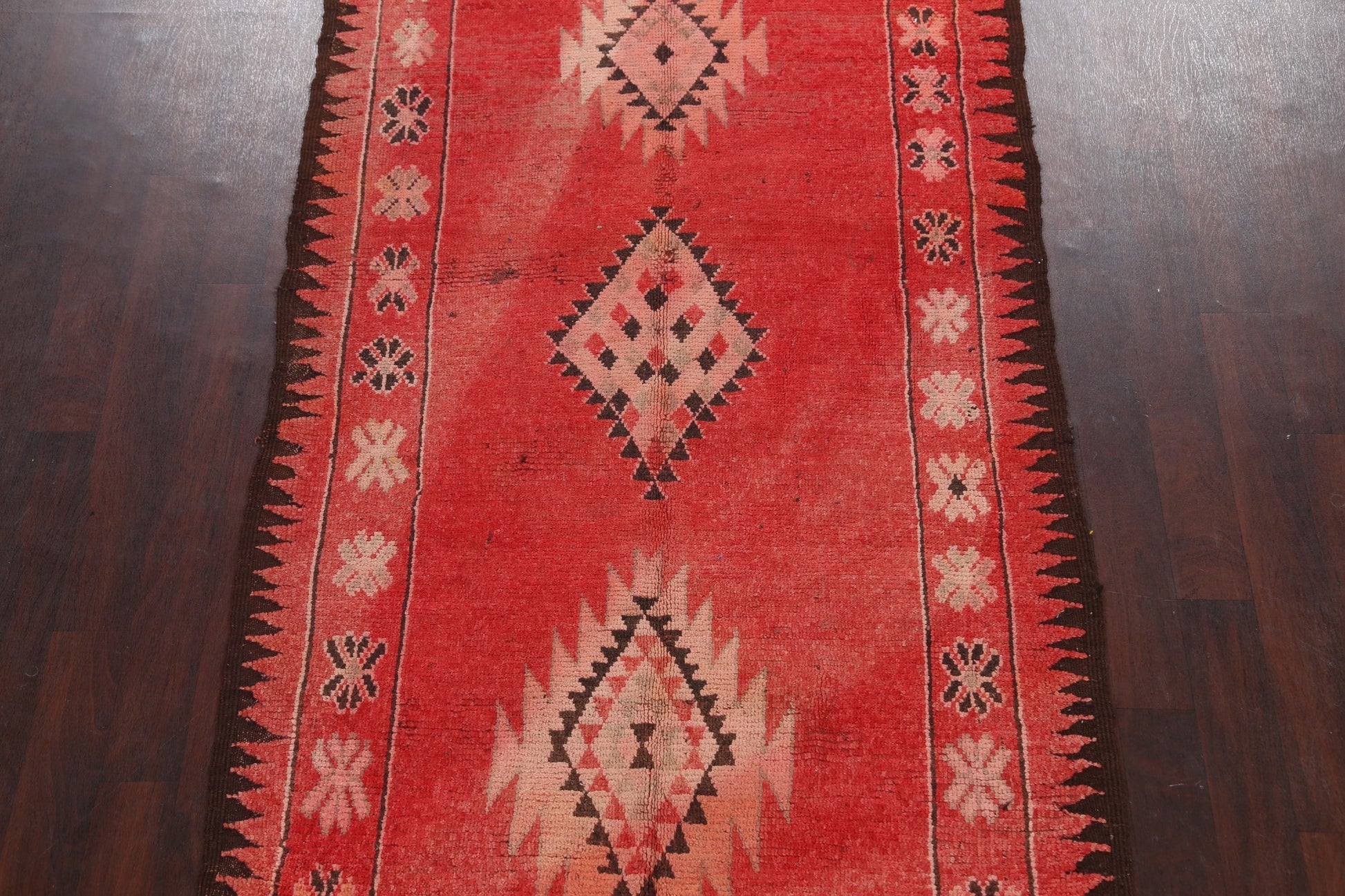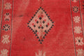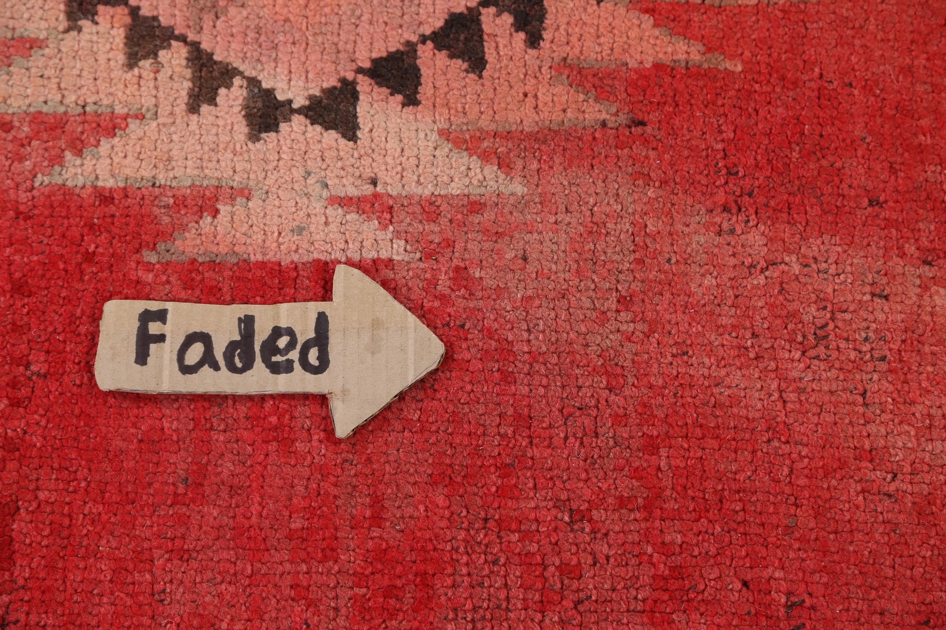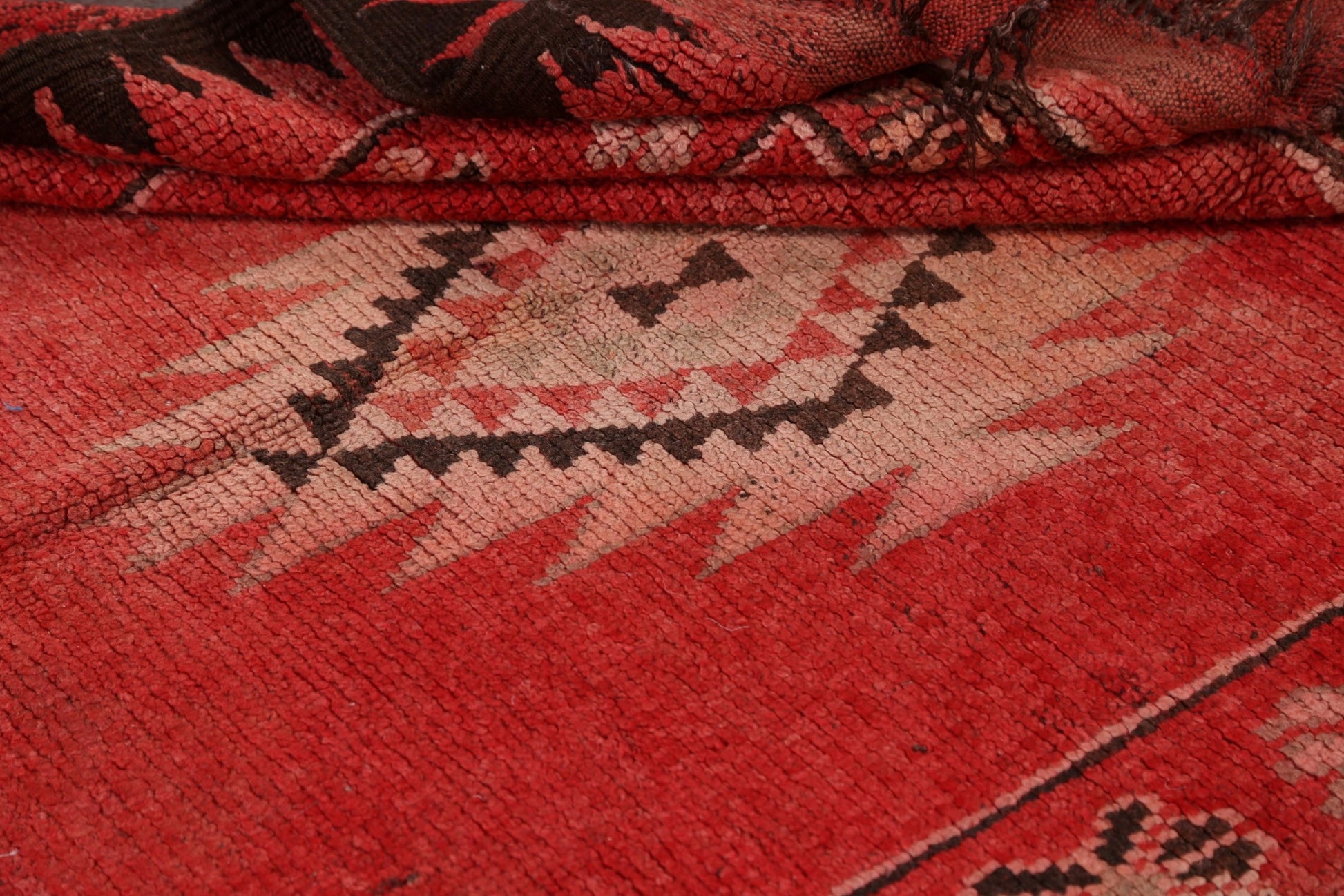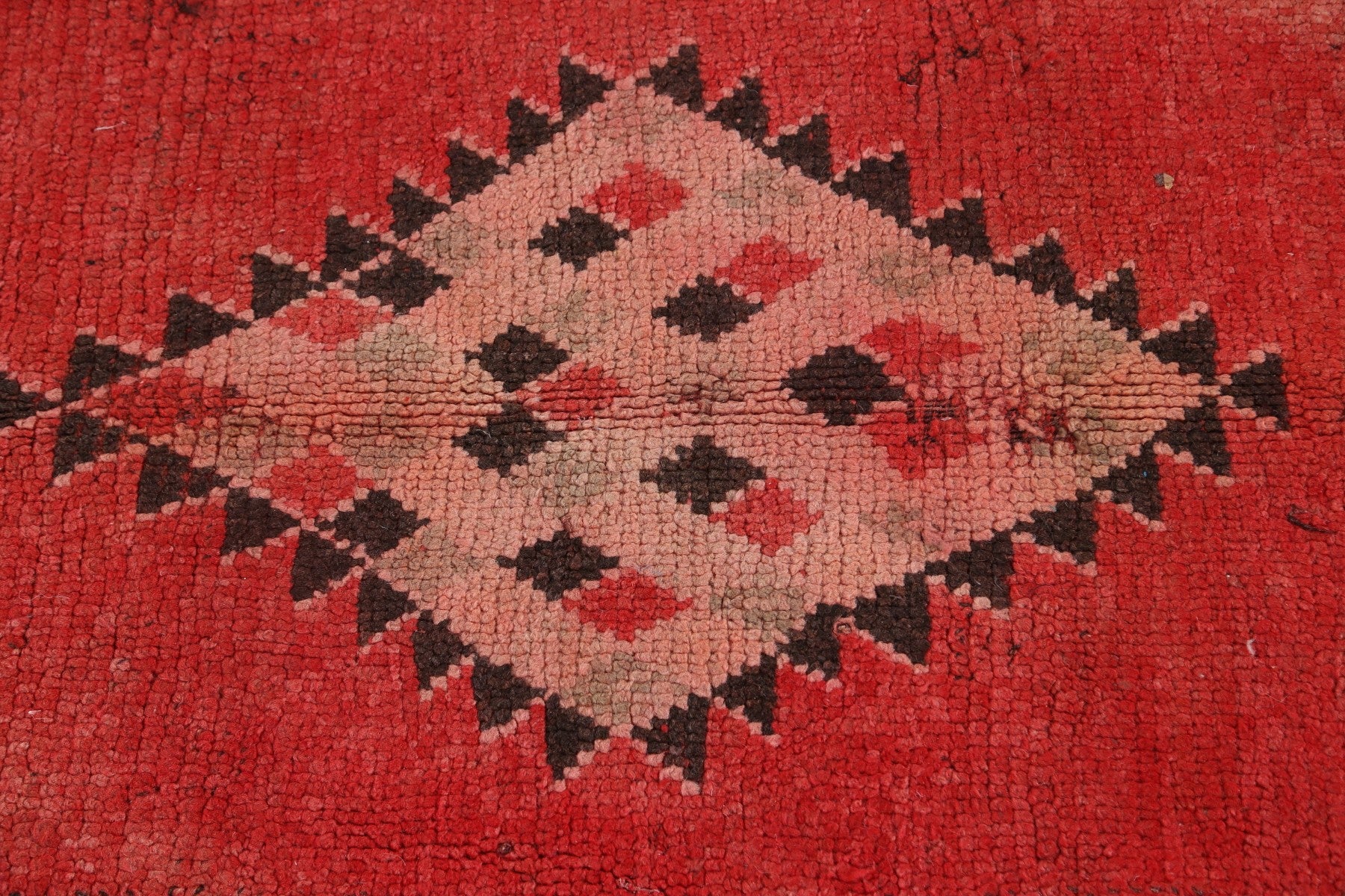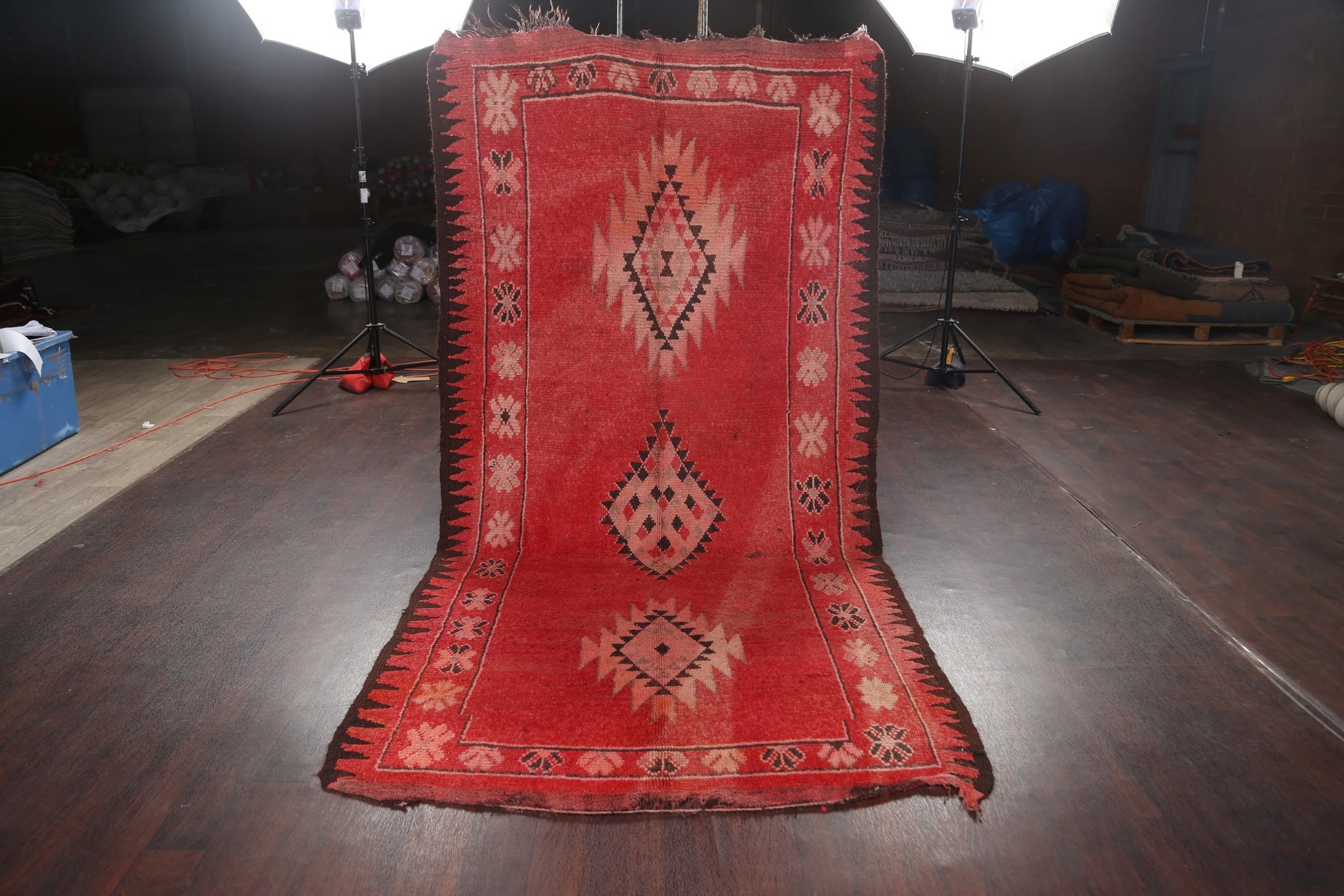 A Beautiful Genuine Morocco Moroccan rug is Hand Knotted by skillful weavers in Morocco with 100% Wool Material. This rug is in Very Good (Low Pile-Faded Color) condition. dimensions are 8' 11'' X 4' 9'' in foot and 272 X 145 in centimeter. the primary color is Red.