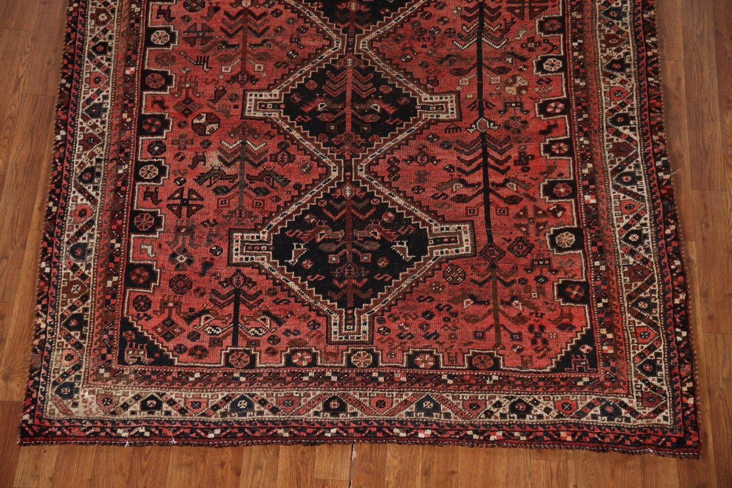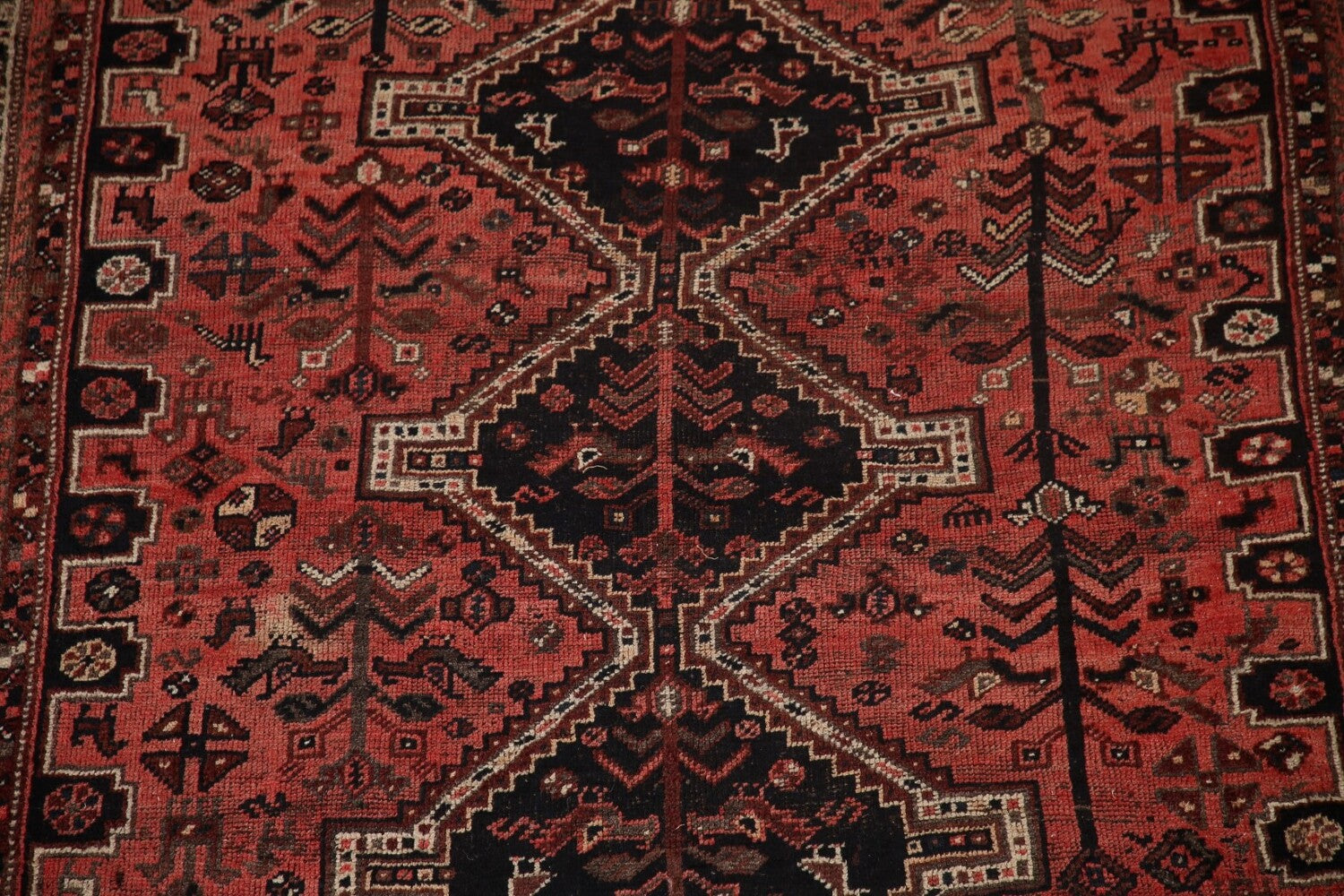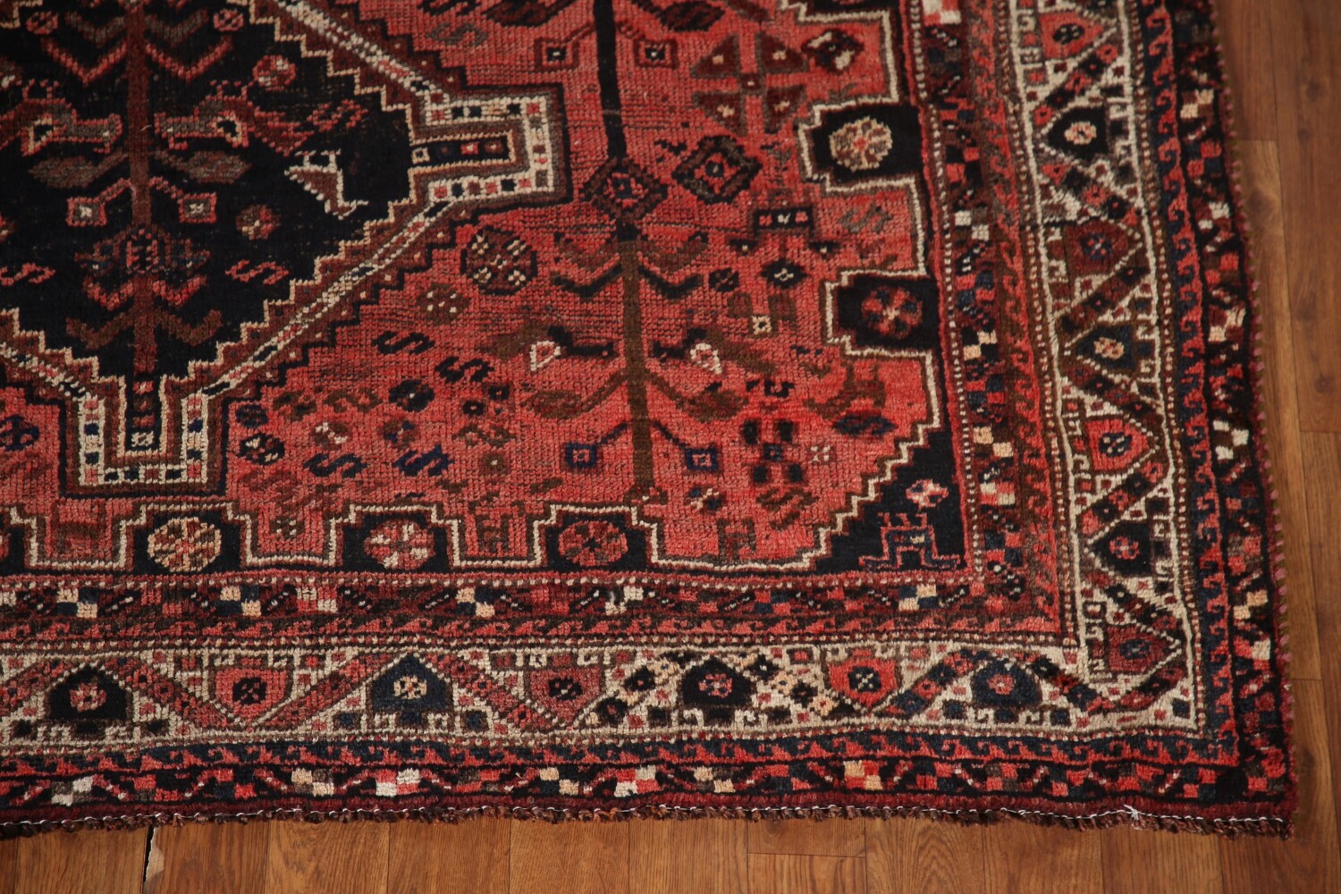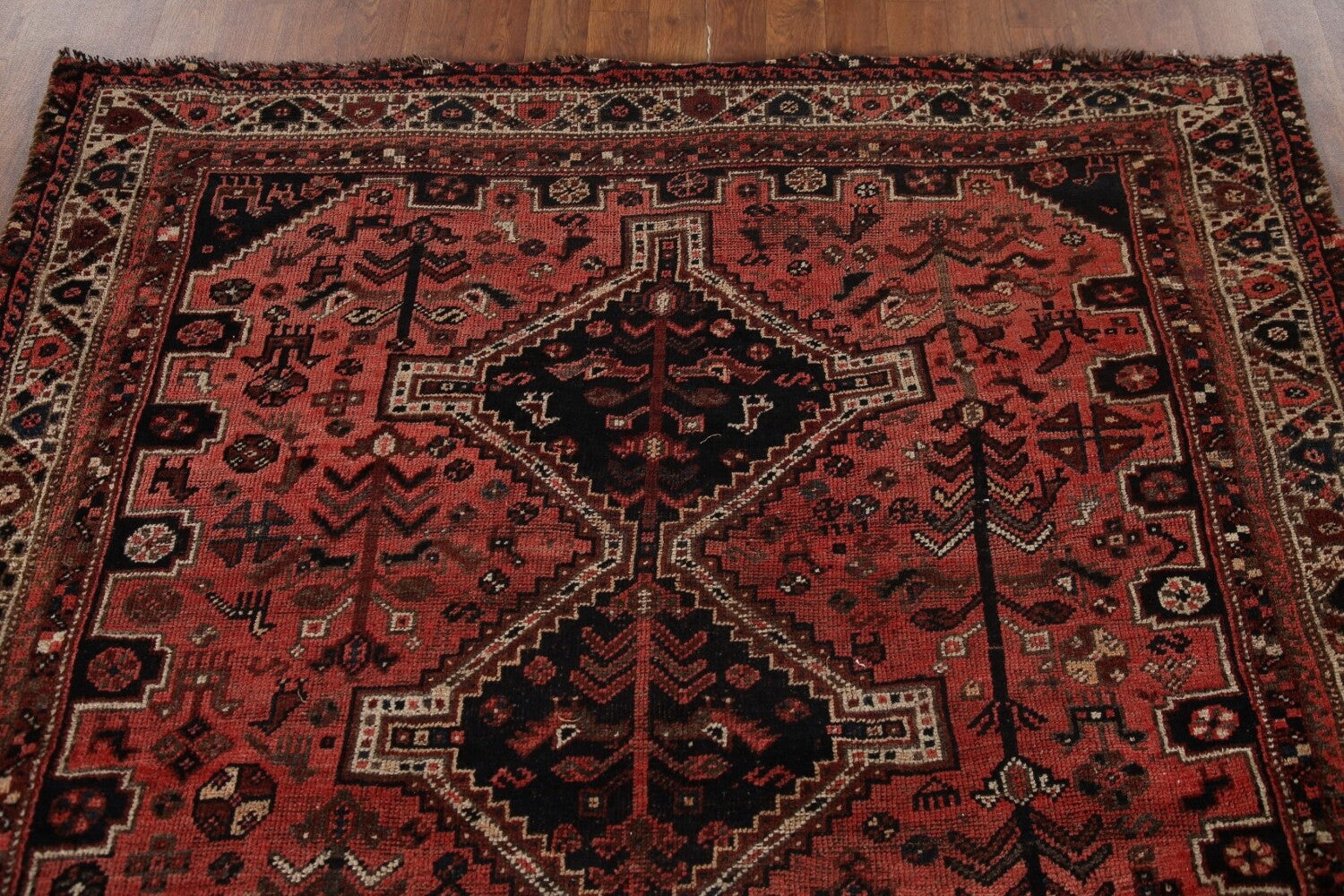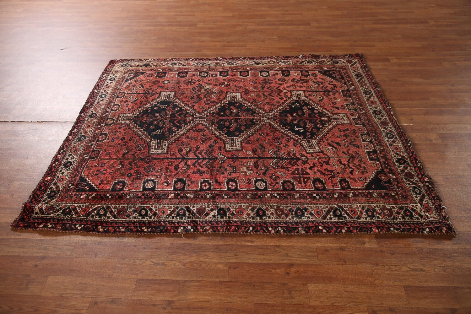 A Beautiful Genuine Persia ( Persia ) Qashqai rug is Hand Knotted by skillful weavers in Persia ( Persia ) with 100% Wool Material. This rug is in Very Good(Evenly Low Pile) condition. dimensions are 6' 2'' X 5' 3'' in foot and 188 X 160 in centimeter. the primary color is Pink.