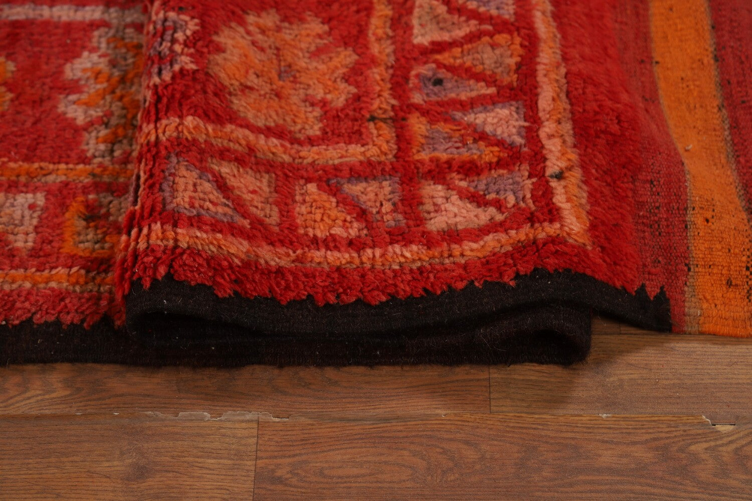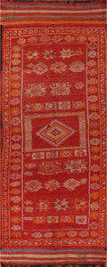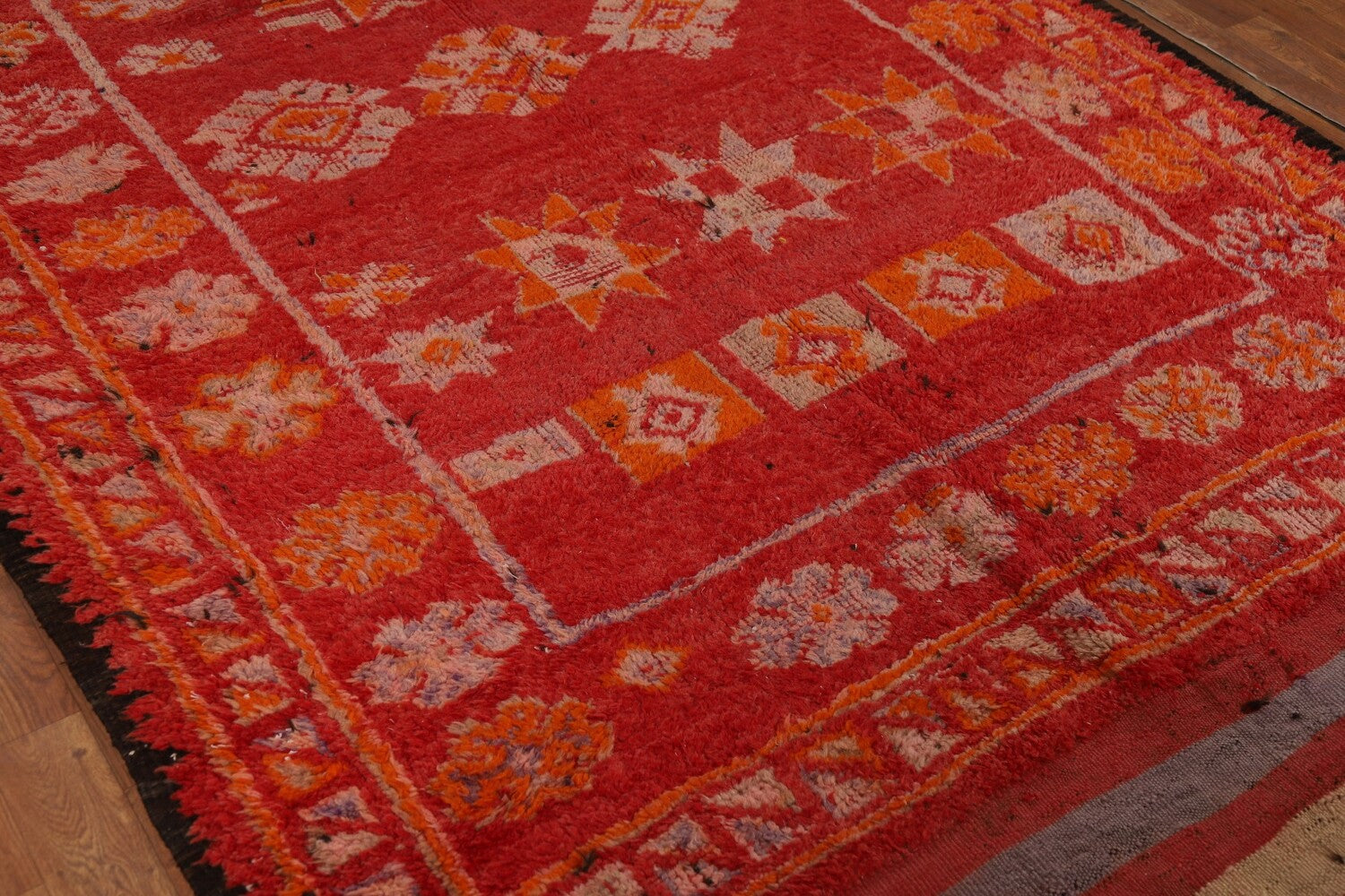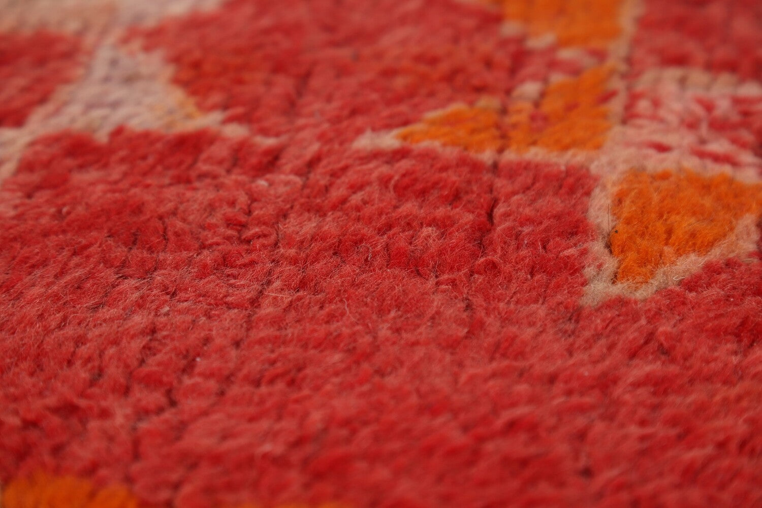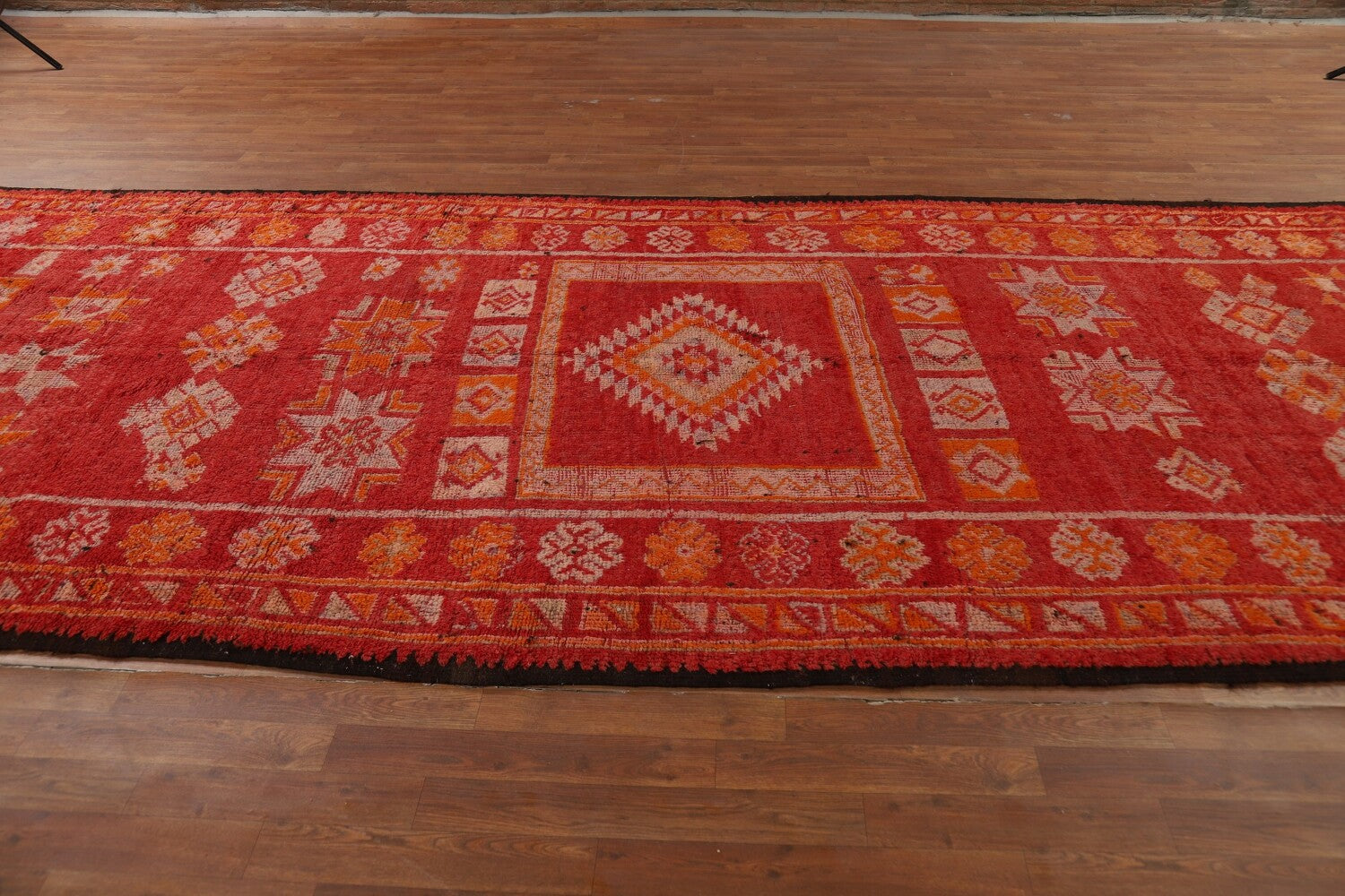 A Beautiful Genuine Morocco Moroccan rug is Hand Knotted by skillful weavers in Morocco with 100% Wool Material. This rug is in Very Good (Low Pile-Abrash) condition. dimensions are 17' 8'' X 5' 11'' in foot and 538 X 180 in centimeter. the primary color is Red.