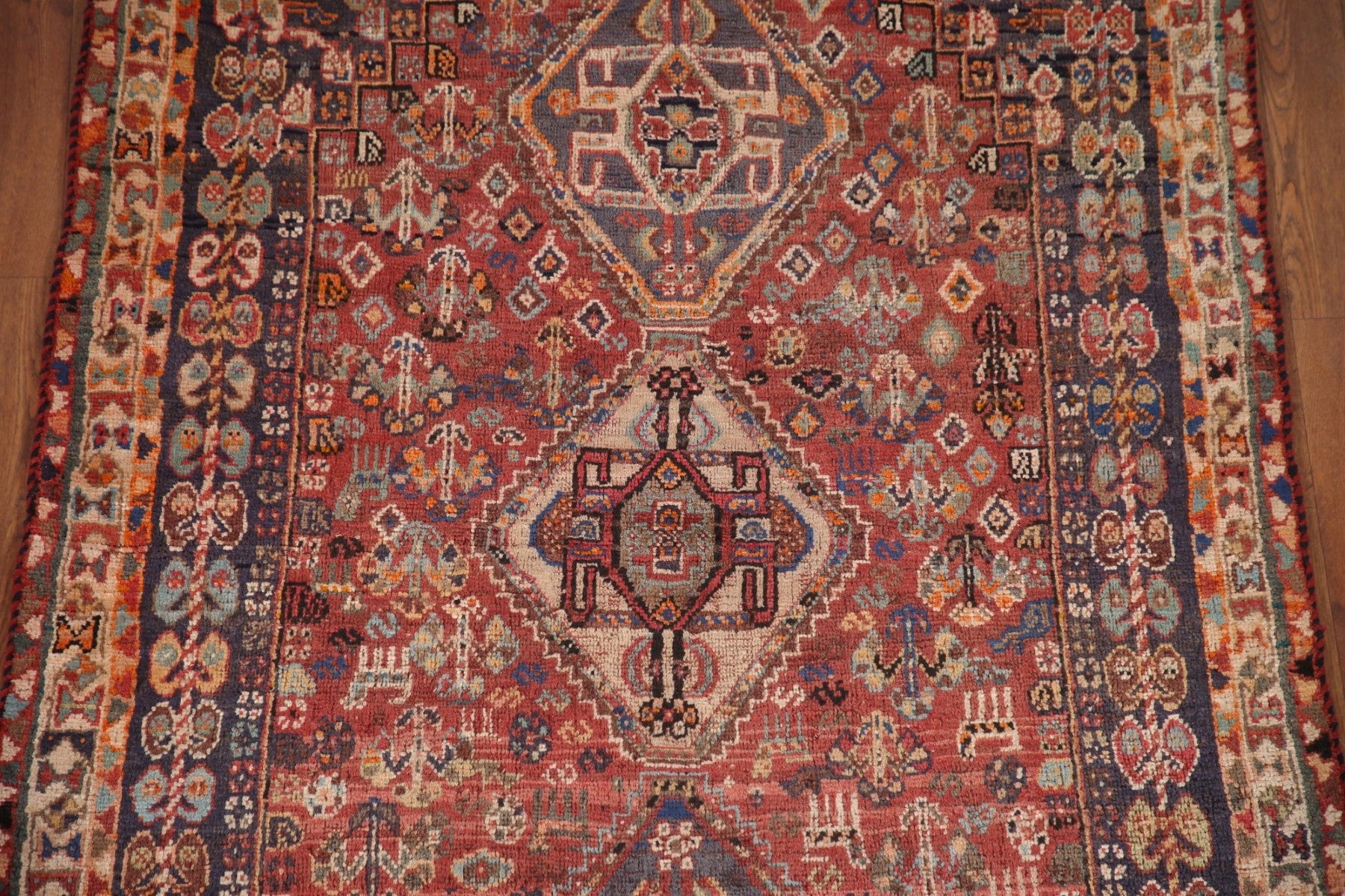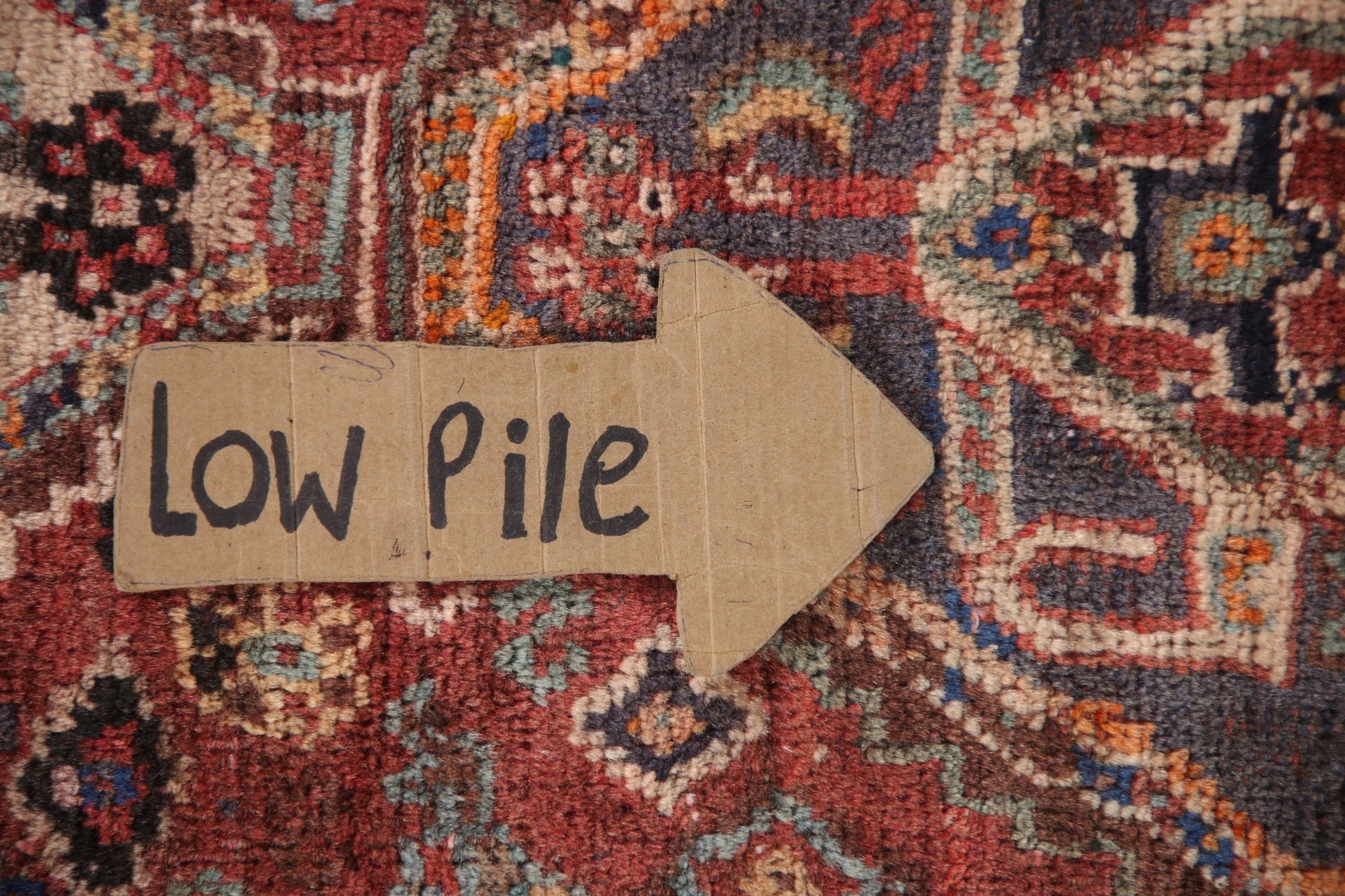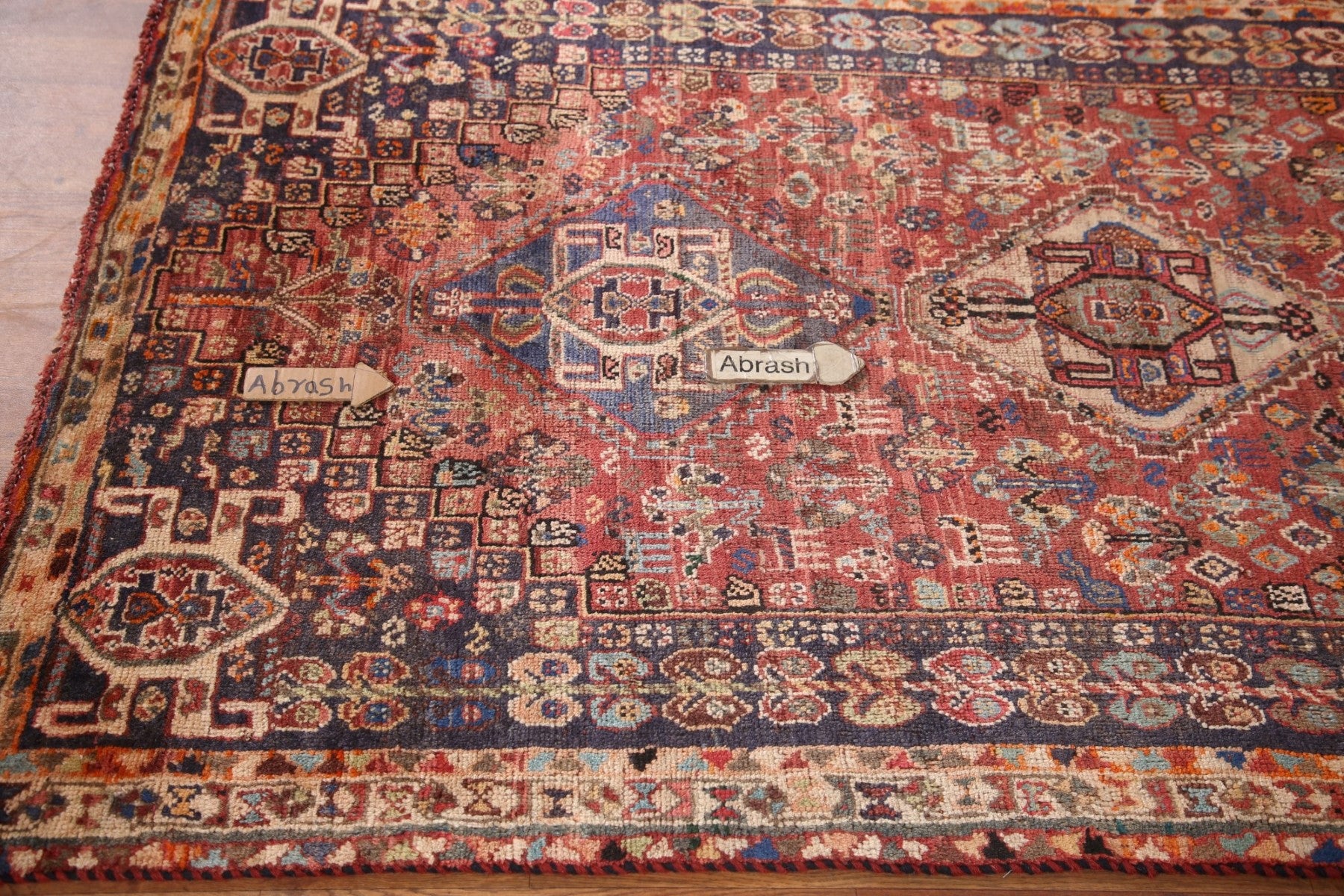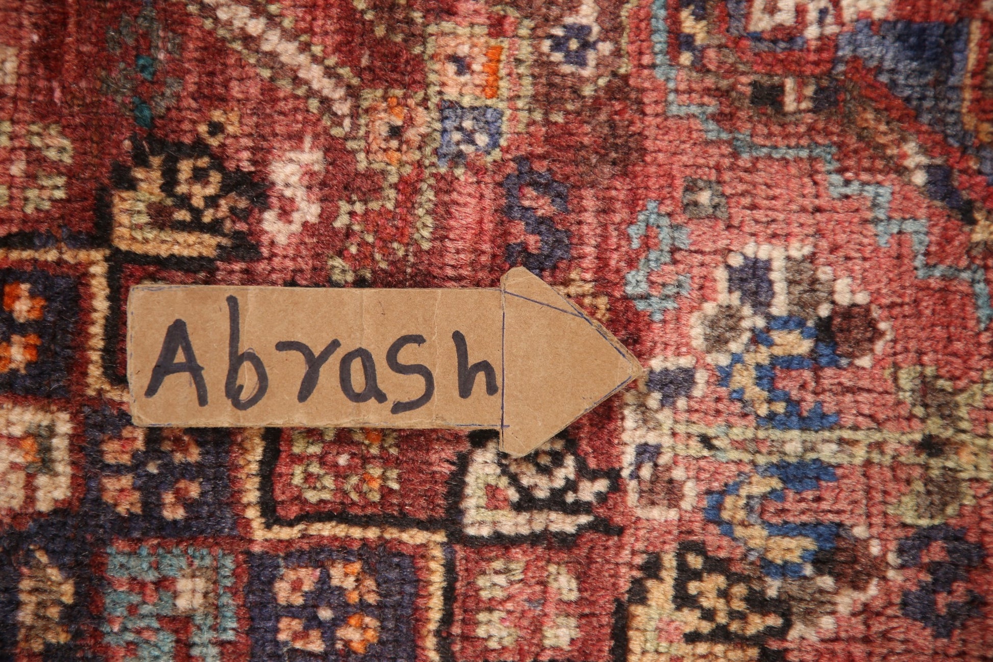 A Beautiful Genuine Persia ( Persia ) Abadeh rug is Hand Knotted by skillful weavers in Persia ( Persia ) with 100% Wool Material. This rug is in Very Good (Low Pile-Abrash) condition. dimensions are 7' 1'' X 3' 10'' in foot and 216 X 117 in centimeter. the primary color is Red.
