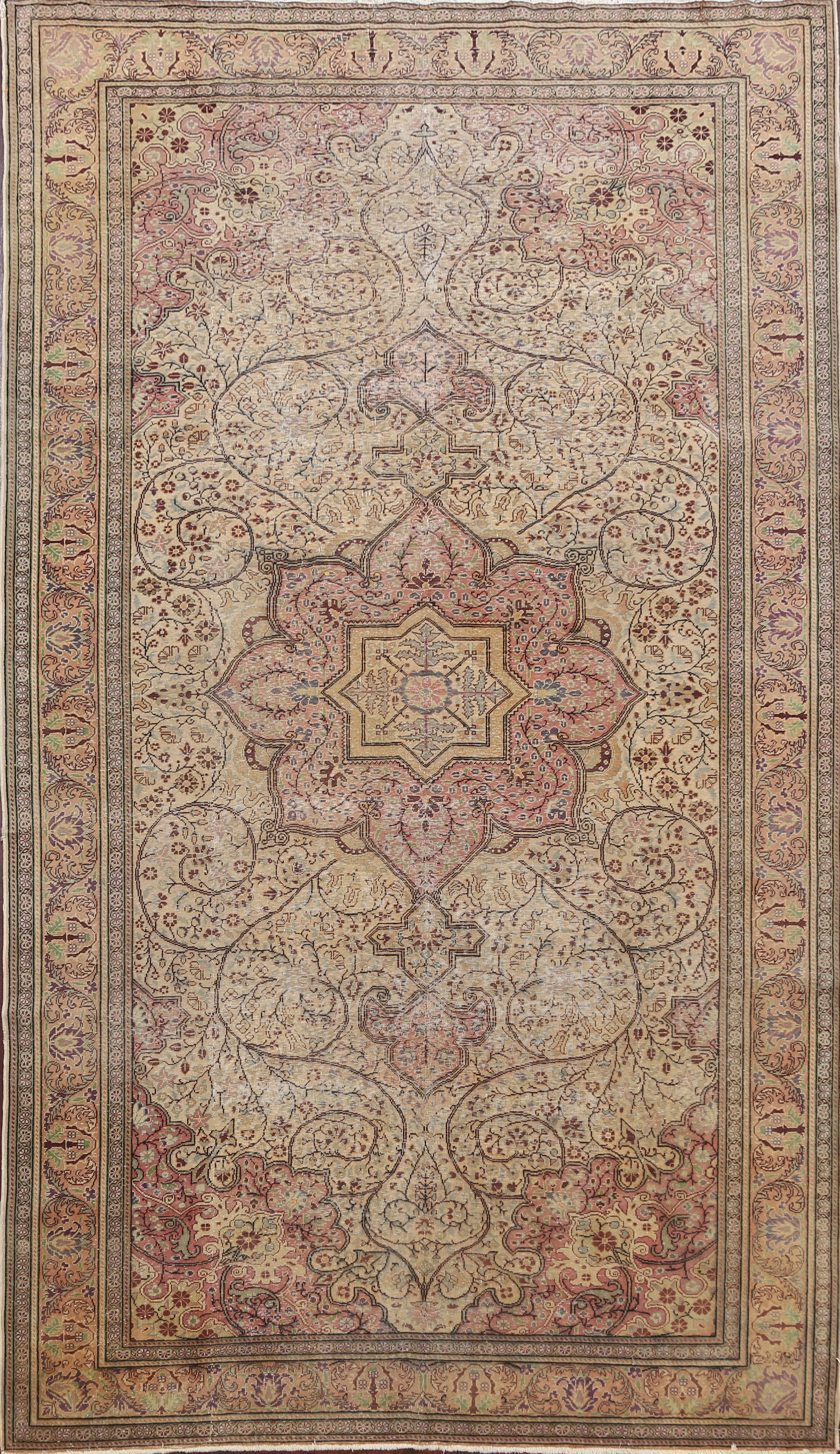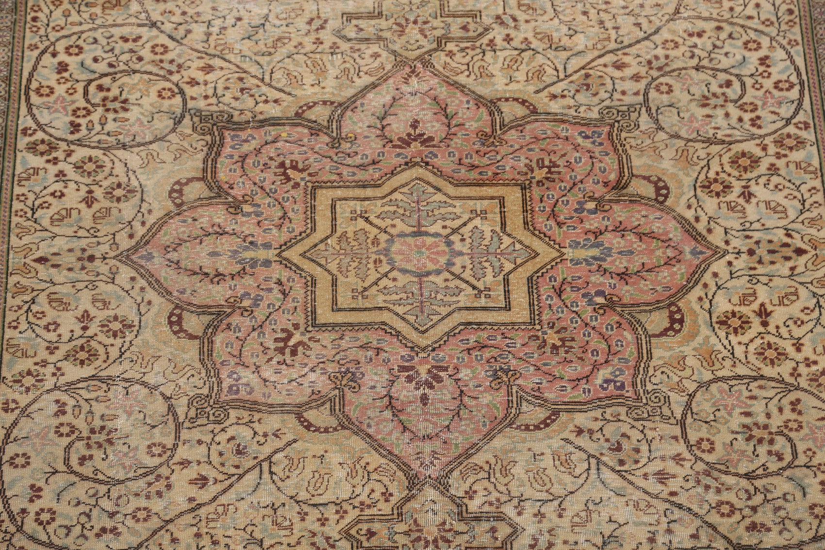A Beautiful Genuine Turkey Anatolian rug is Hand Knotted by skillful weavers in Turkey with 100% Wool Material. This rug is in Very Good (Evenly Low Pile) condition. dimensions are 10' 0'' X 6' 3'' in foot and 305 X 191 in centimeter. the primary color is Beige & Ivories.