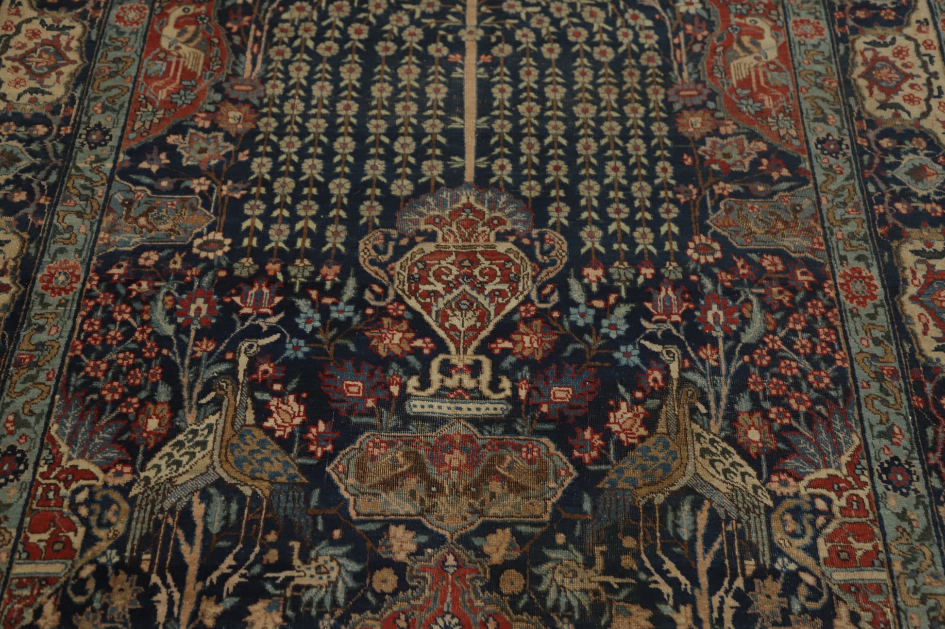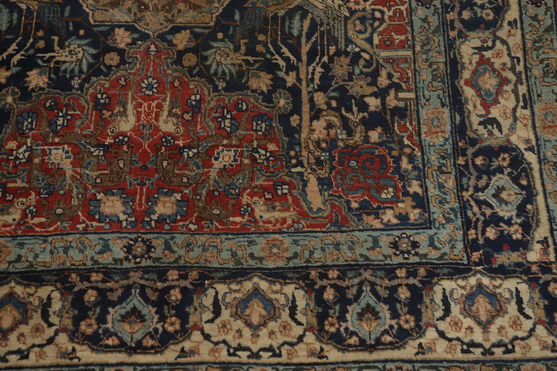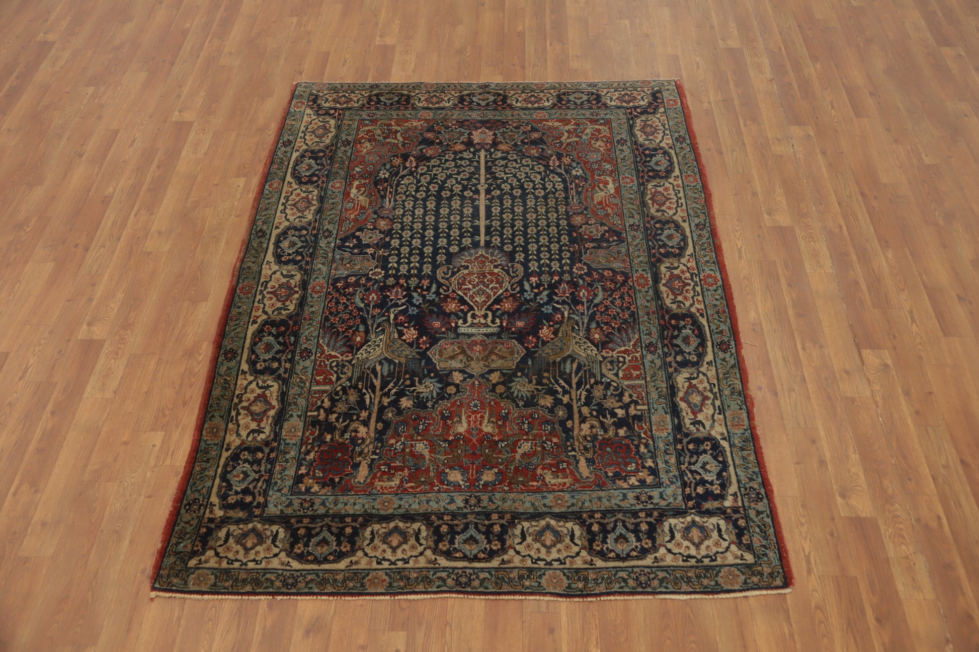 Antique Vegetable Dye Animals Tabriz Persian Rug 5x6