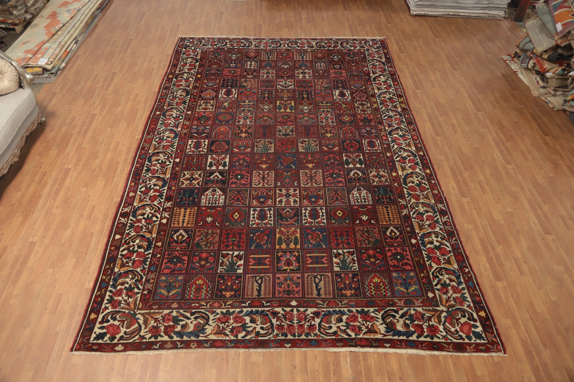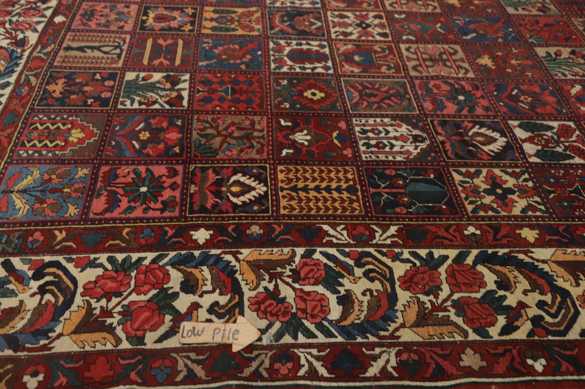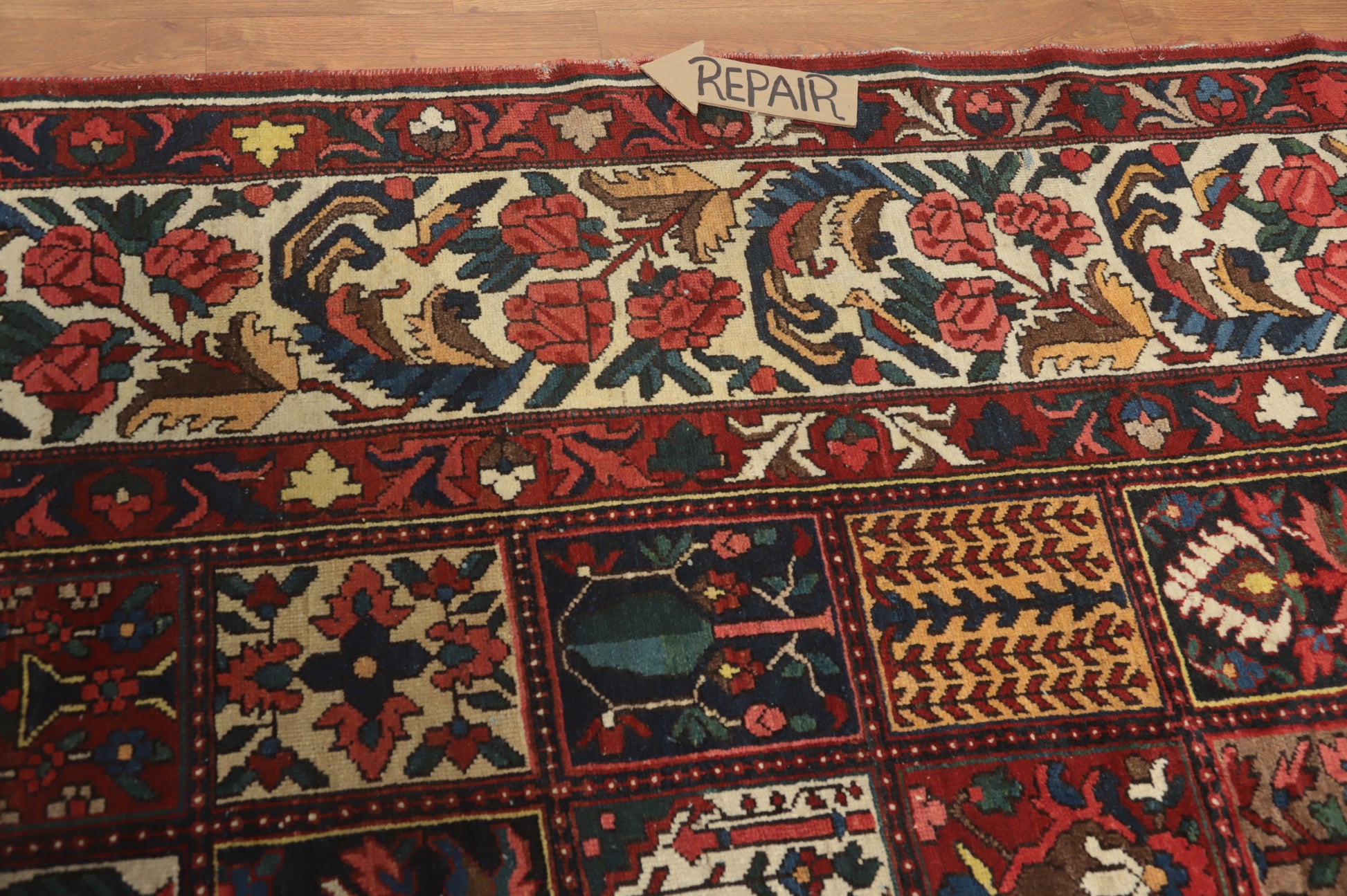 A Beautiful Genuine Persia ( Persia ) Bakhtiari rug is Hand Knotted by skillful weavers in Persia ( Persia ) with 100% Wool Material. This rug is in Very Good (Low Pile-Small Repair) condition. dimensions are 16' 6'' X 10' 9'' in foot and 503 X 328 in centimeter. the primary color is Red.