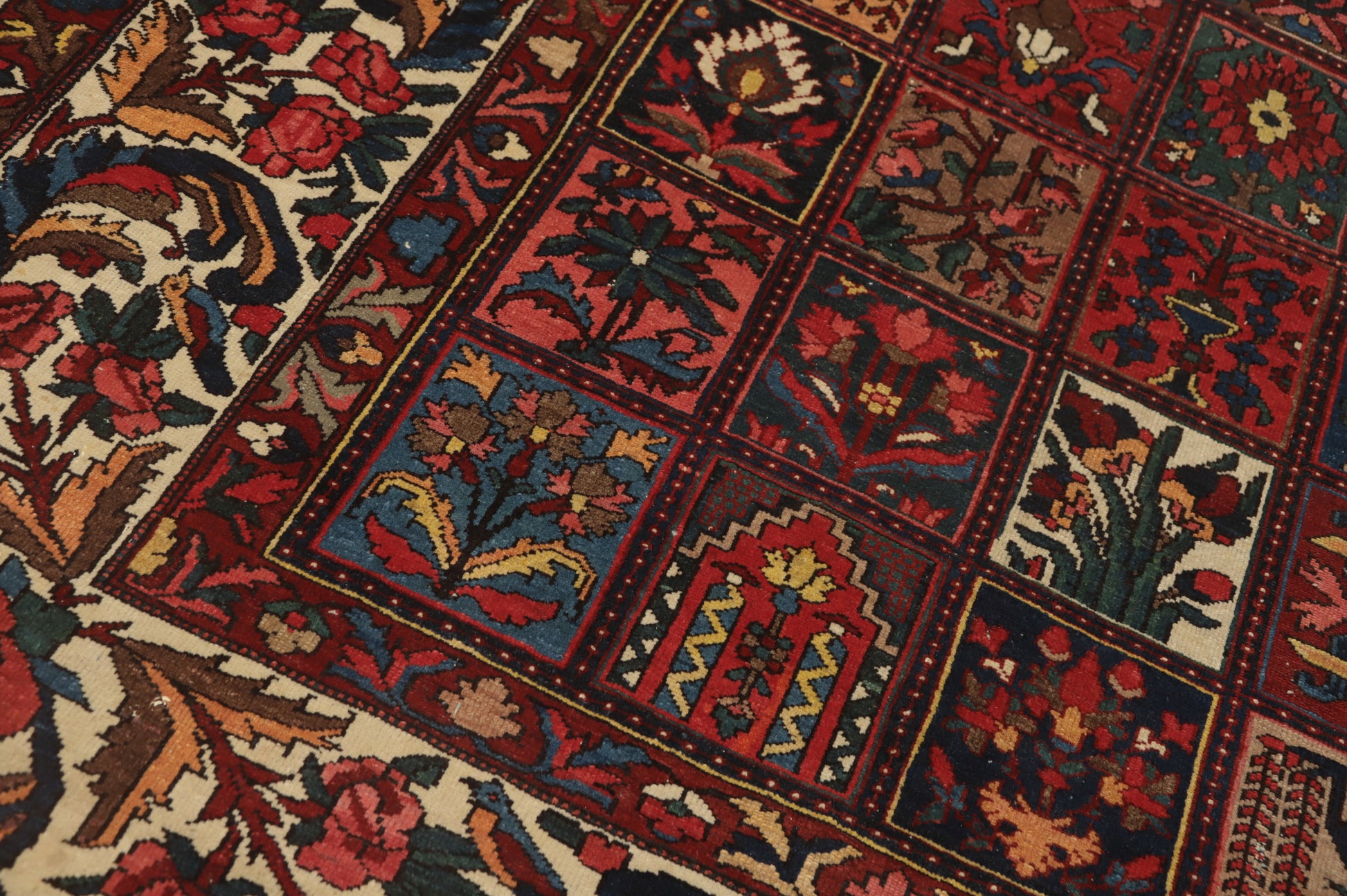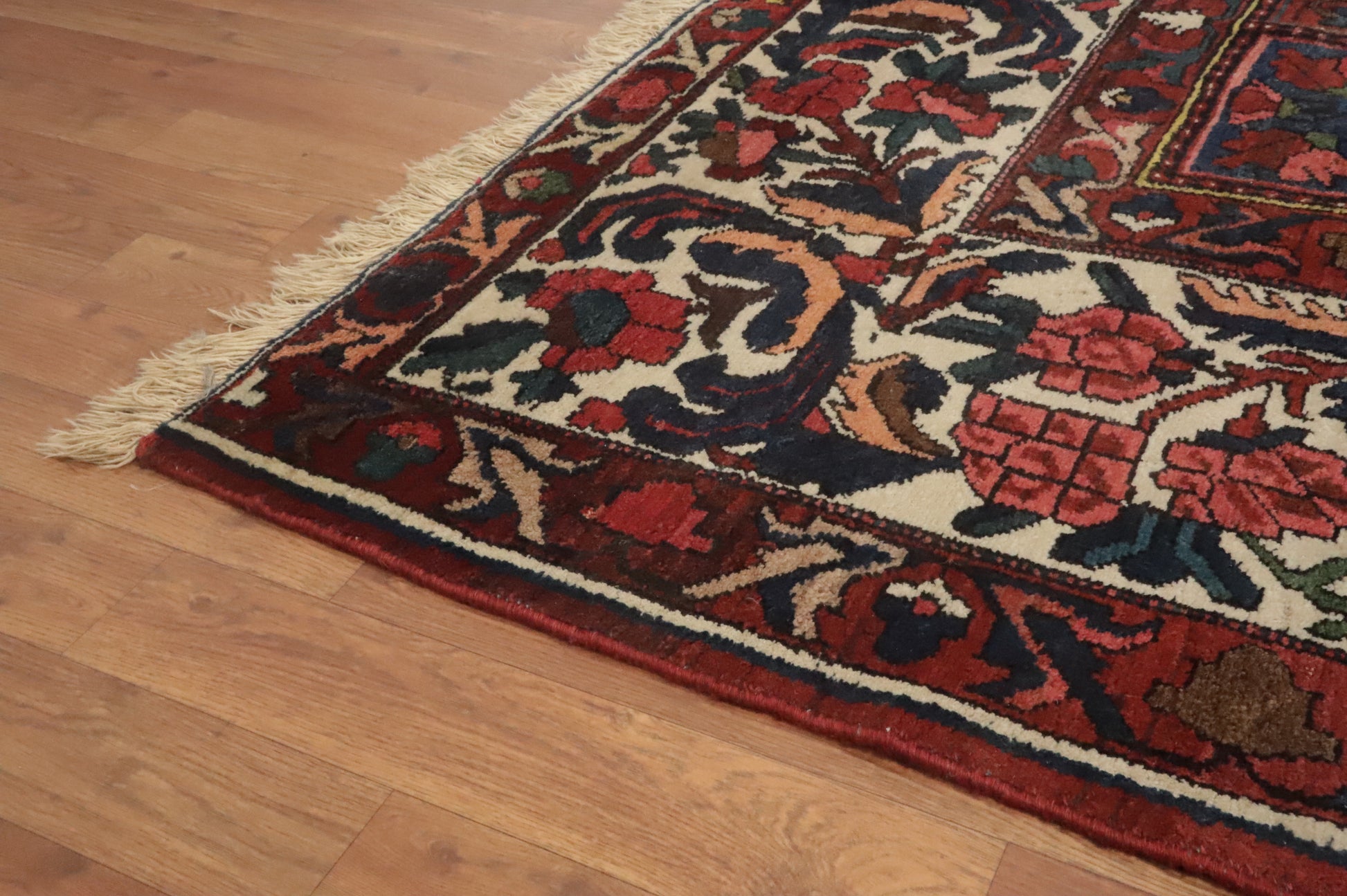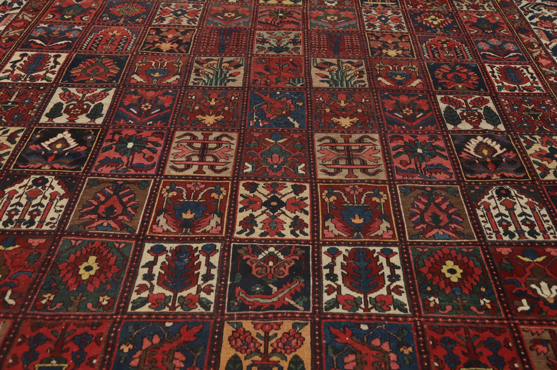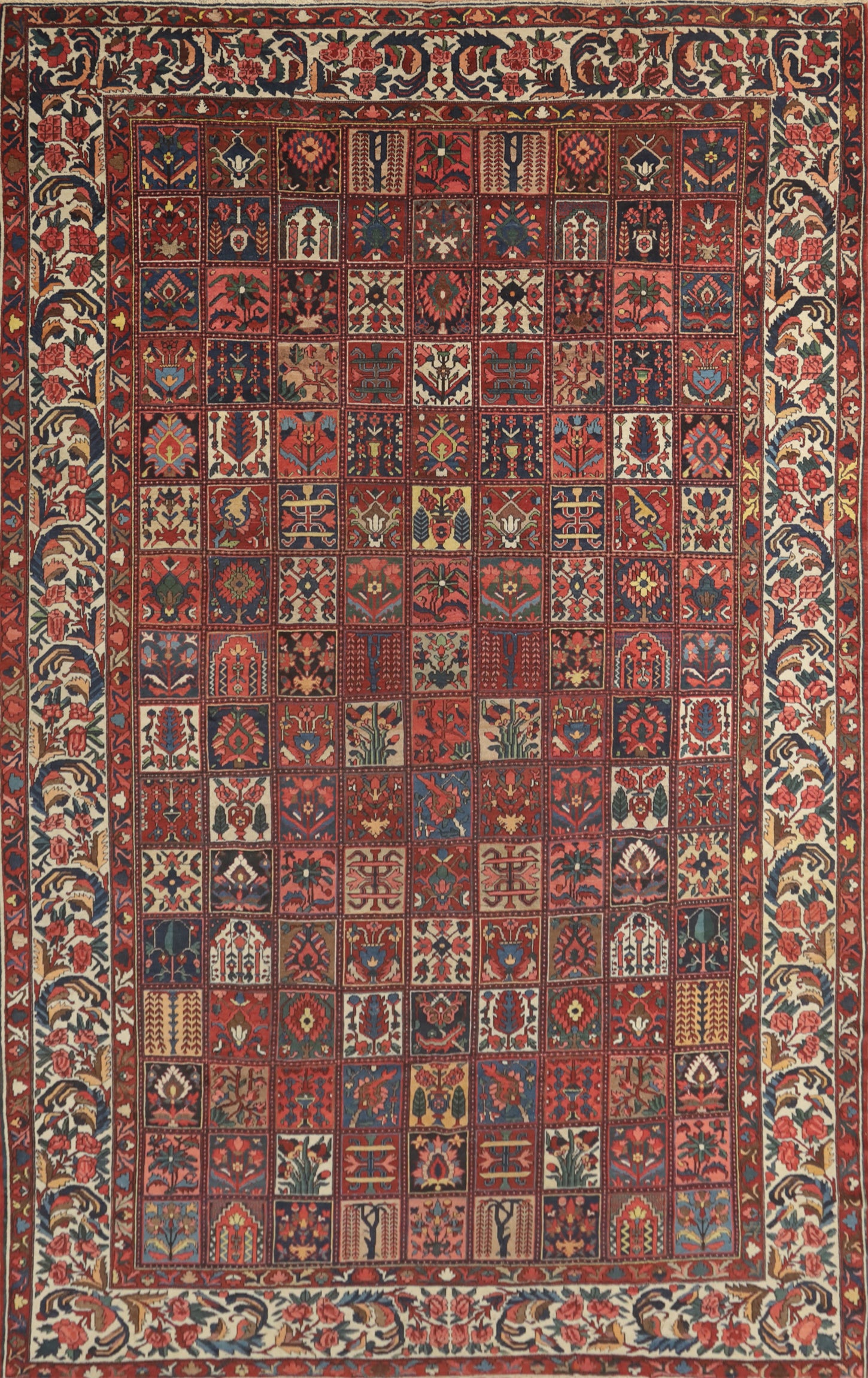 A Beautiful Genuine Persia ( Persia ) Bakhtiari rug is Hand Knotted by skillful weavers in Persia ( Persia ) with 100% Wool Material. This rug is in Very Good (Low Pile-Small Repair) condition. dimensions are 16' 6'' X 10' 9'' in foot and 503 X 328 in centimeter. the primary color is Red.