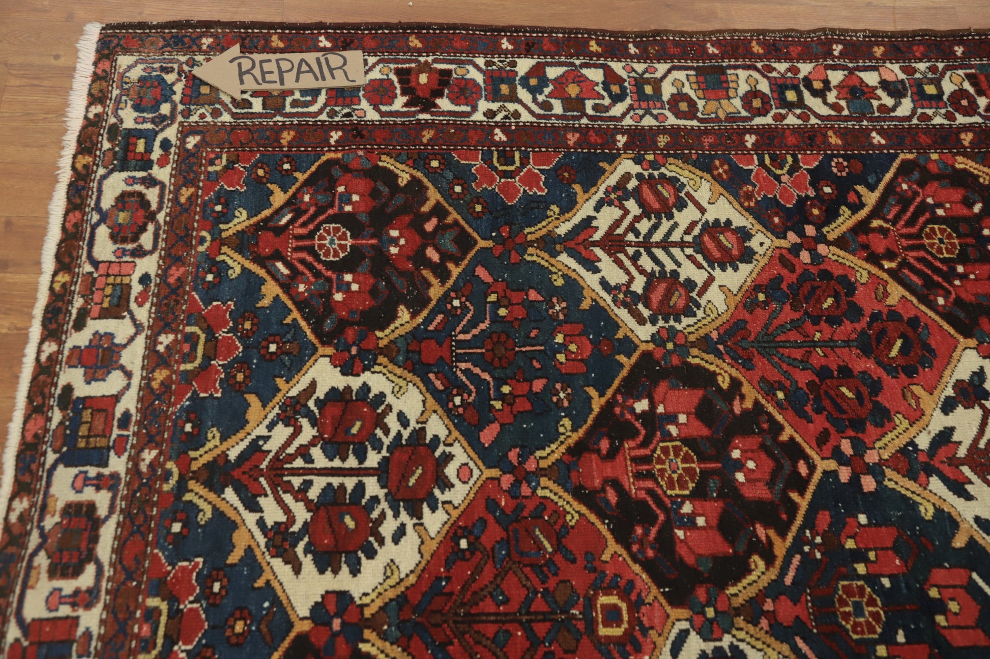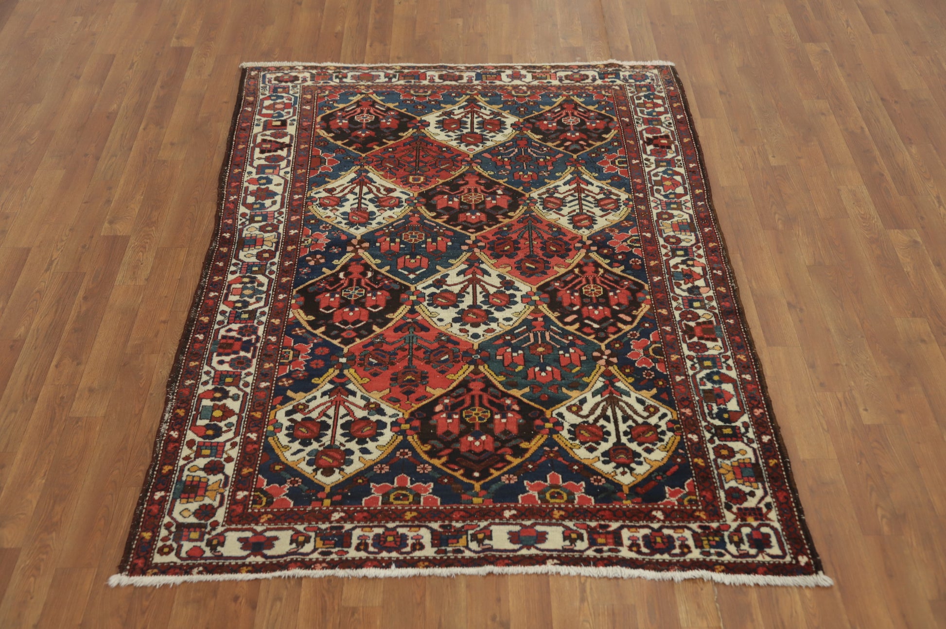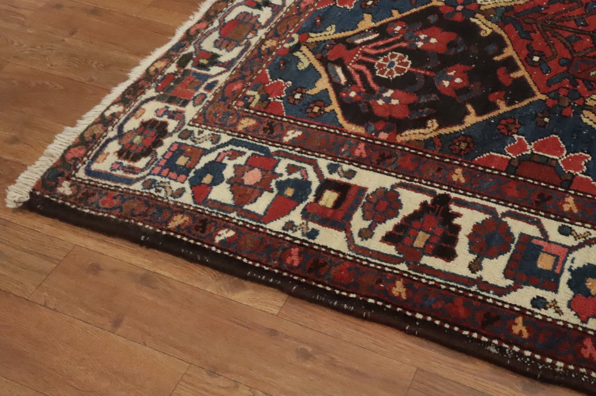A Beautiful Genuine Persia ( Persia ) Bakhtiari rug is Hand Knotted by skillful weavers in Persia ( Persia ) with 100% Wool Material. This rug is in Very Good ( Evenly Low Pile-Repair) condition. dimensions are 6' 5'' X 4' 8'' in foot and 196 X 142 in centimeter. the primary color is Multi-Colored.