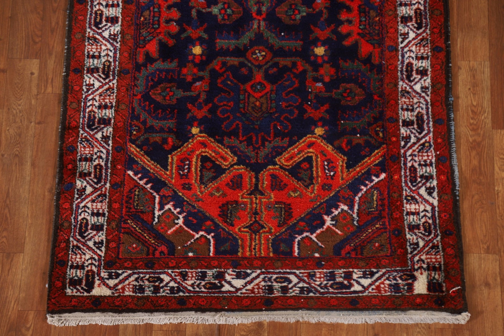 A Beautiful Genuine Persia ( Persia ) Bakhtiari rug is Hand Knotted by skillful weavers in Persia ( Persia ) with 100% Wool Material. This rug is in Very Good condition. dimensions are 16' 3'' X 3' 5'' in foot and 495 X 104 in centimeter. the primary color is Navy Blue & Blues.