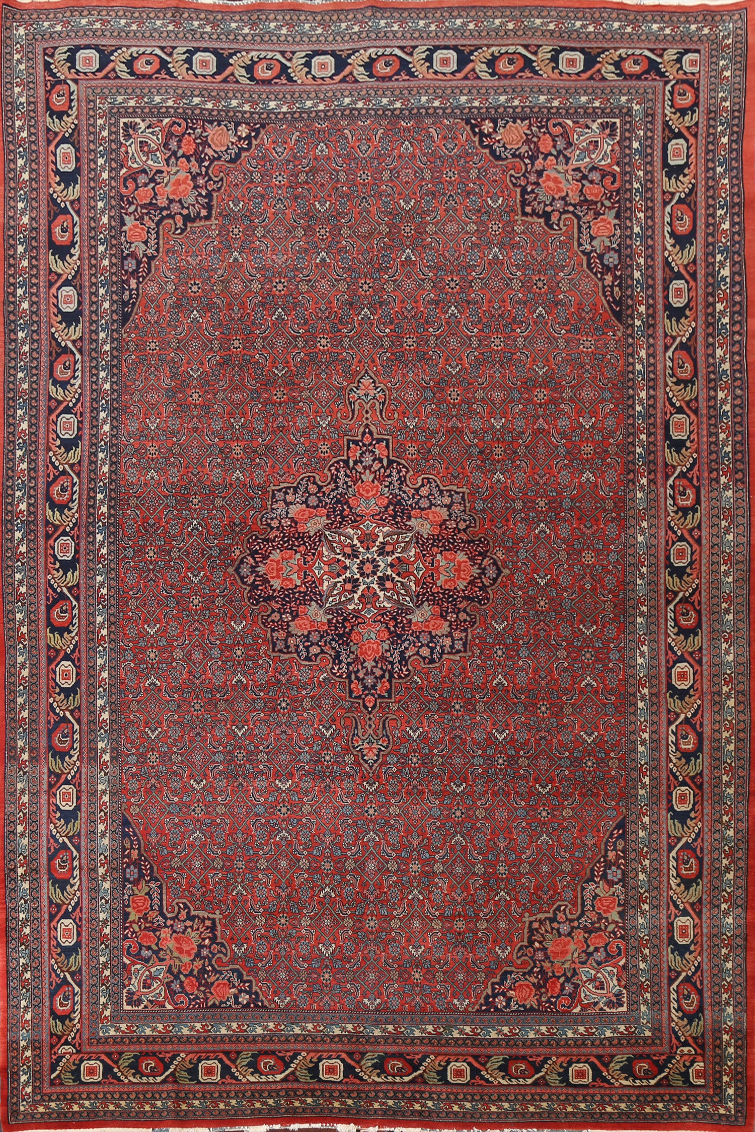 A Beautiful Genuine Persia ( Persia ) Bidjar rug is Hand Knotted by skillful weavers in Persia ( Persia ) with 100% Wool Material. This rug is in Very Good condition. dimensions are 12' 0'' X 8' 7'' in foot and 366 X 262 in centimeter. the primary color is Red.