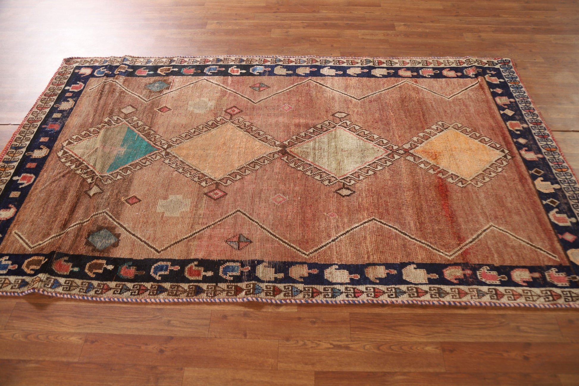 Antique Vegetable Dye Gabbeh Qashqai Persian Rug 4x7
