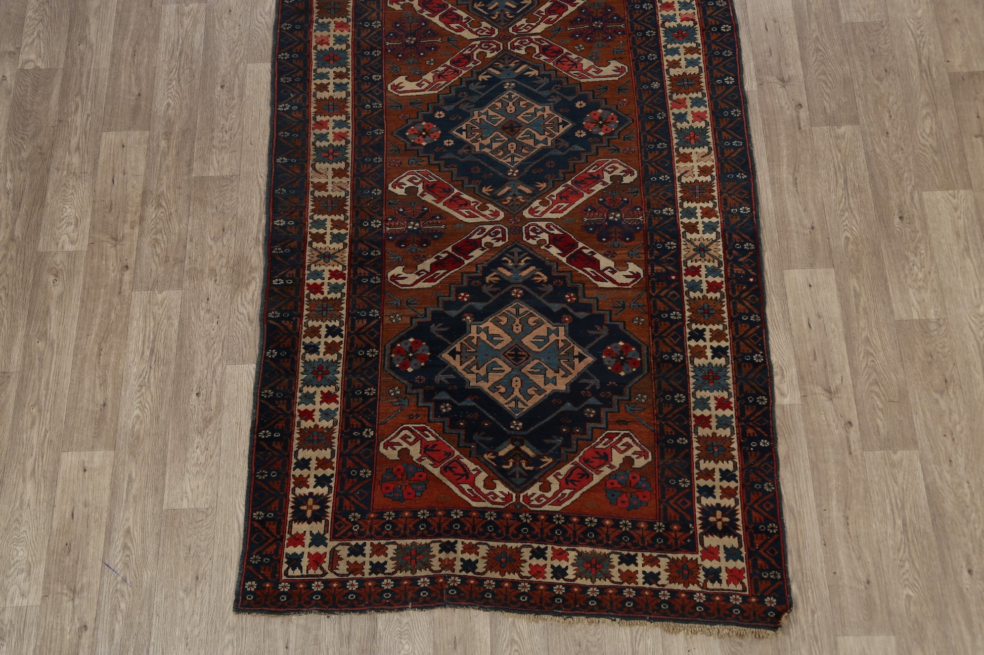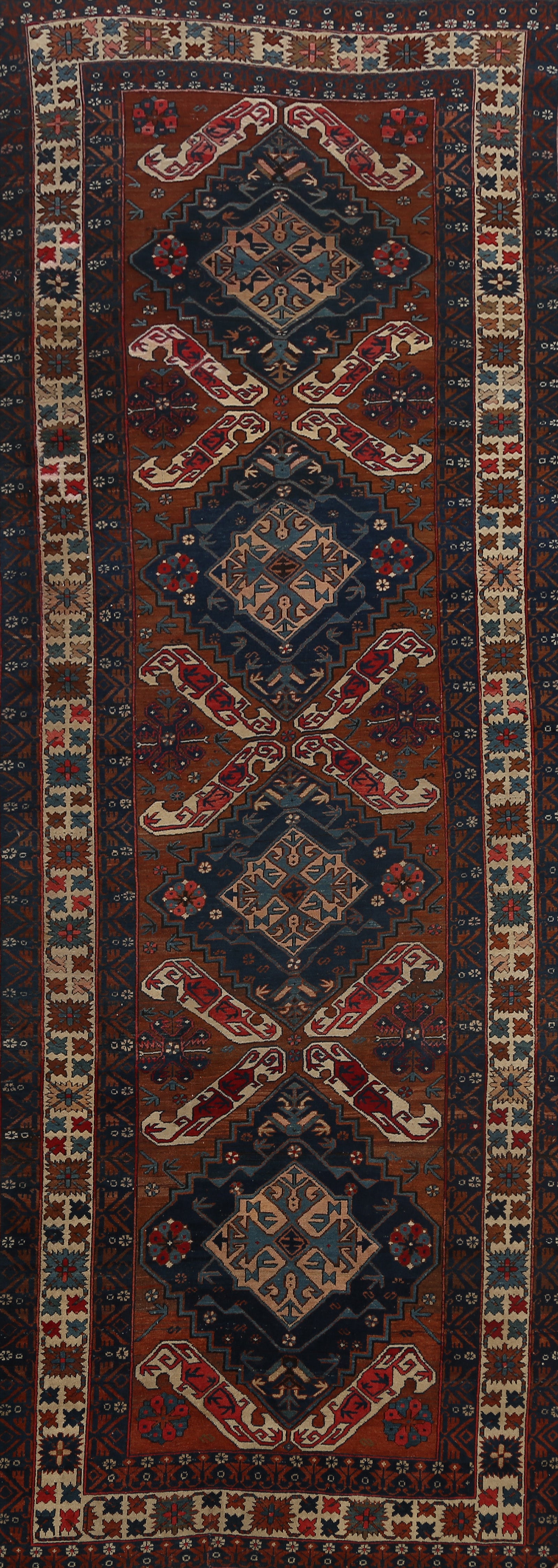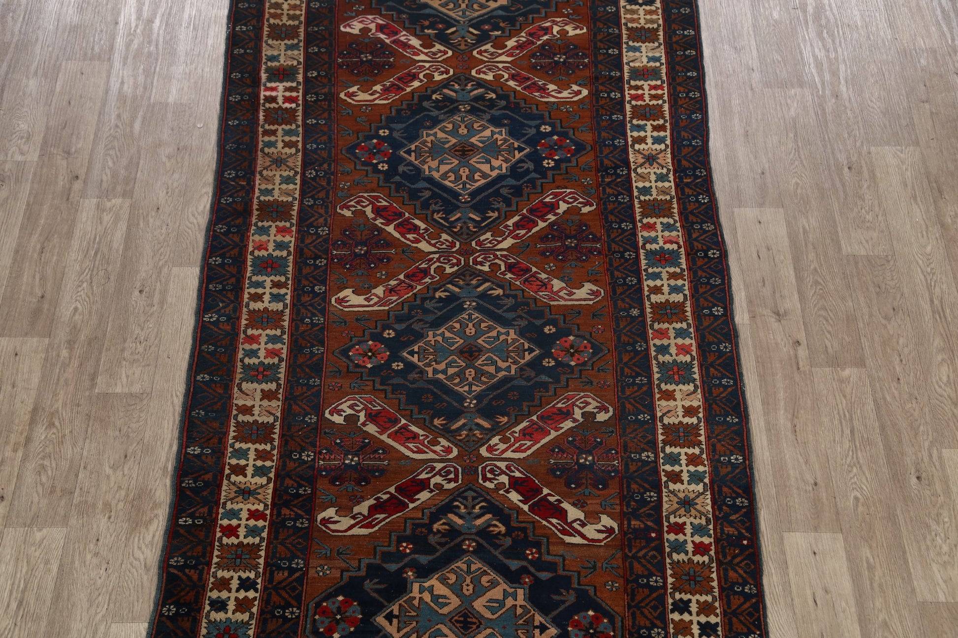 Antique Vegetable Dye Geometric Kazak Russian Oriental Runner Rug 5x11