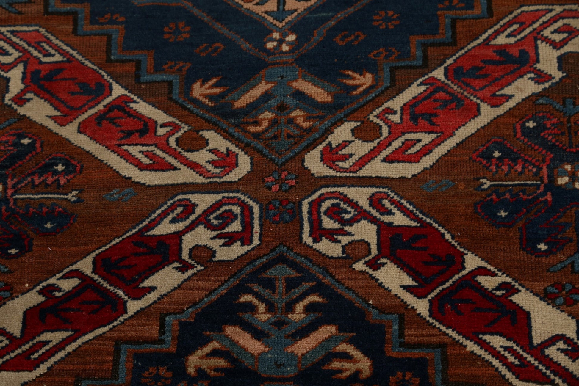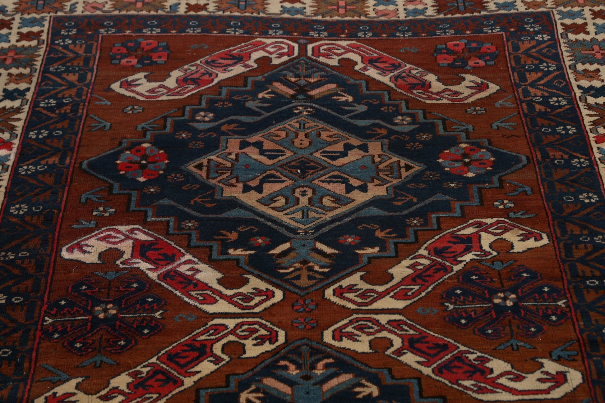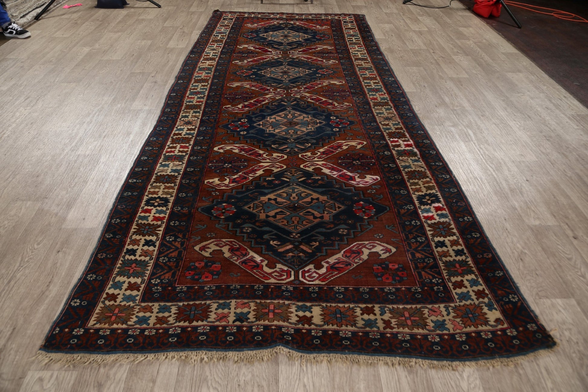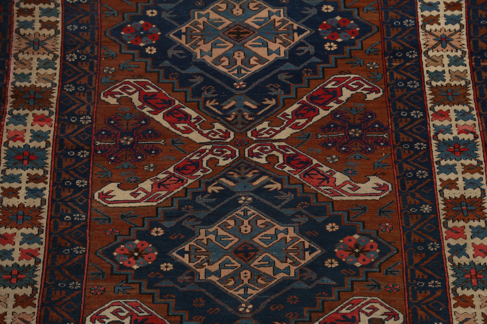 Antique Vegetable Dye Geometric Kazak Russian Oriental Runner Rug 5x11