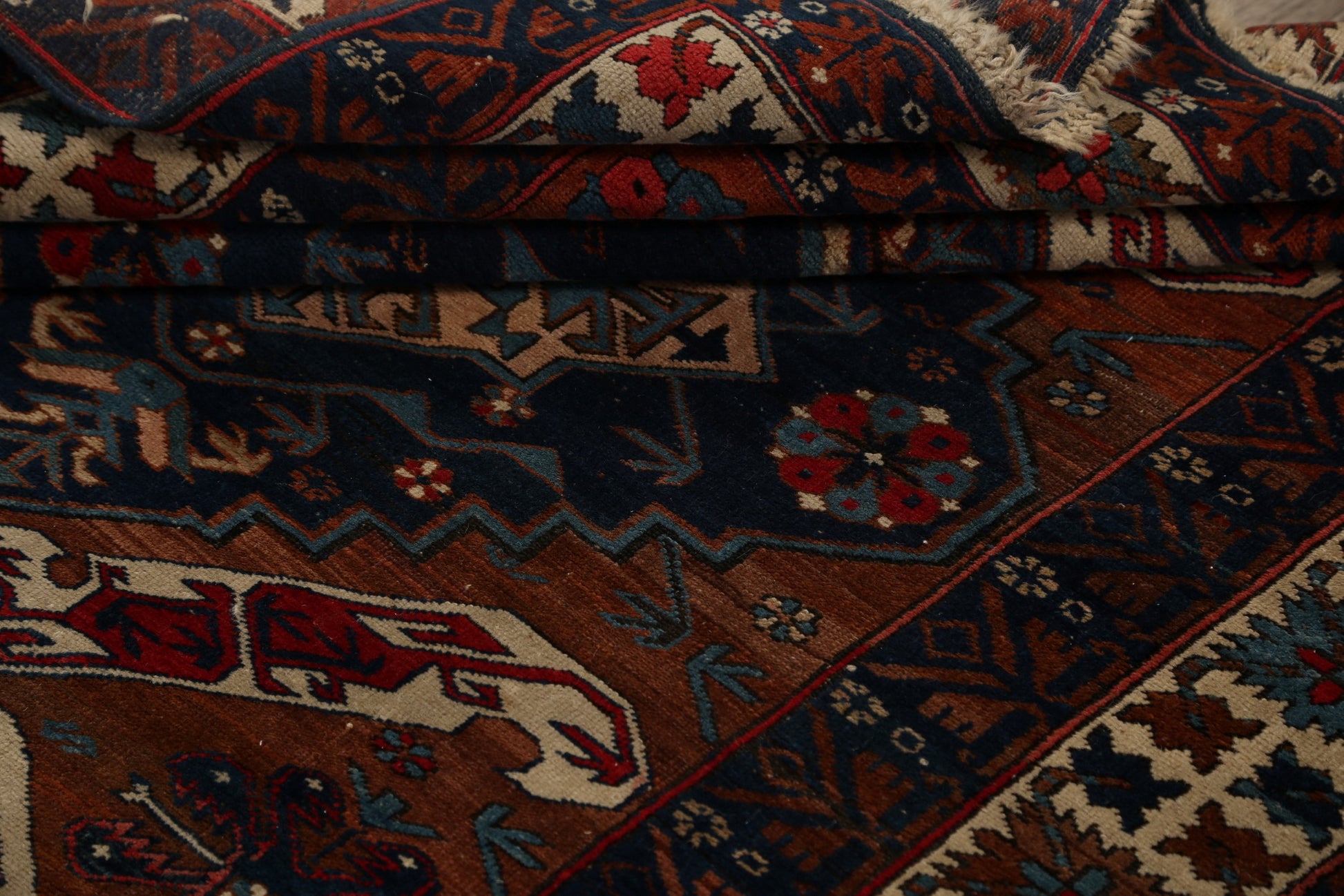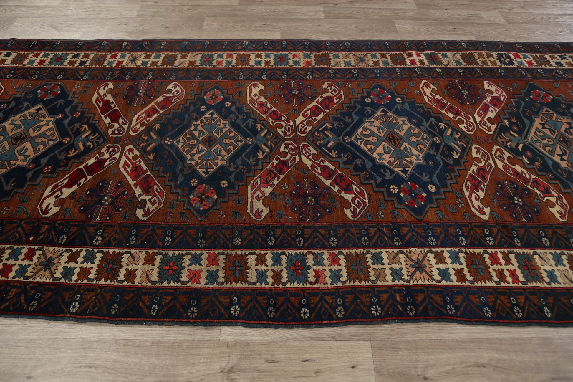 A Beautiful Genuine Russia Kazak rug is Hand Knotted by skillful weavers in Russia with 100% Wool Material. This rug is in Very Good condition. dimensions are 11' 4'' X 4' 10'' in foot and 345 X 147 in centimeter. the primary color is Oranges & Rust.