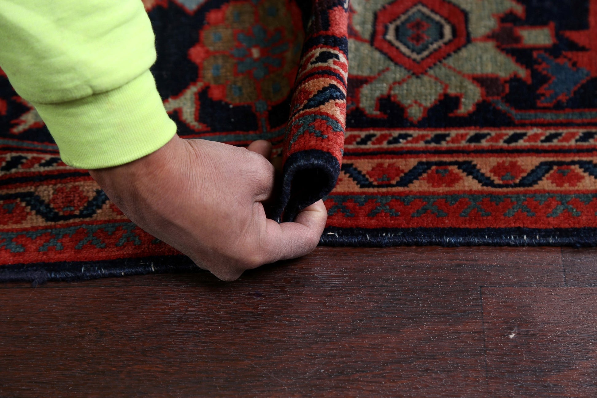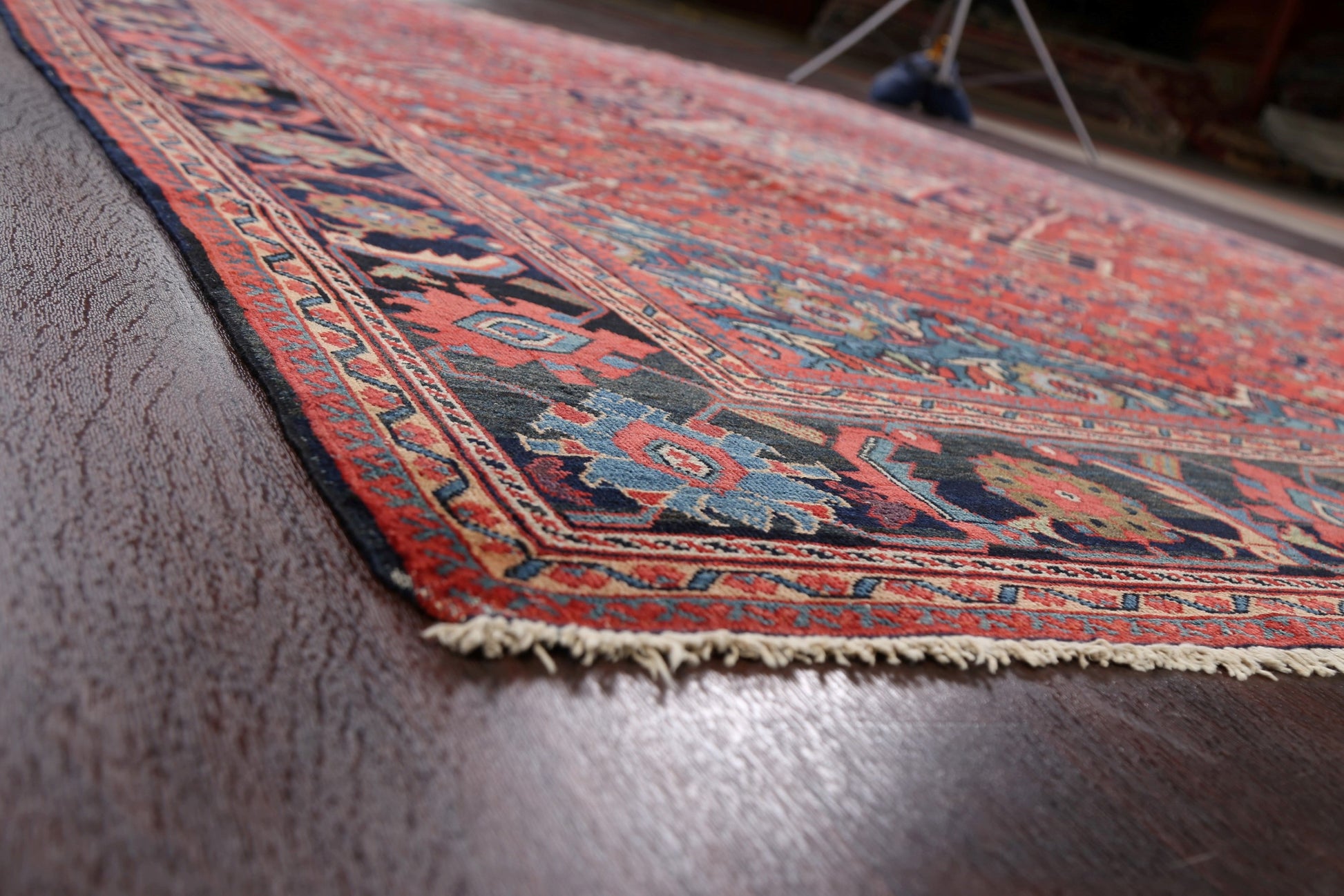 A Beautiful Genuine Persia ( Persia ) Mahal rug is Hand Knotted by skillful weavers in Persia ( Persia ) with 100% Wool Material. This rug is in Very Good ( Low Pile ) condition. dimensions are 12' 4'' X 8' 11'' in foot and 376 X 272 in centimeter. the primary color is Red.