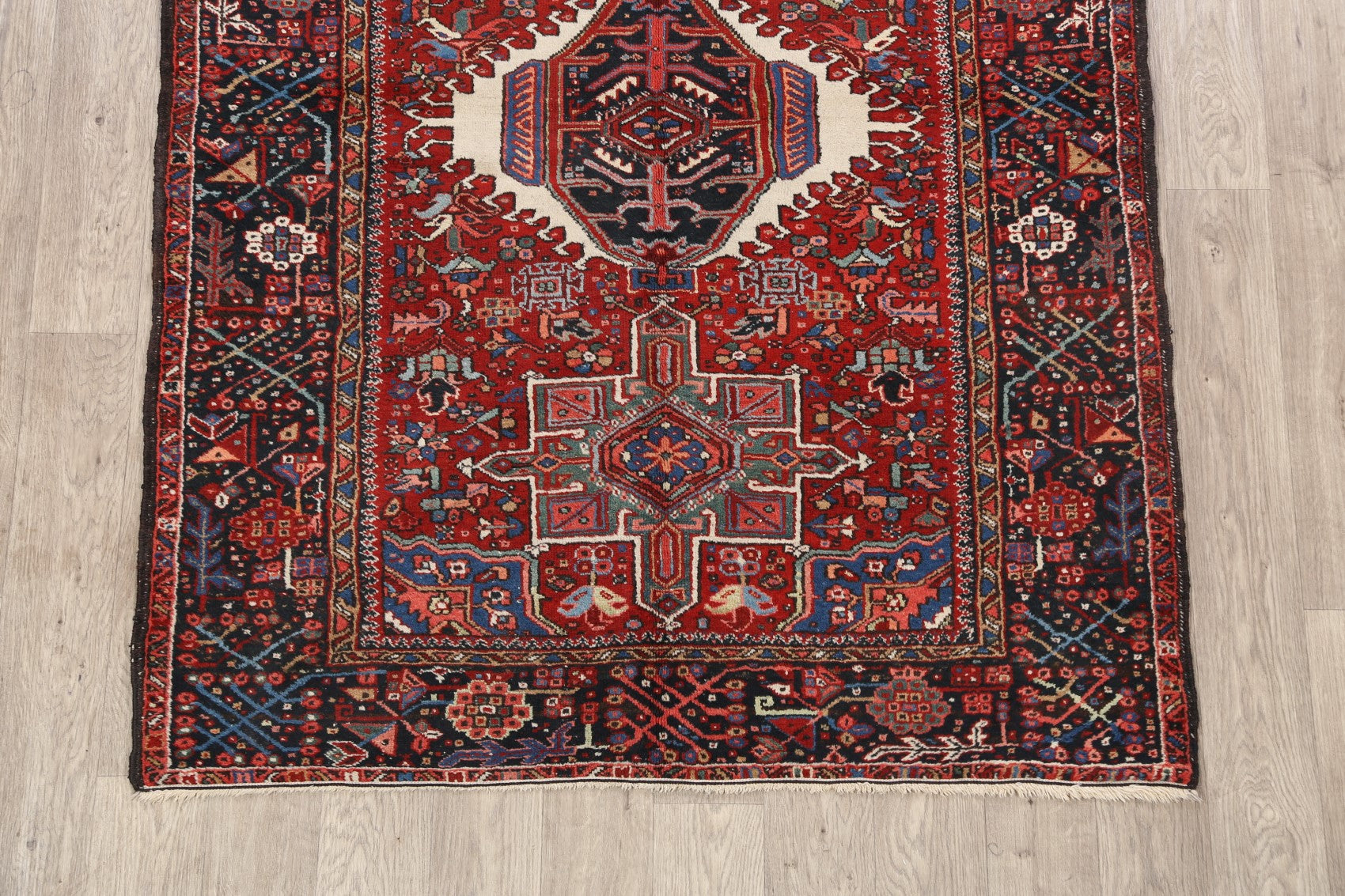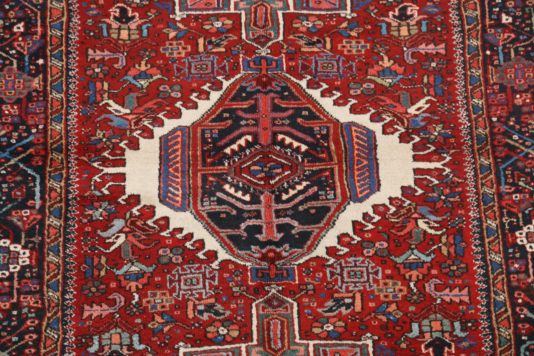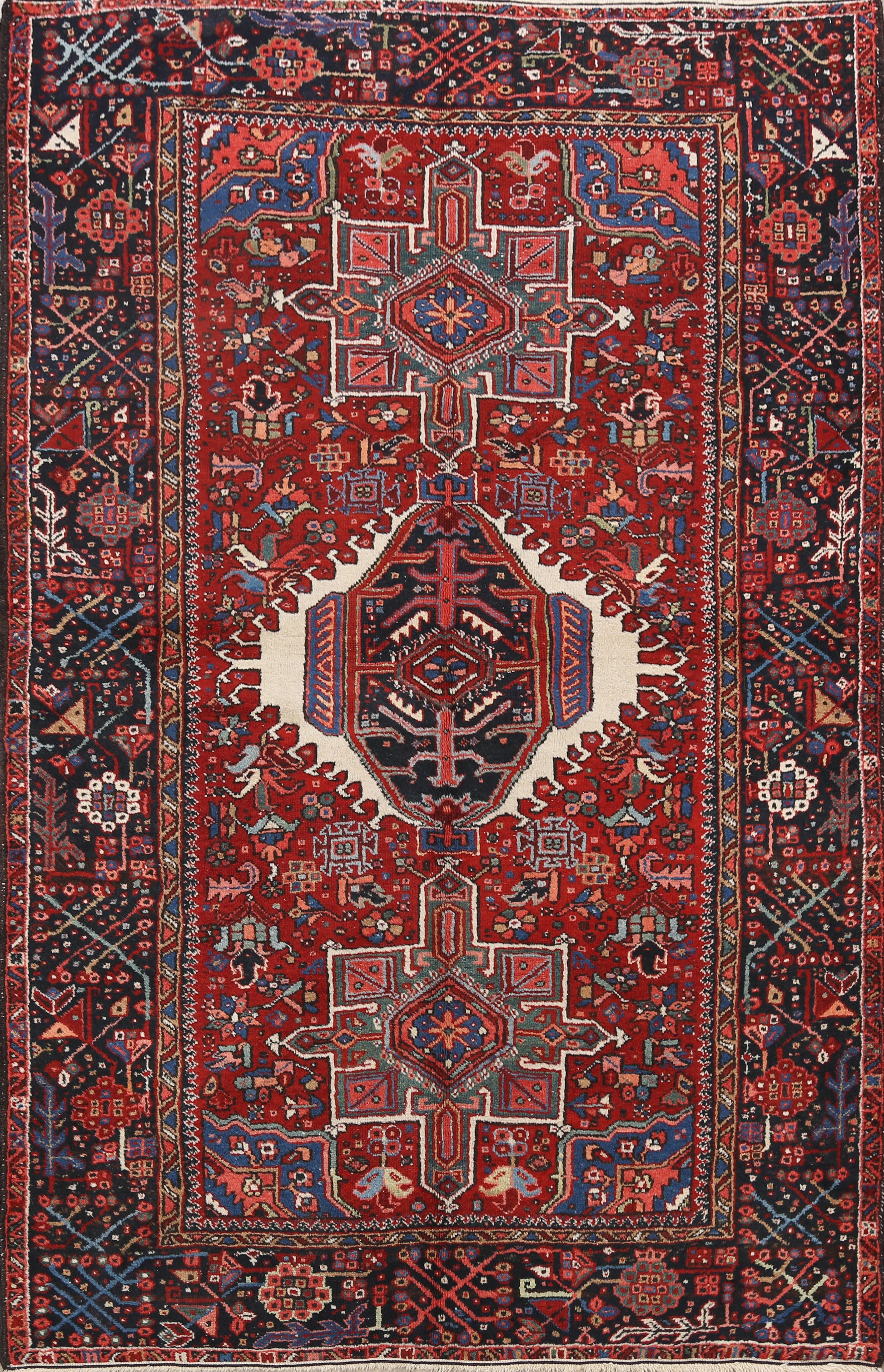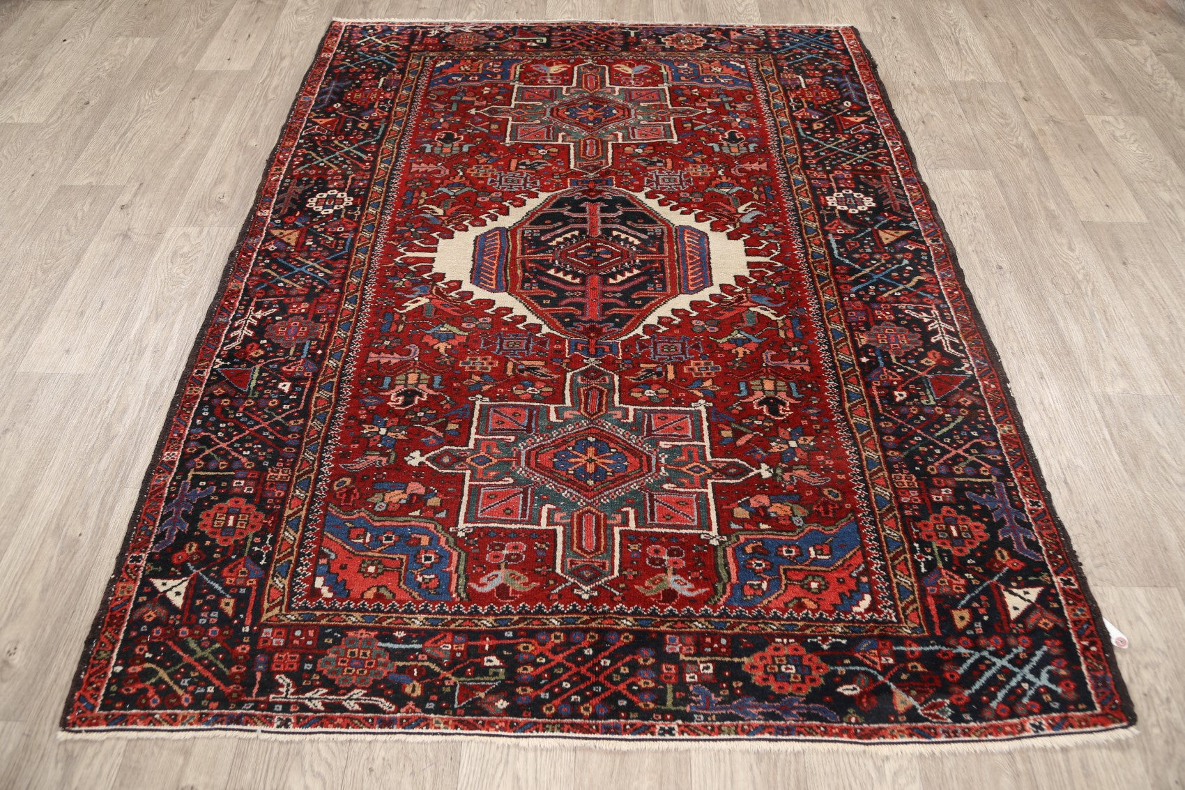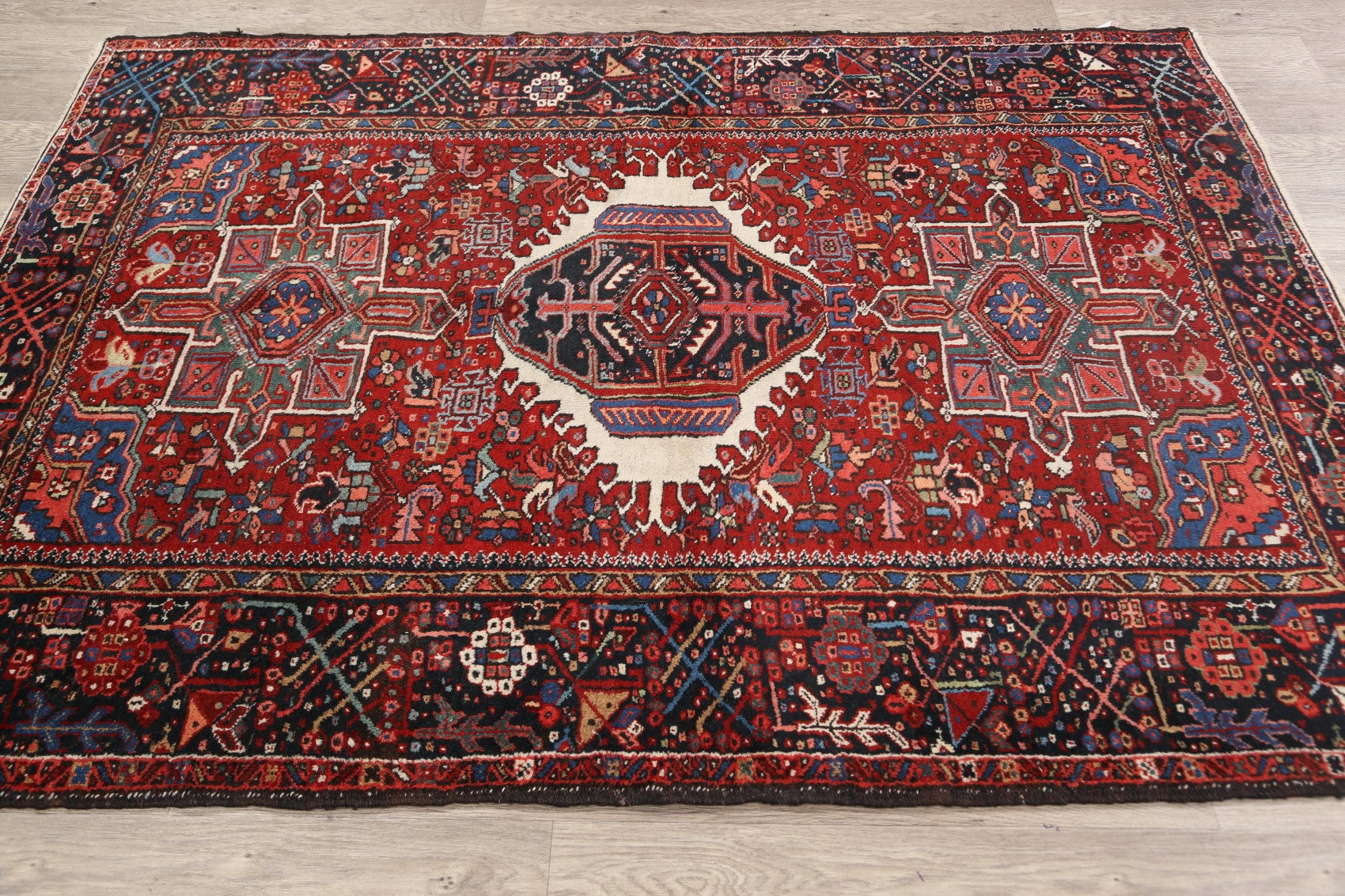 A Beautiful Genuine Persia ( Persia ) Gharajeh rug is Hand Knotted by skillful weavers in Persia ( Persia ) with 100% Wool Material. This rug is in Very Good condition. dimensions are 6' 1'' X 4' 7'' in foot and 185 X 140 in centimeter. the primary color is Red.